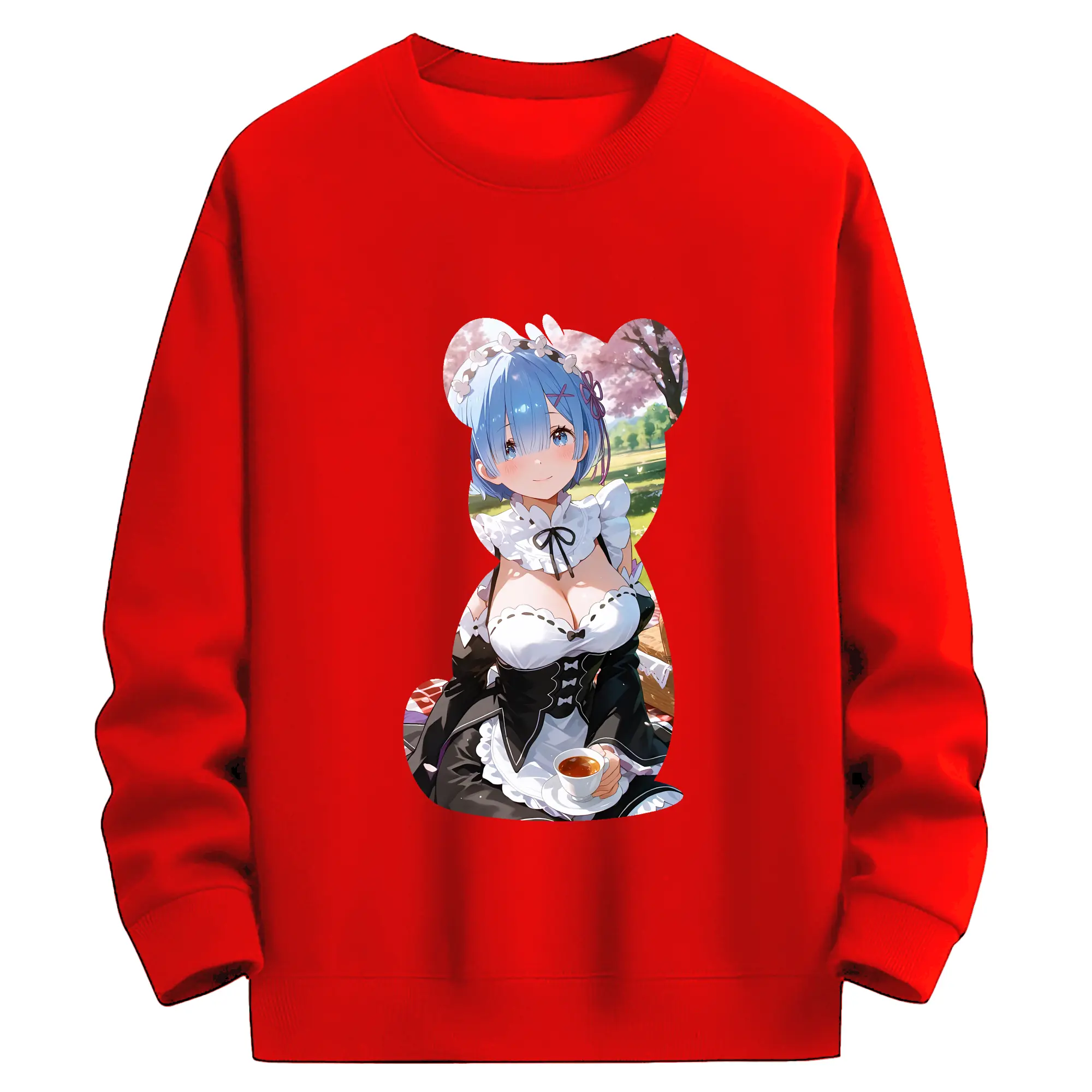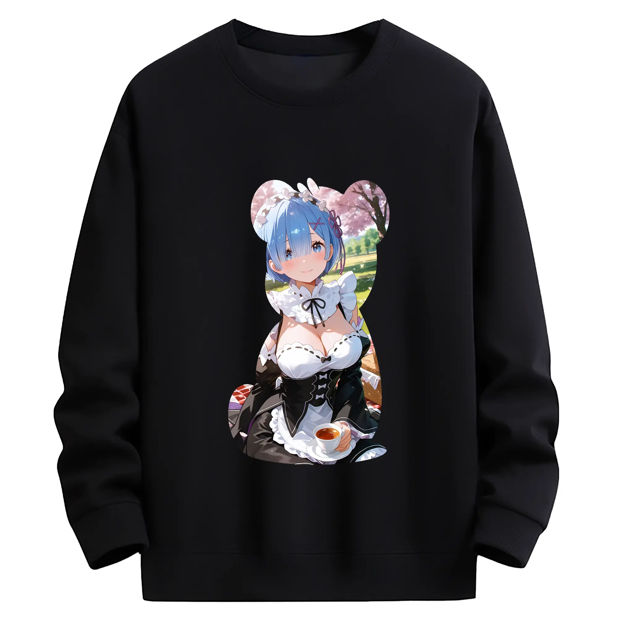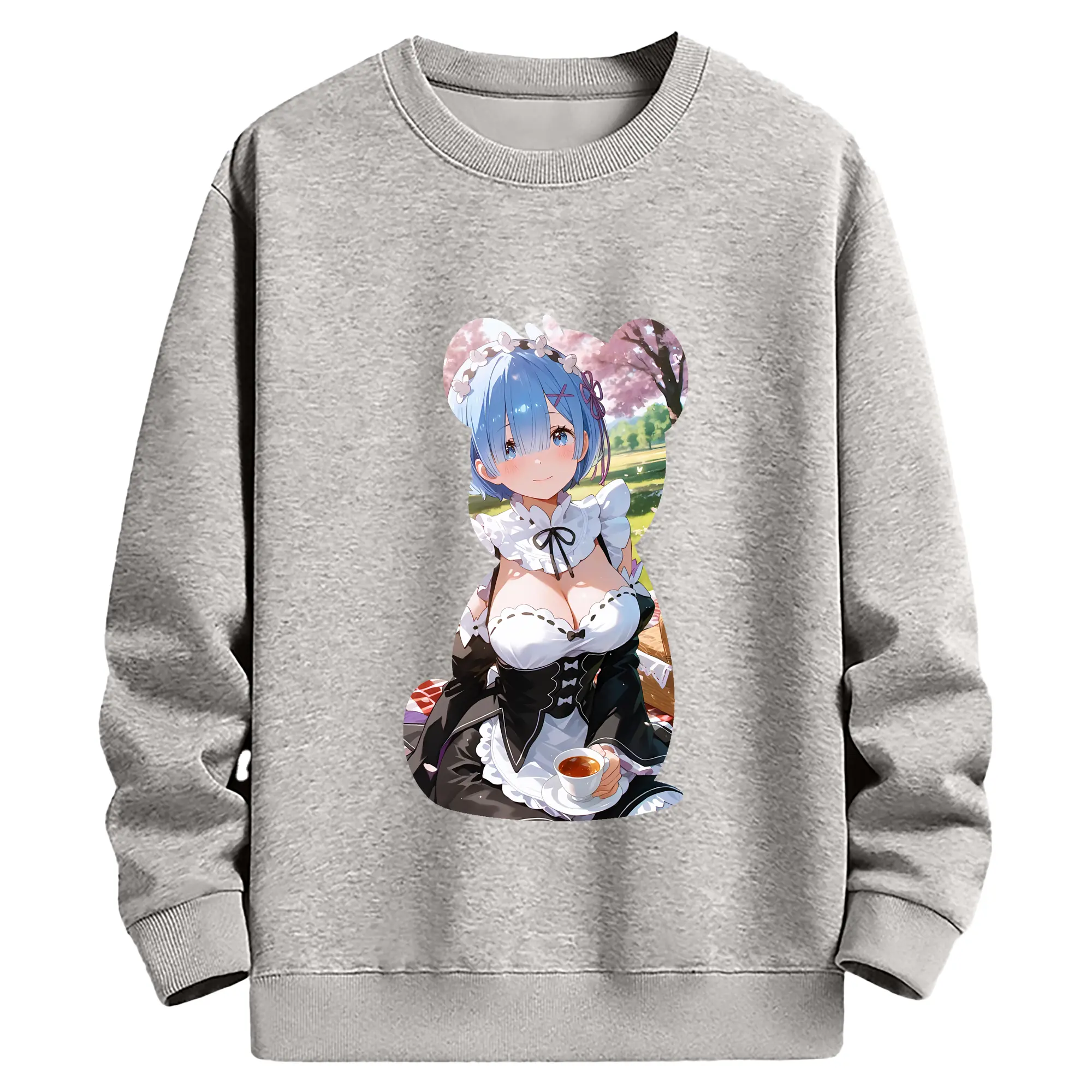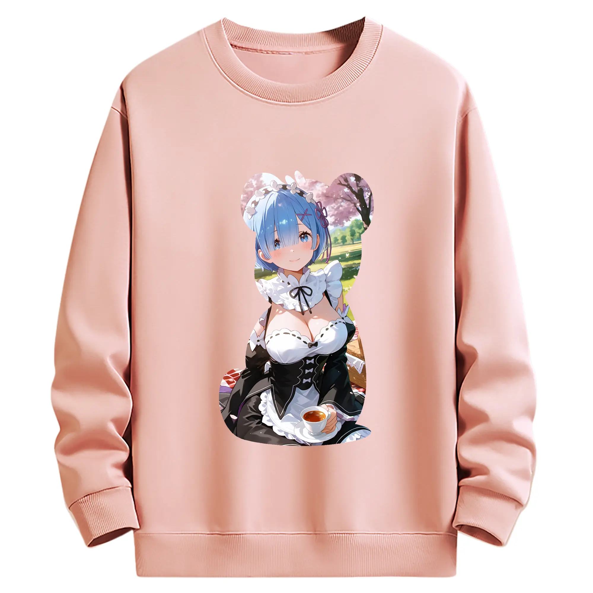 リゼロ グッズ レム - 薄手 クルーネック スウェット 裏毛260g · ポリエステル 春秋向け カジュアル 男女兼用 · トレーナー デイリー スポーツ 散歩に最適