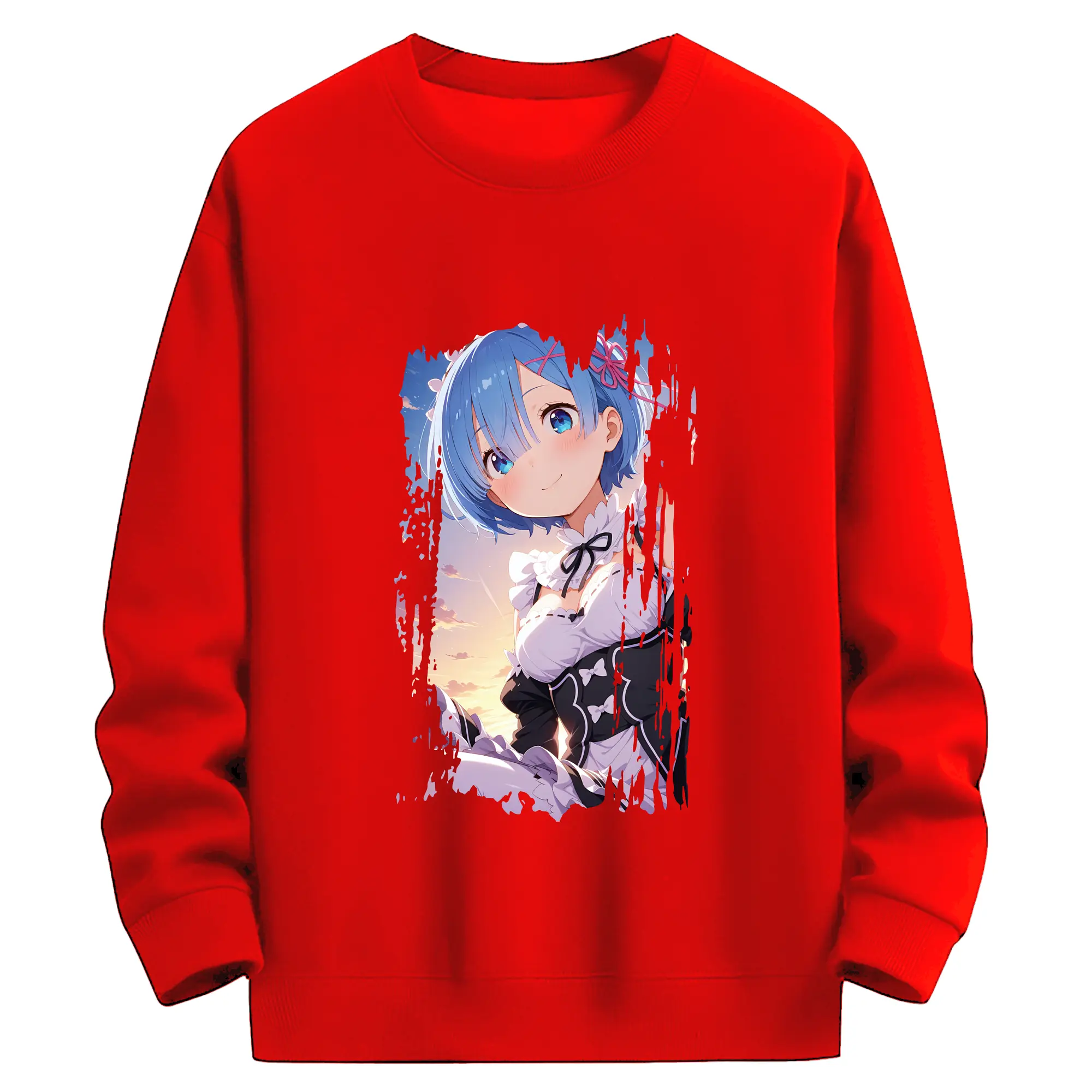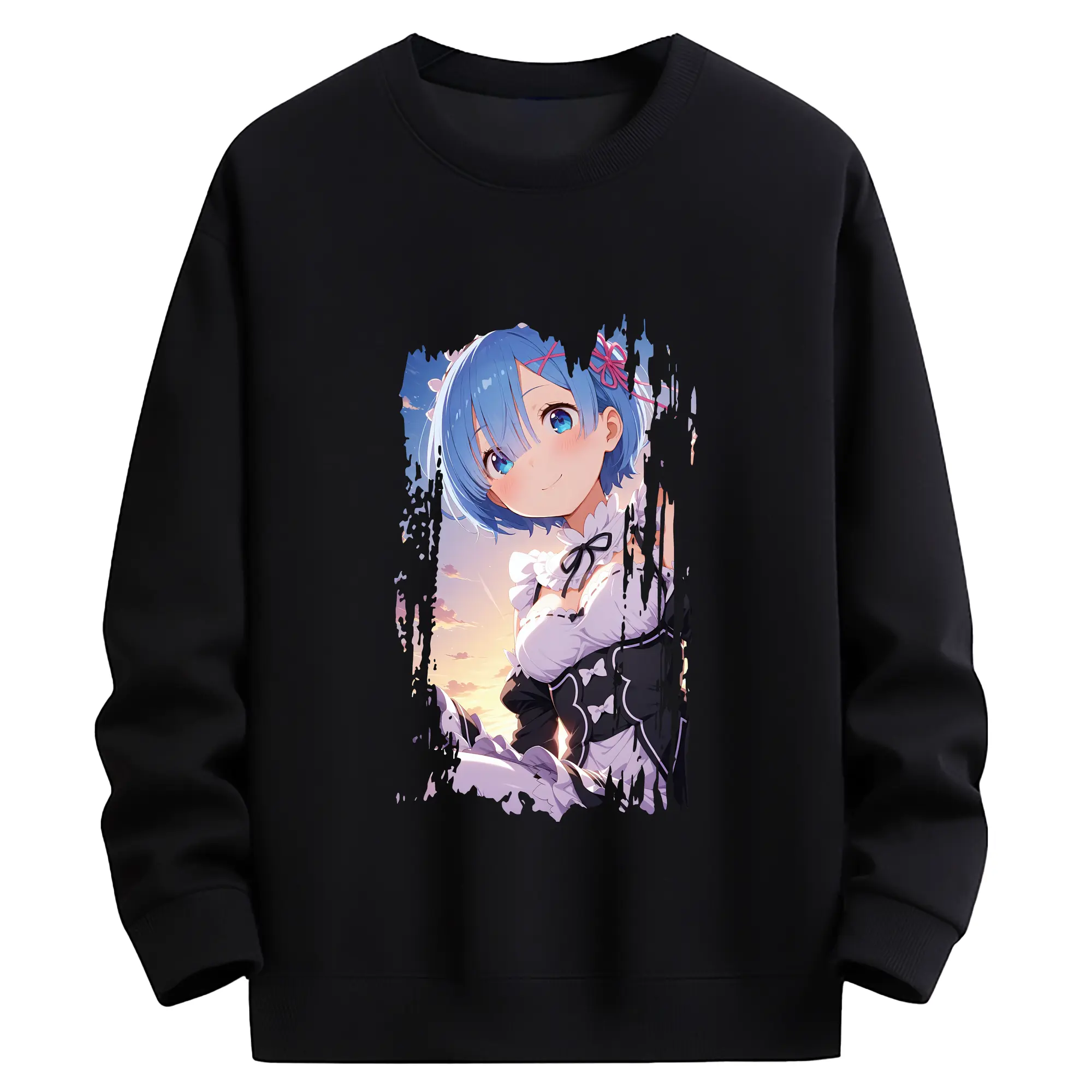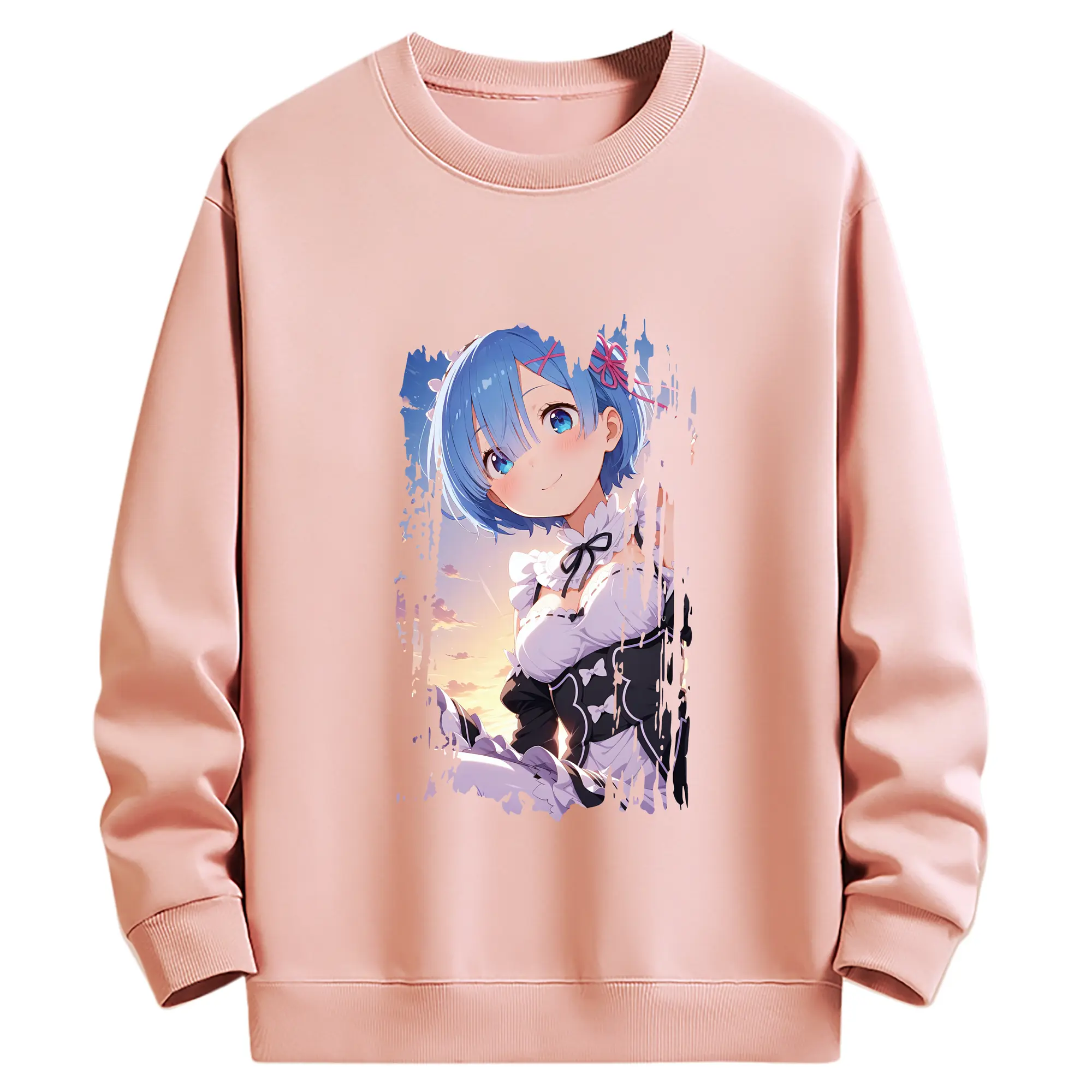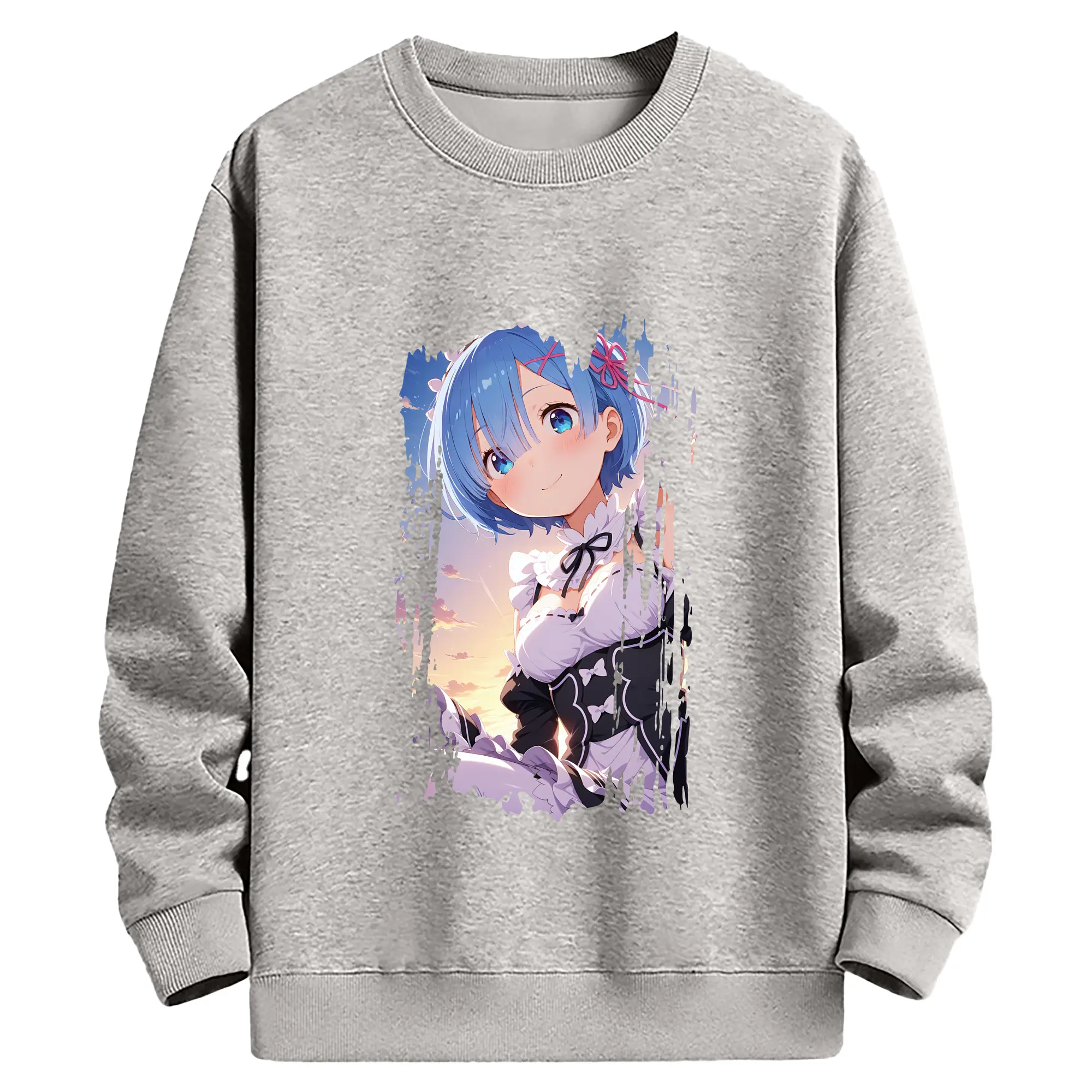 リゼロ グッズ レム - 薄手 クルーネック スウェット 裏毛260g · ポリエステル 春秋向け カジュアル 男女兼用 · トレーナー デイリー スポーツ 散歩に最適