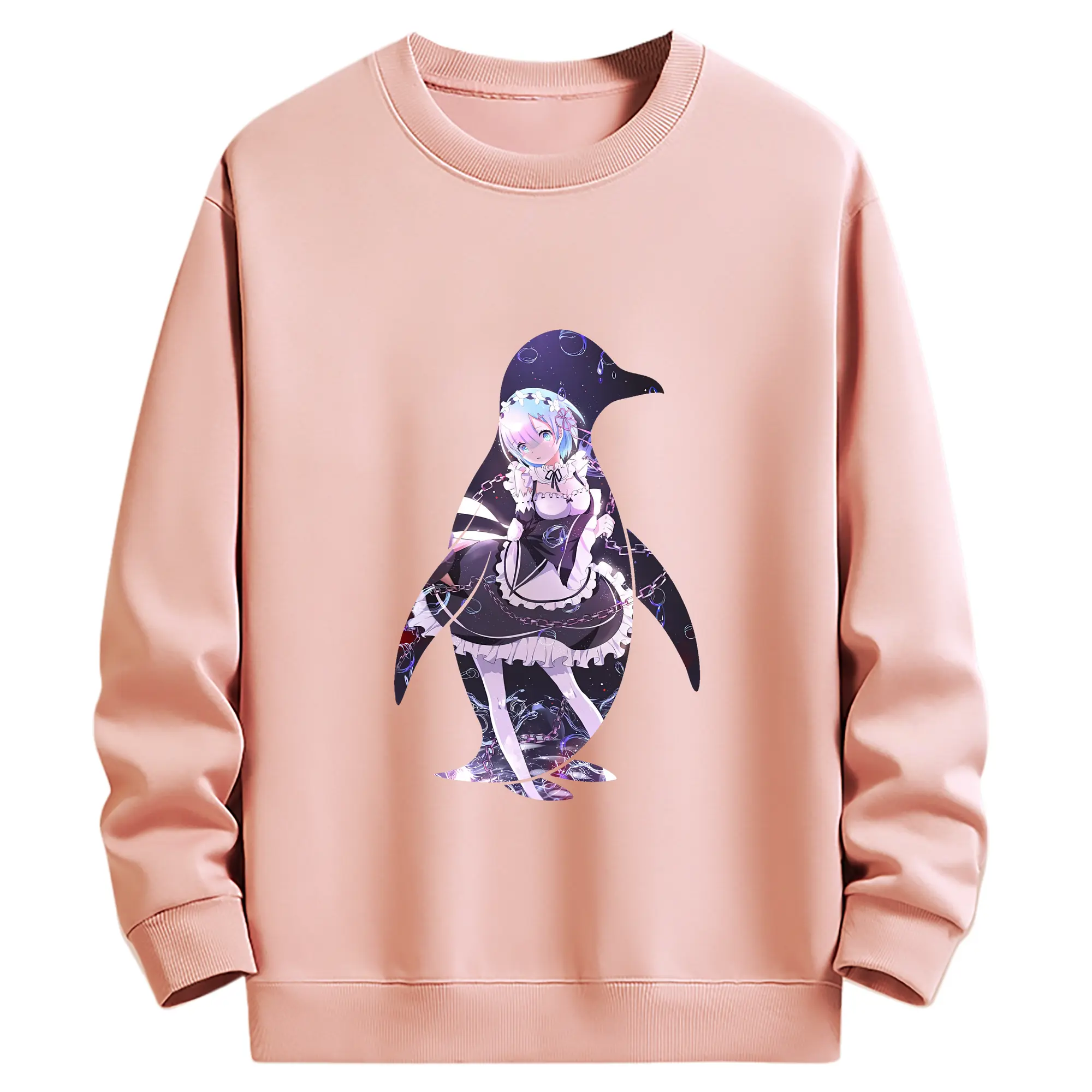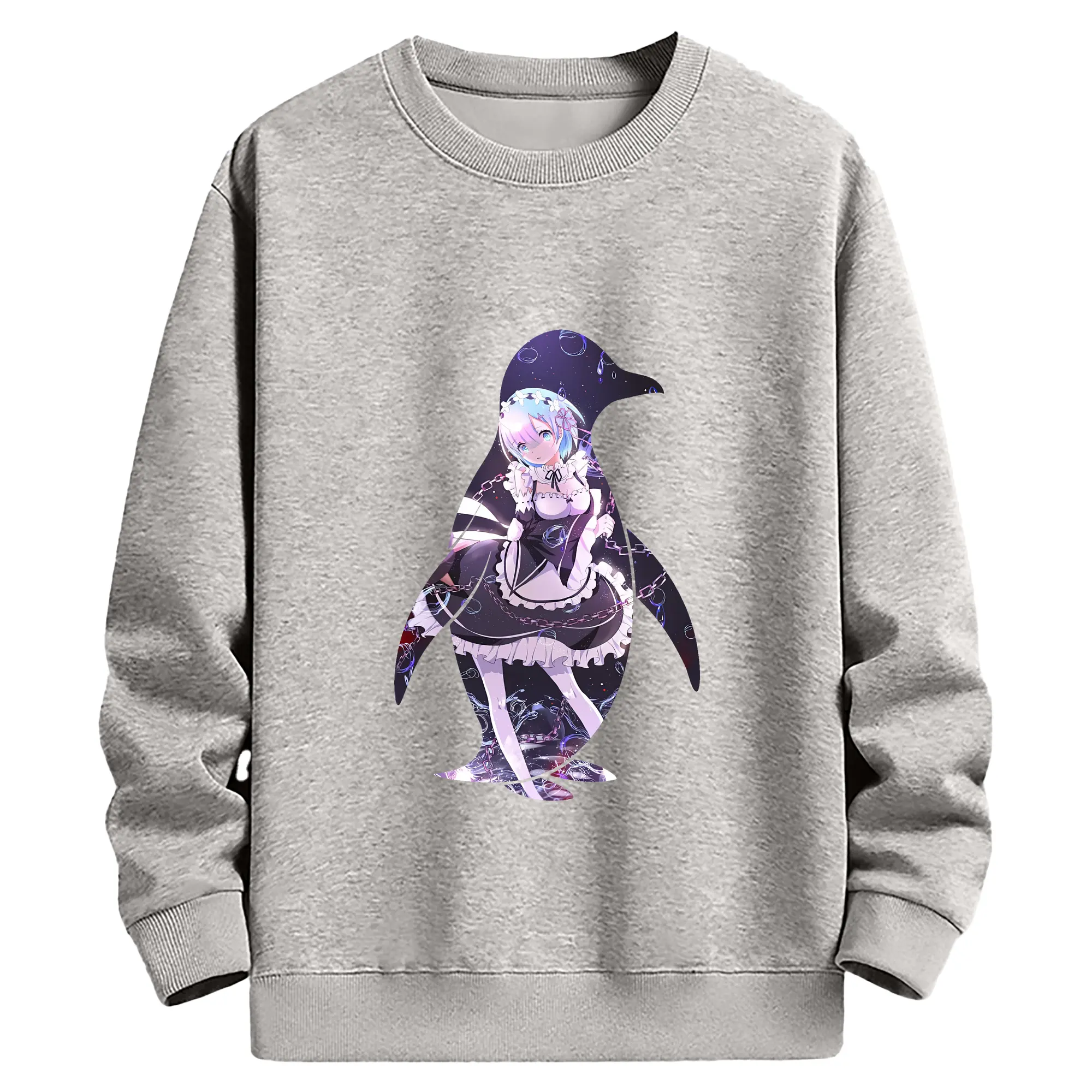 リゼロ グッズ レム - 薄手 クルーネック スウェット 裏毛260g · ポリエステル 春秋向け カジュアル 男女兼用 · トレーナー デイリー スポーツ 散歩に最適