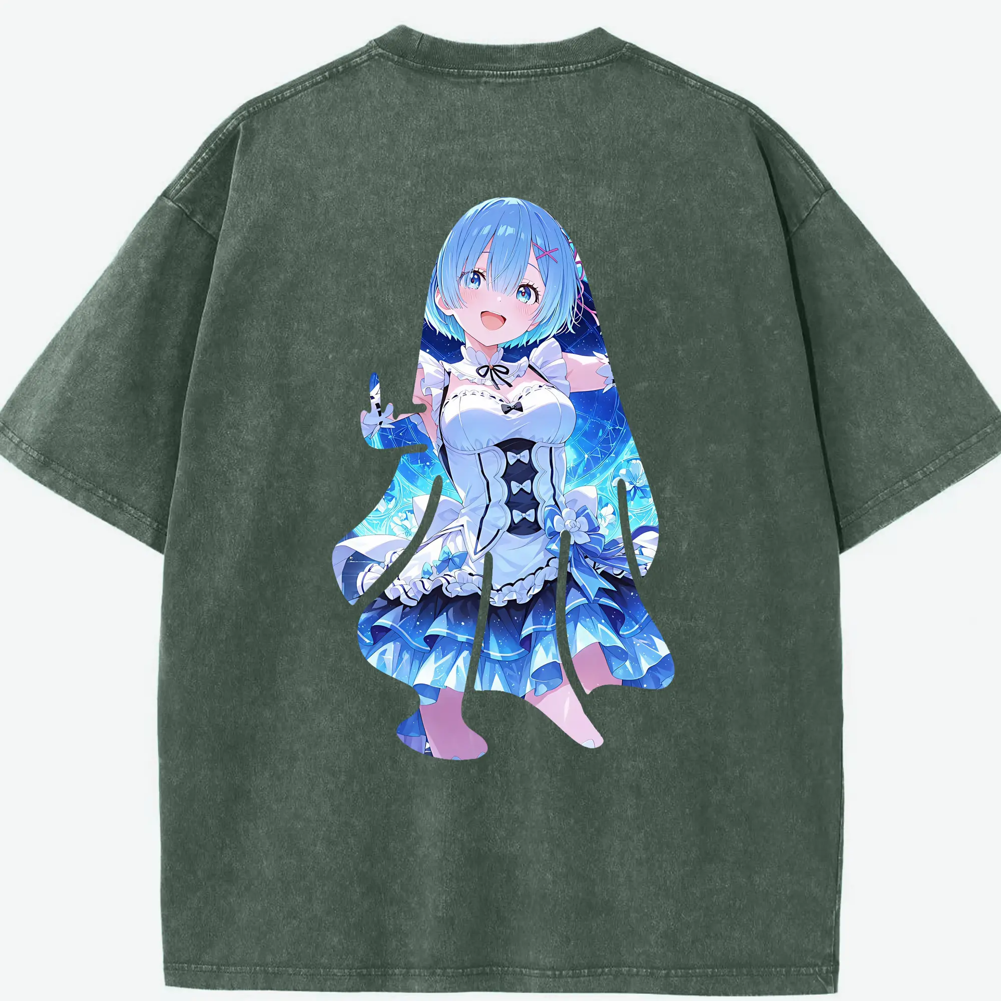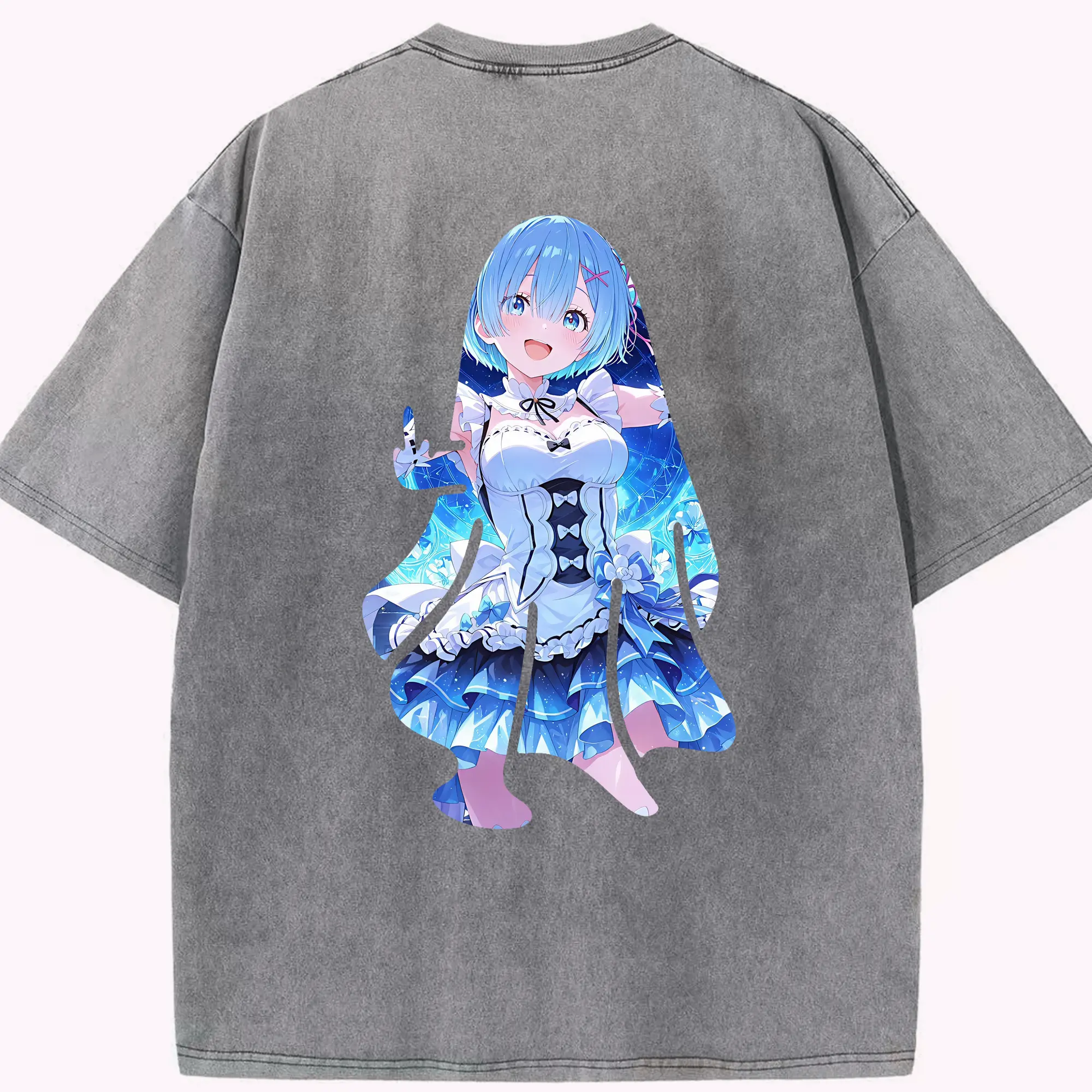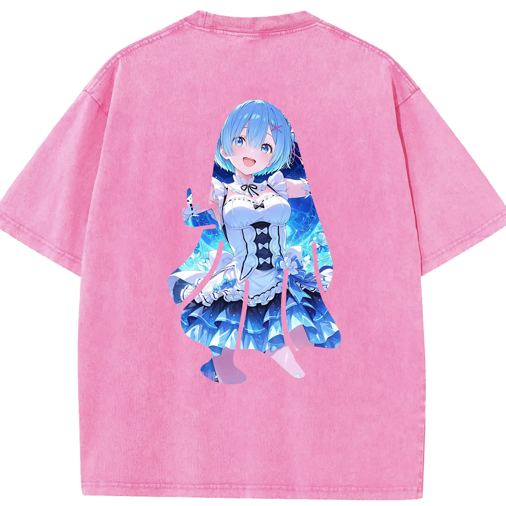 リゼロ グッズ レム - 綿100% 半袖Tシャツ ・ バックプリント ・ 快適 通気性 ・ 日常使い 散歩 スポーツ用