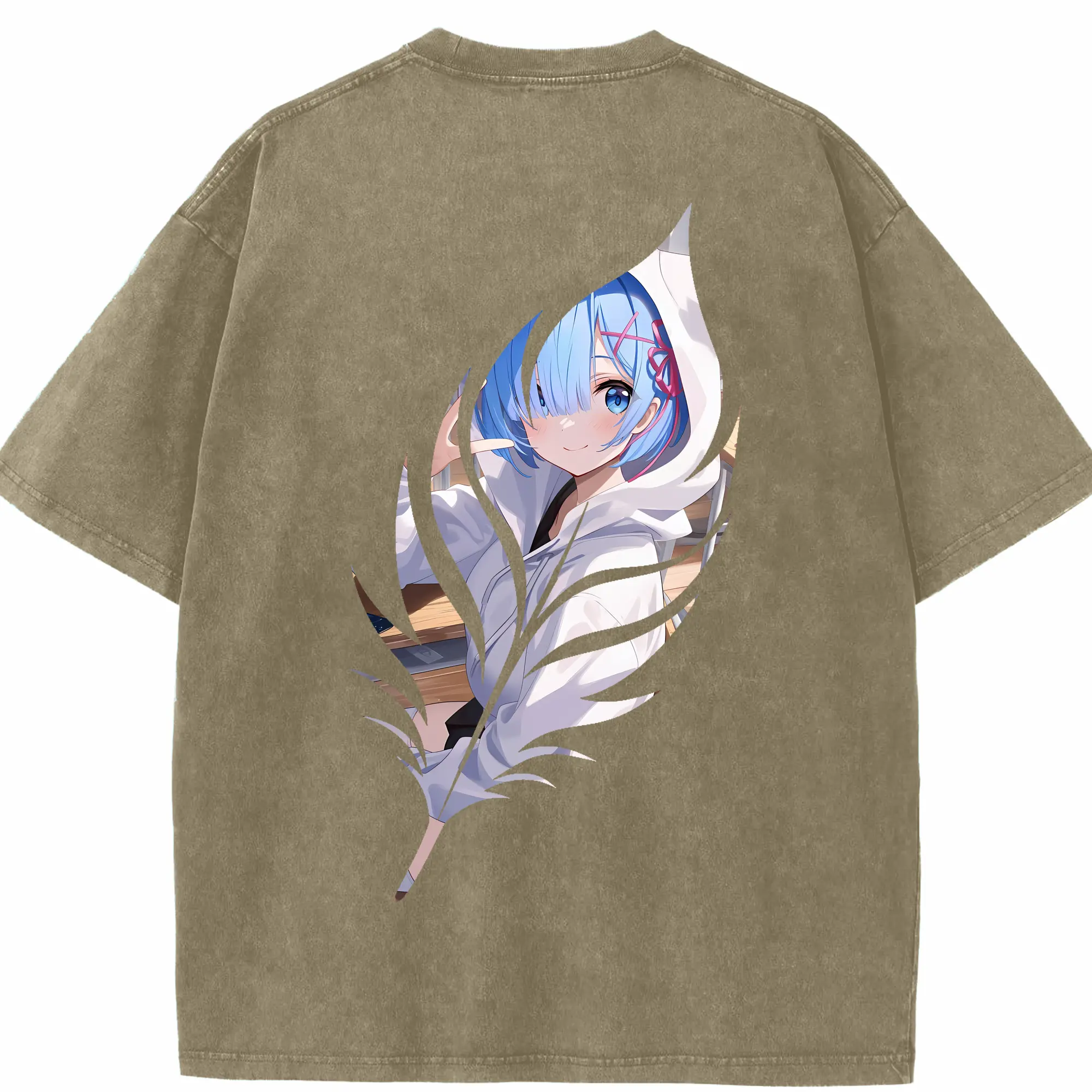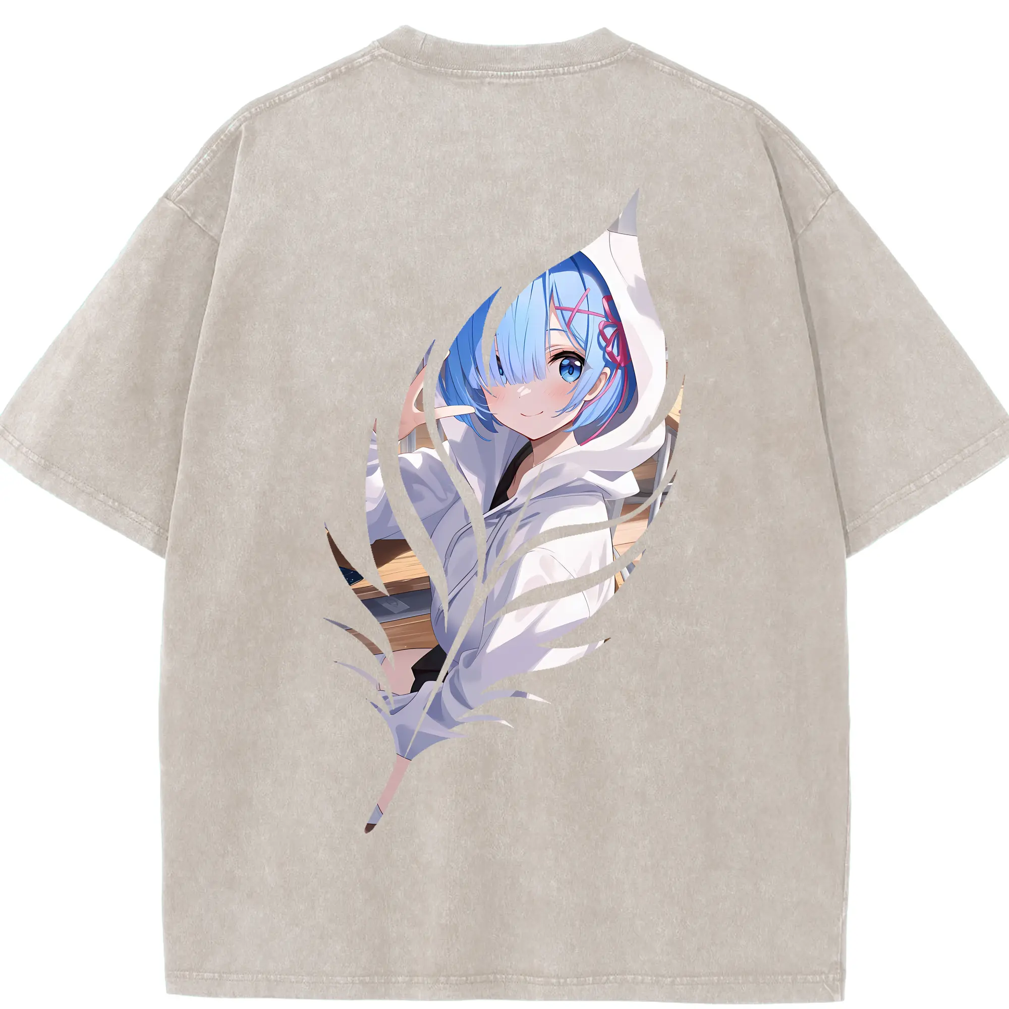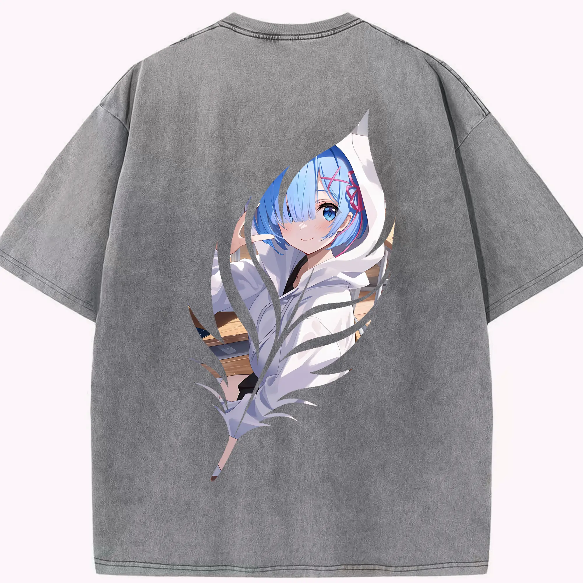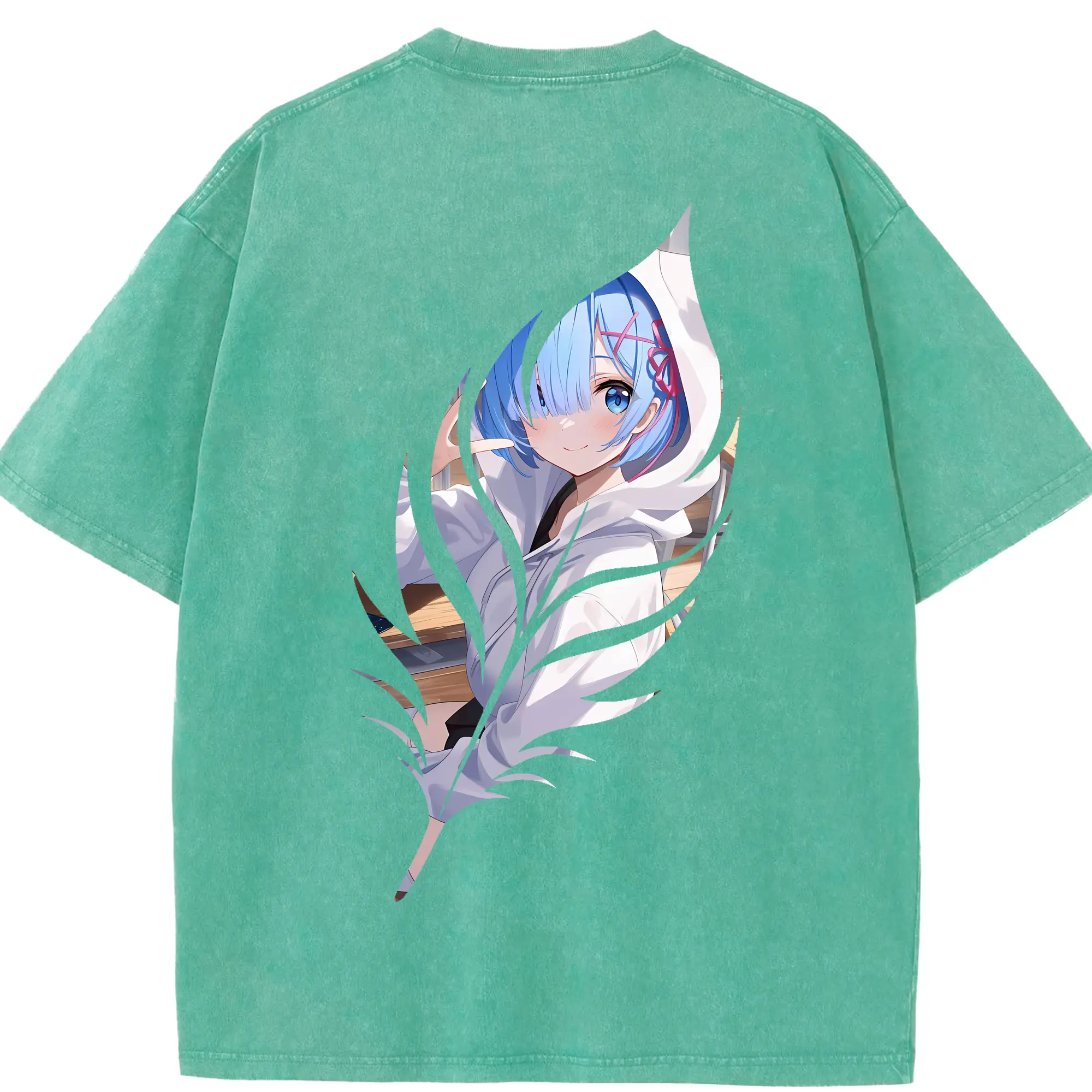 リゼロ グッズ レム - 綿100% ヴィンテージ風 半袖Tシャツ ・ フロントプリント ・ 柔らか肌触り ・ 通気性 快適 ・ スポーツ カジュアル 外出用