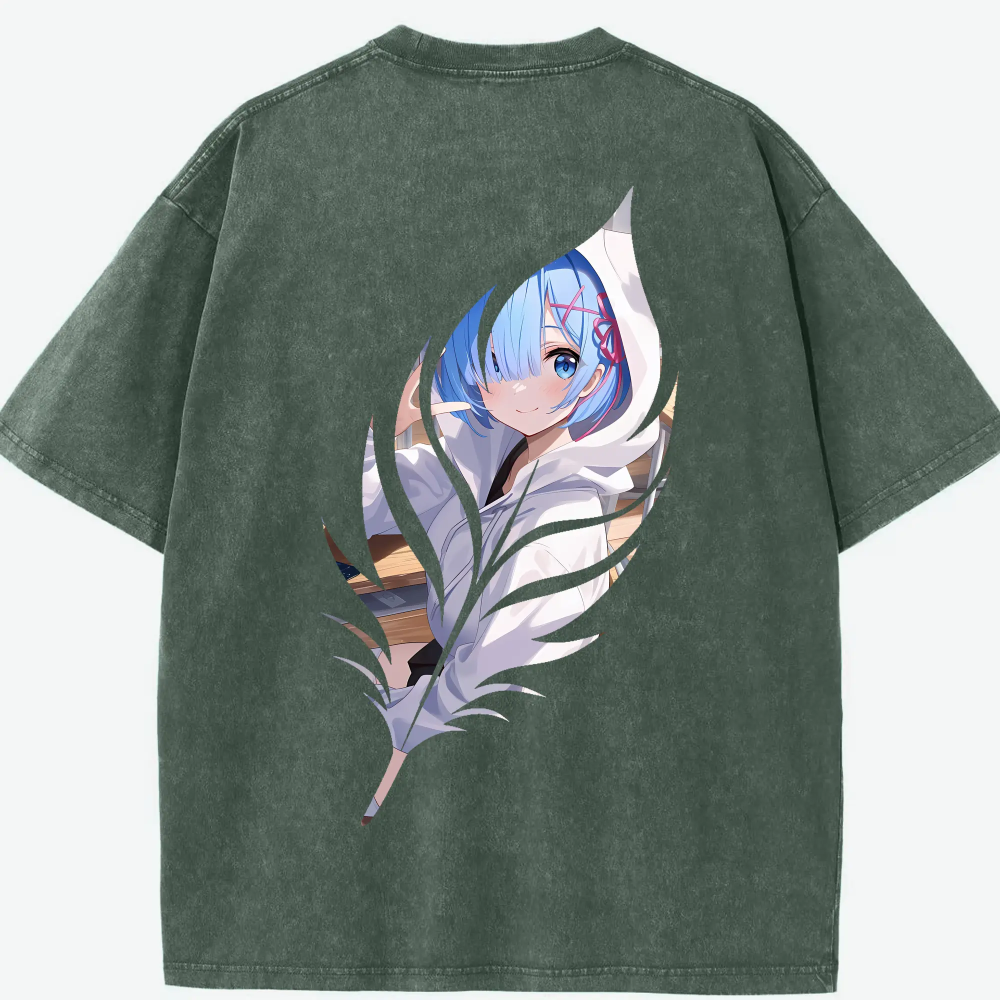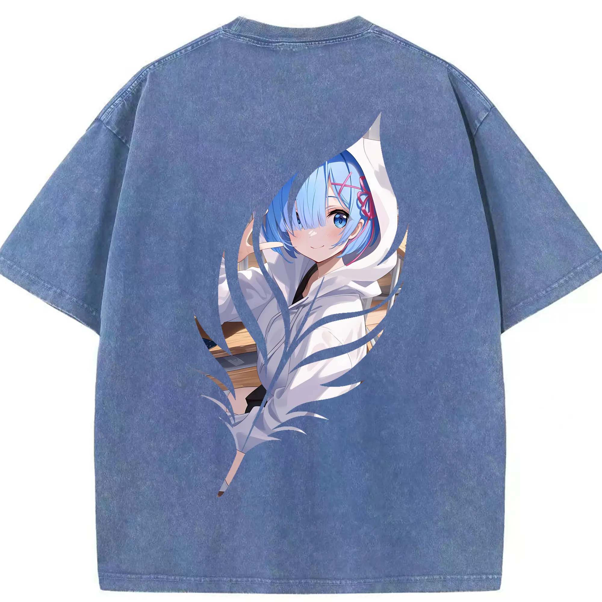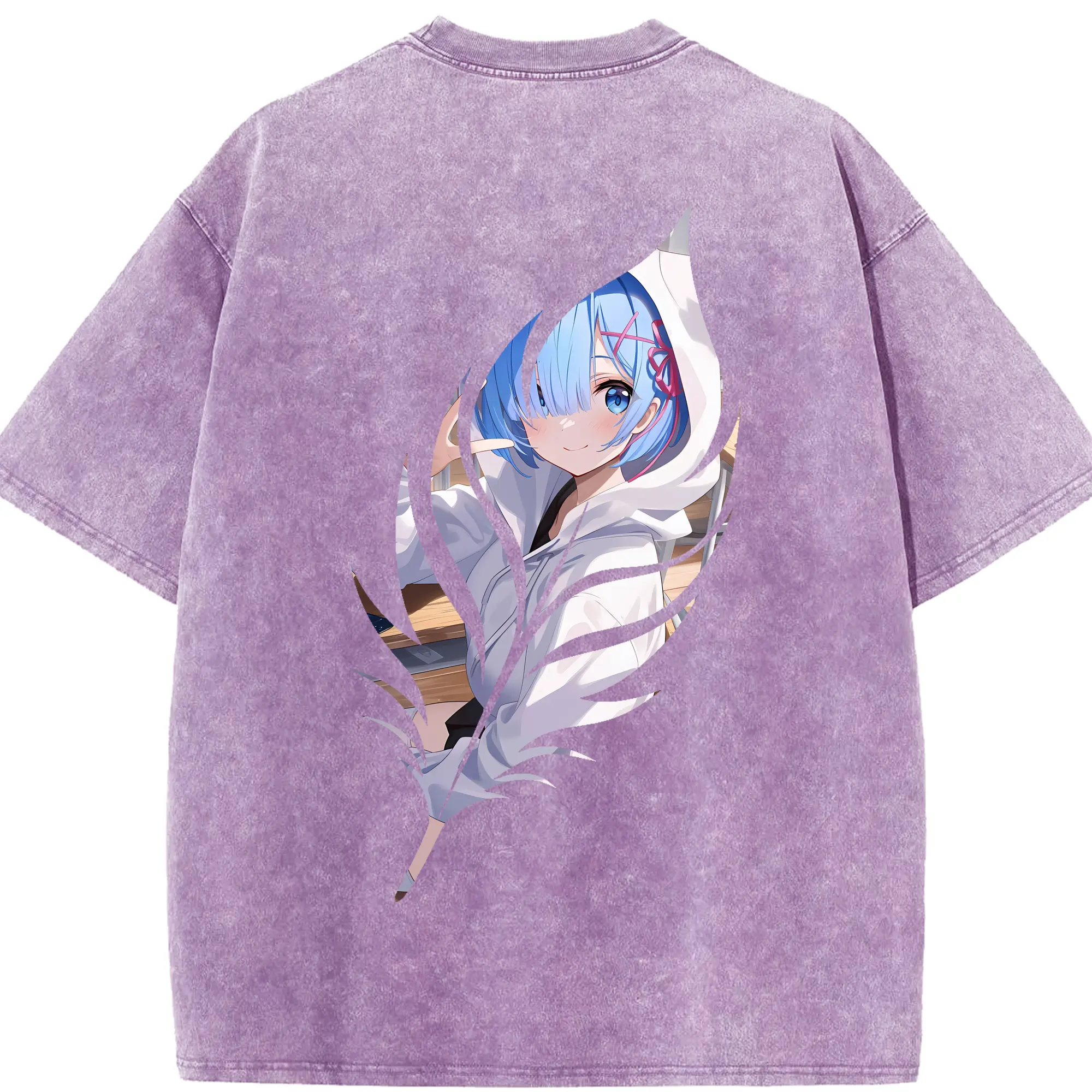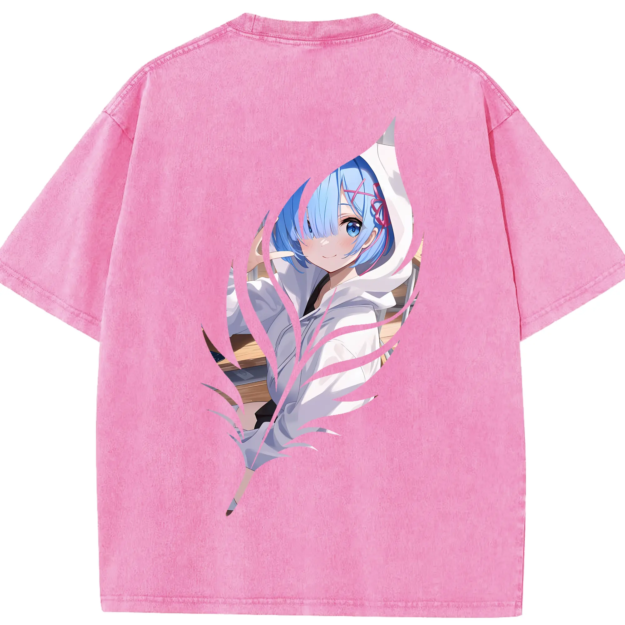リゼロ グッズ レム - 綿100% ヴィンテージ風 半袖Tシャツ ・ フロントプリント ・ 柔らか肌触り ・ 通気性 快適 ・ スポーツ カジュアル 外出用