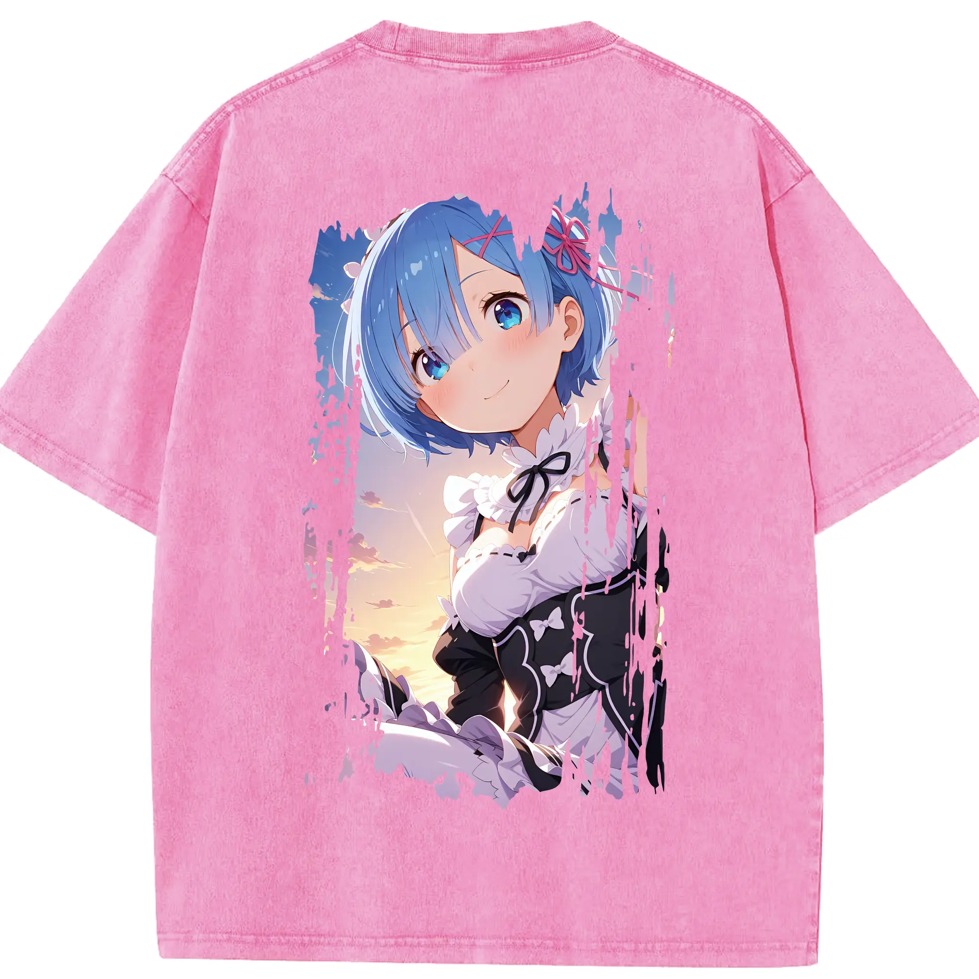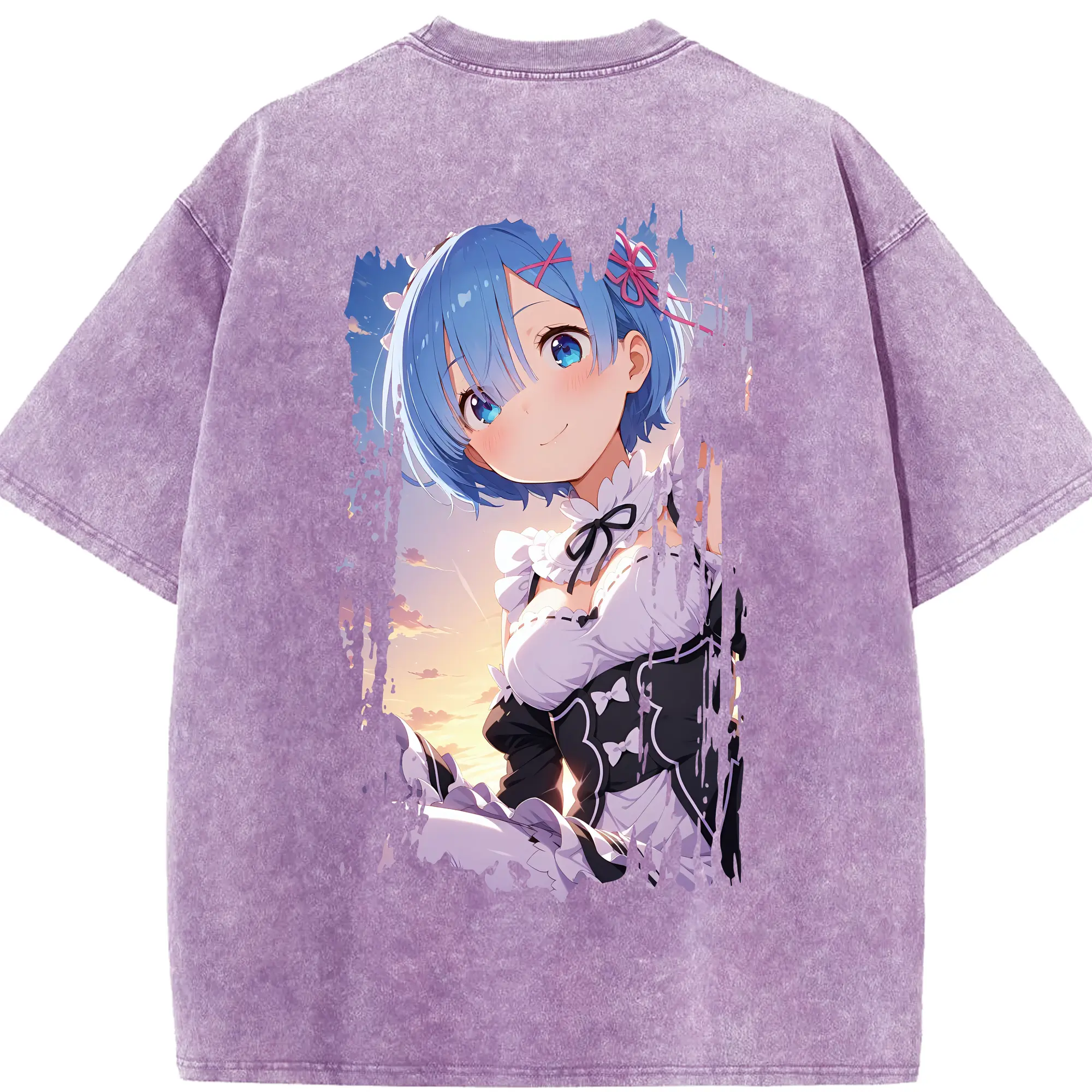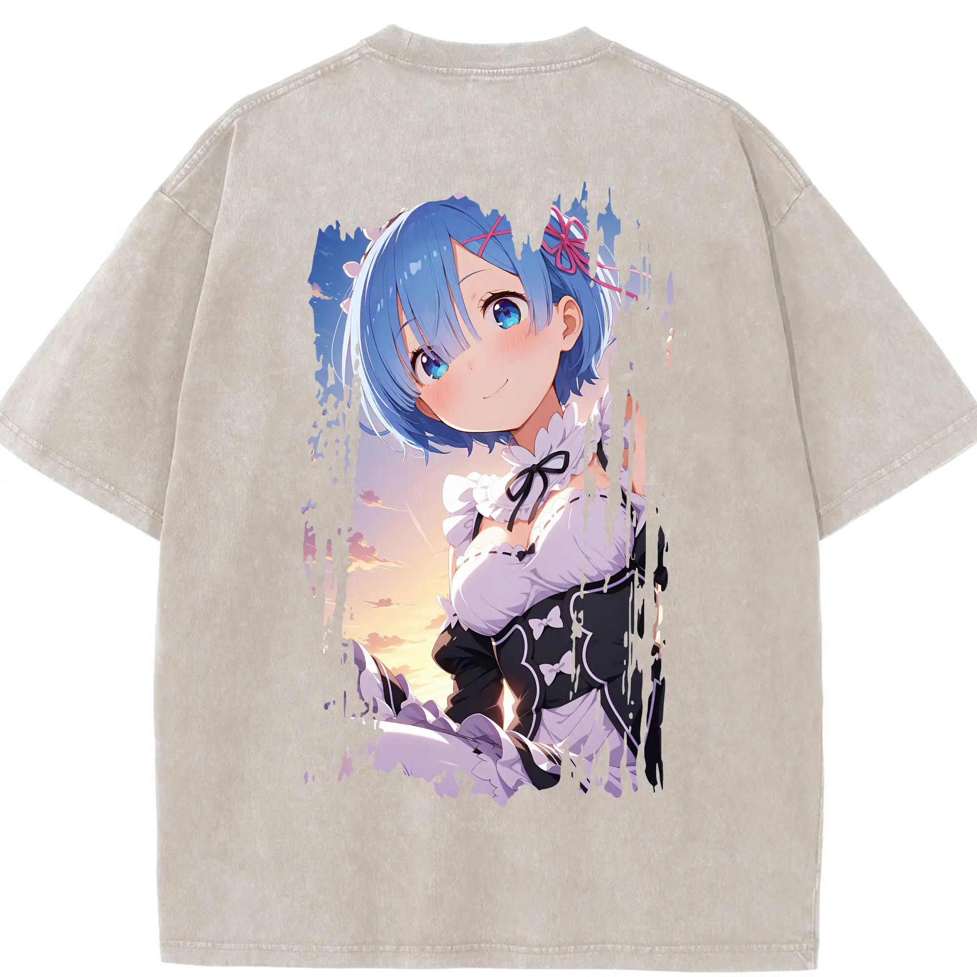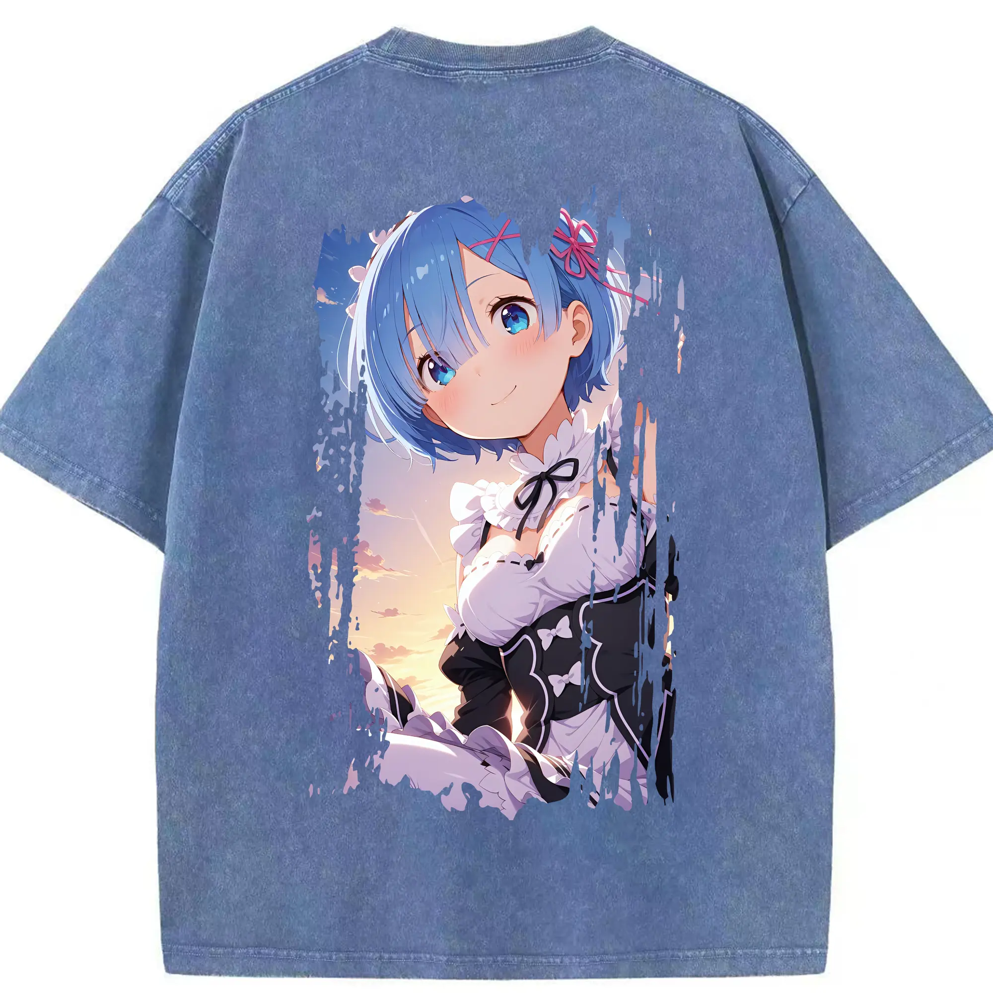 リゼロ グッズ レム - 綿100% ヴィンテージ風 半袖Tシャツ ・ フロントプリント ・ 柔らか肌触り ・ 通気性 快適 ・ スポーツ カジュアル 外出用