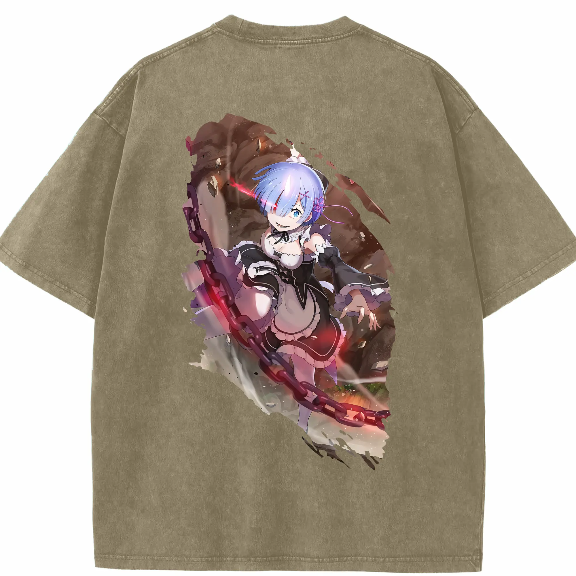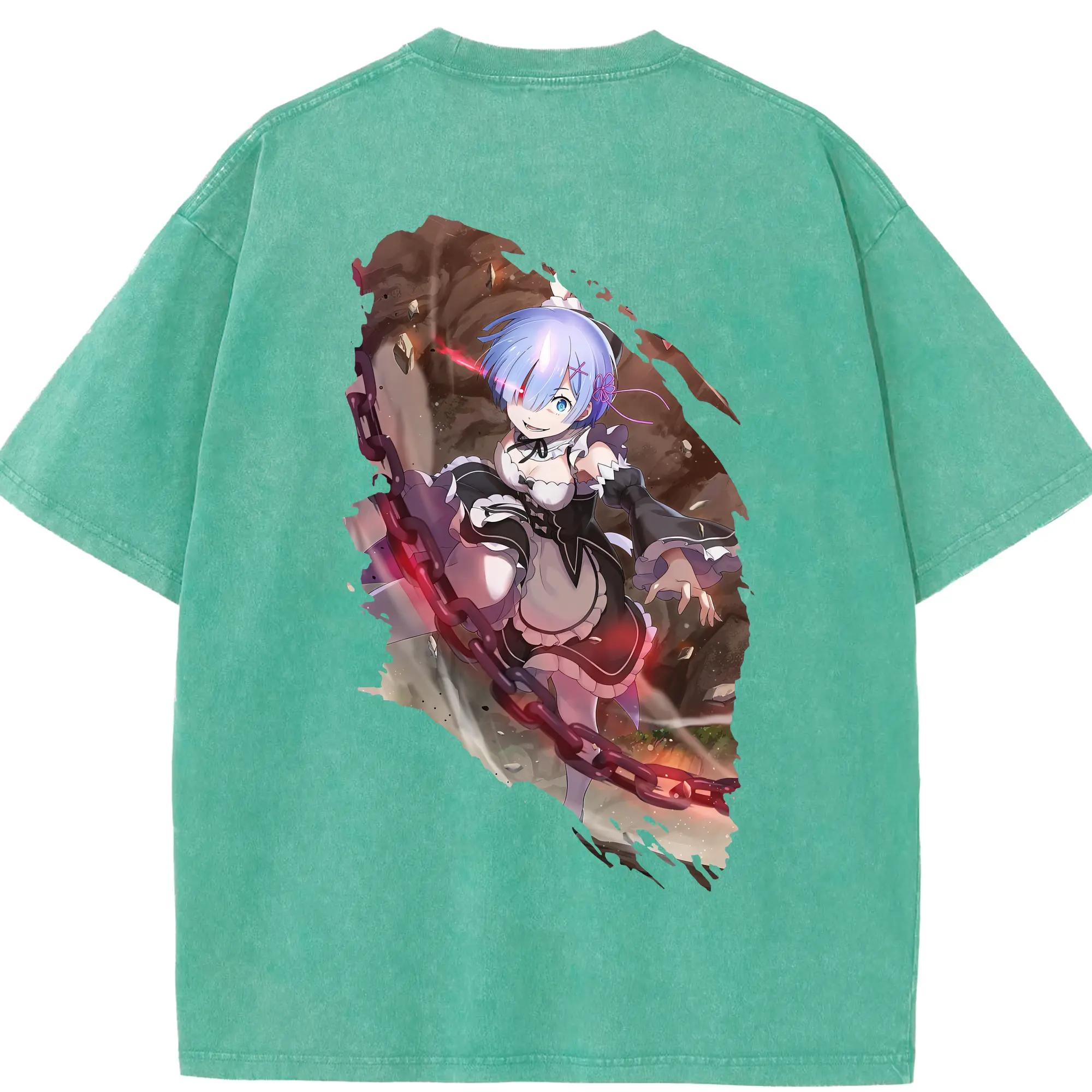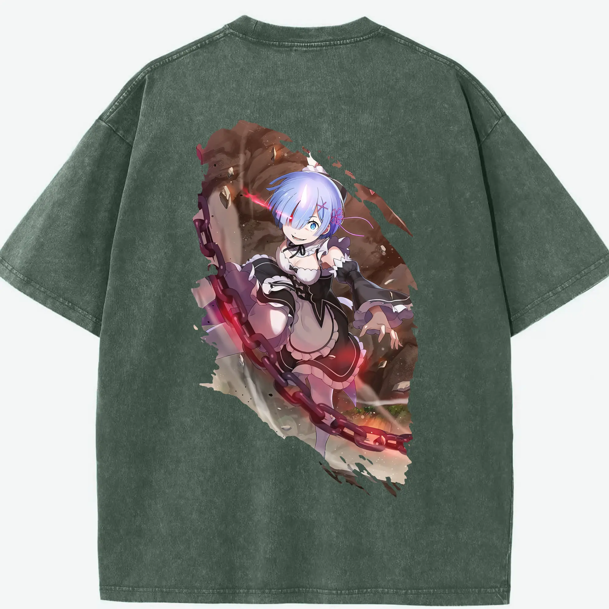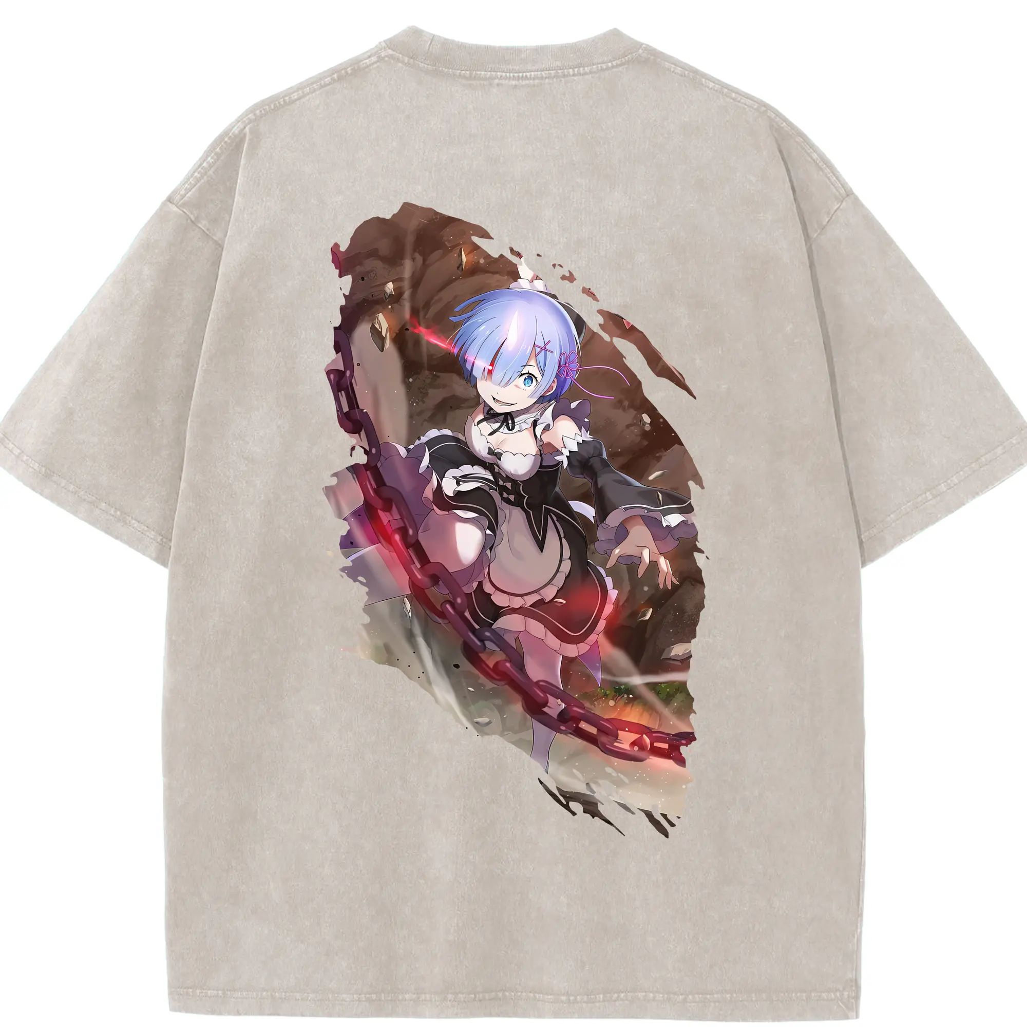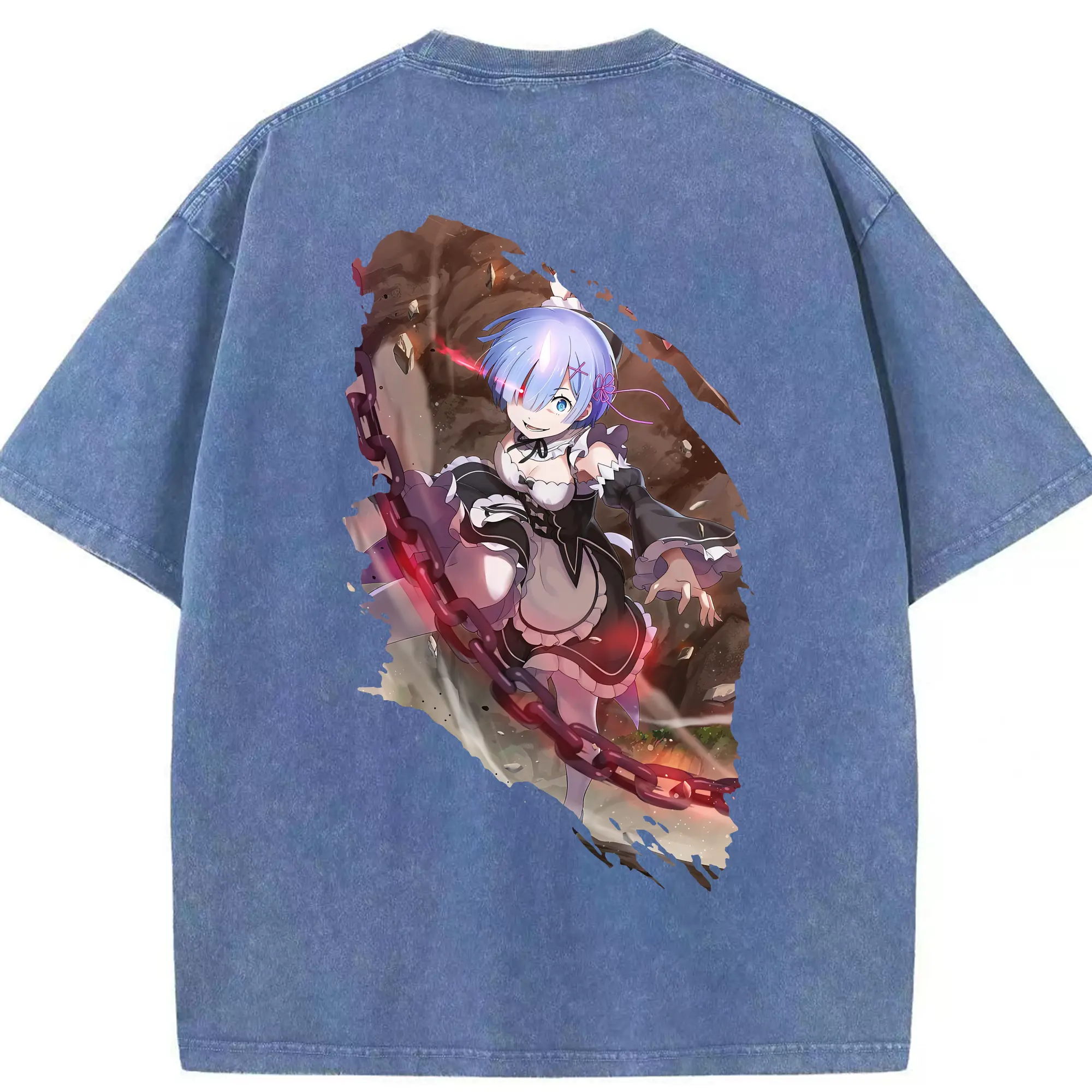 リゼロ グッズ レム - 綿100% ヴィンテージ風 半袖Tシャツ ・ フロントプリント ・ 柔らか肌触り ・ 通気性 快適 ・ スポーツ カジュアル 外出用