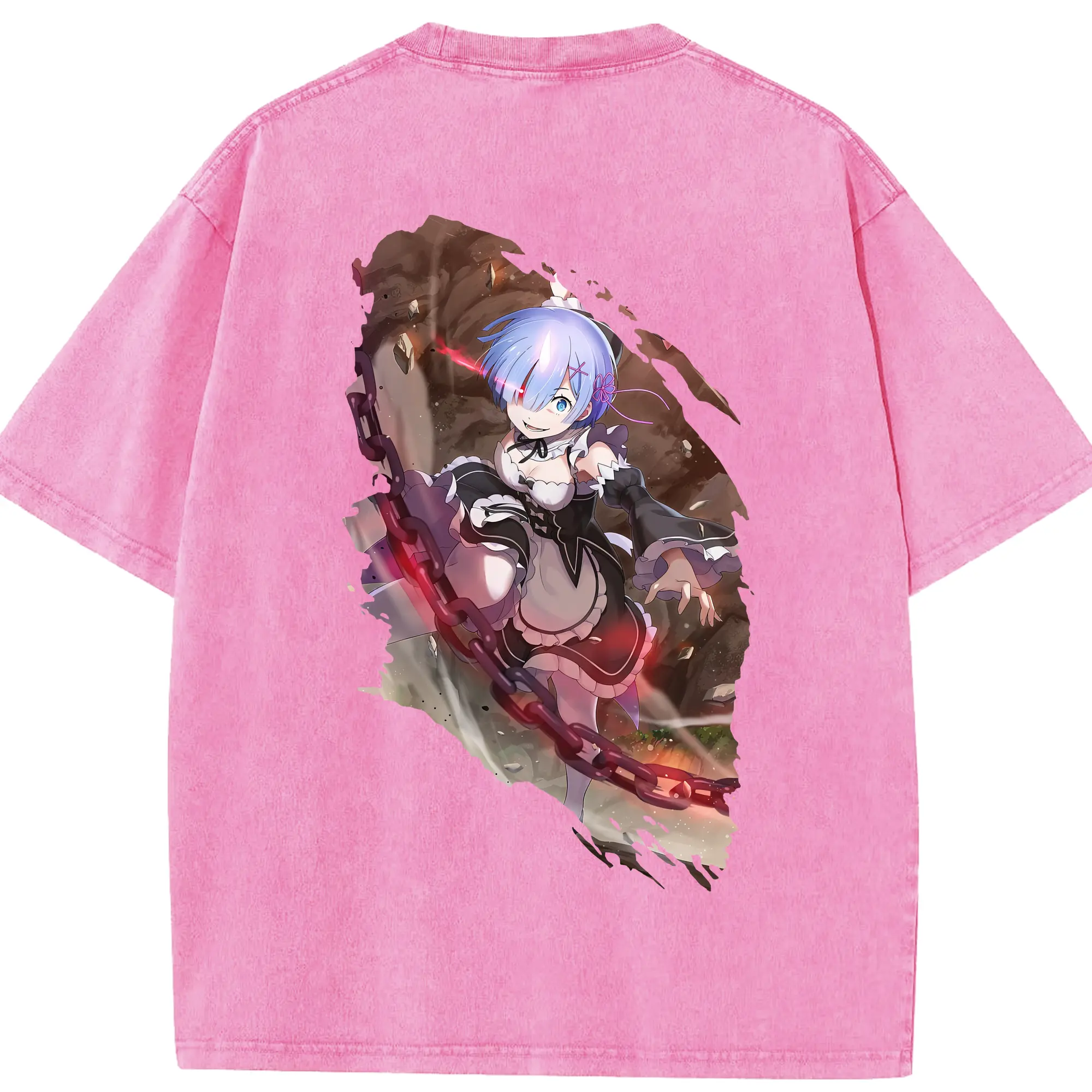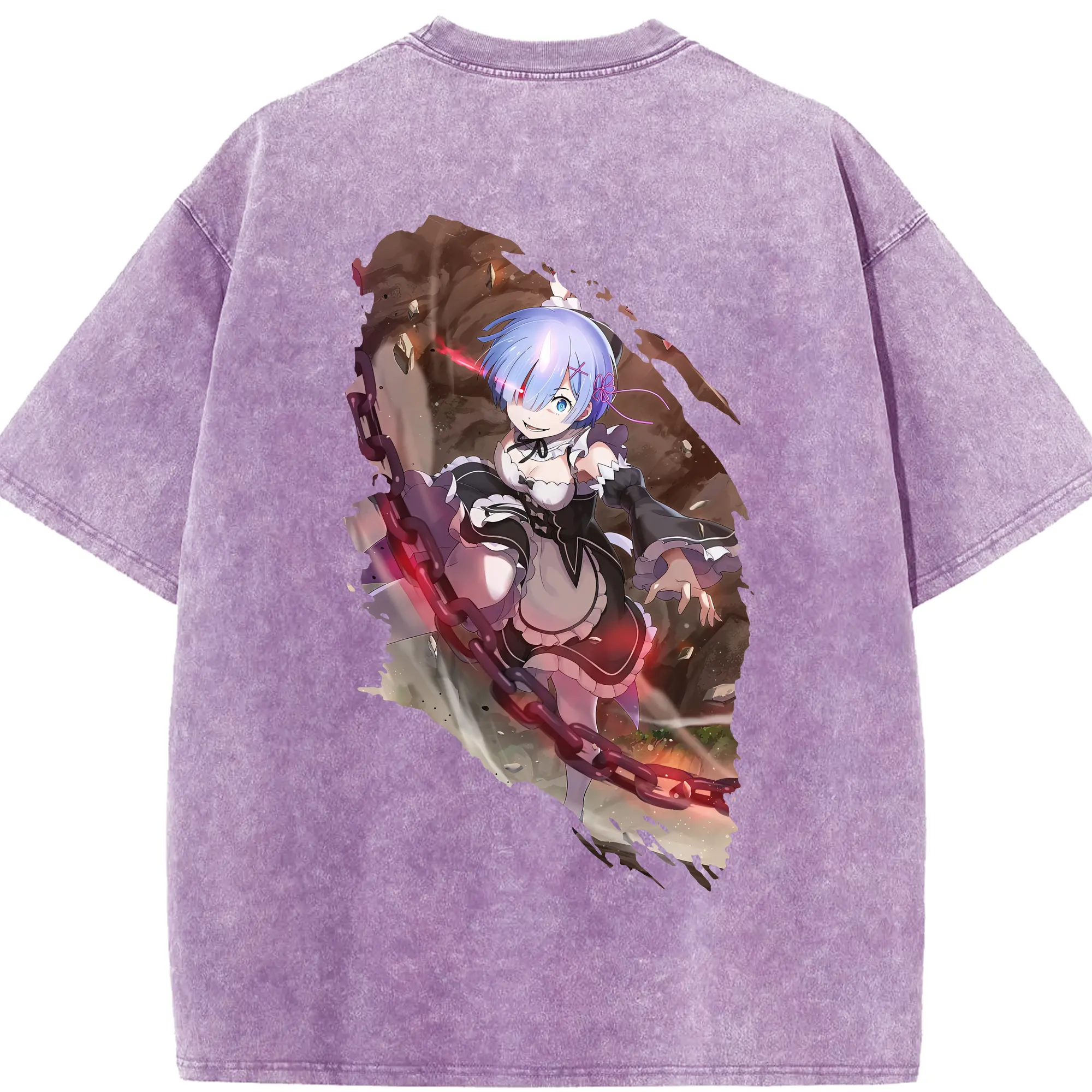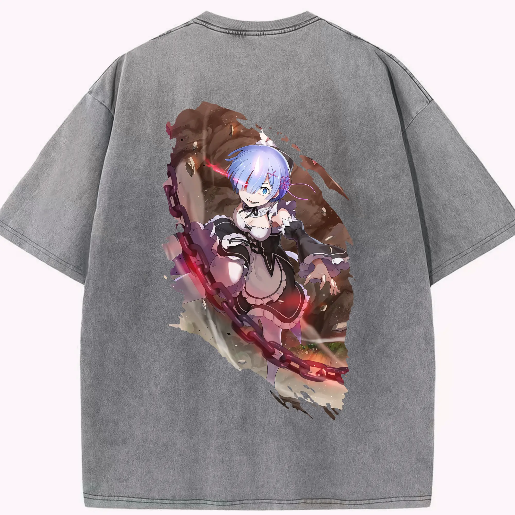 リゼロ グッズ レム - 綿100% 半袖Tシャツ ・ バックプリント ・ 快適 通気性 ・ 日常使い 散歩 スポーツ用