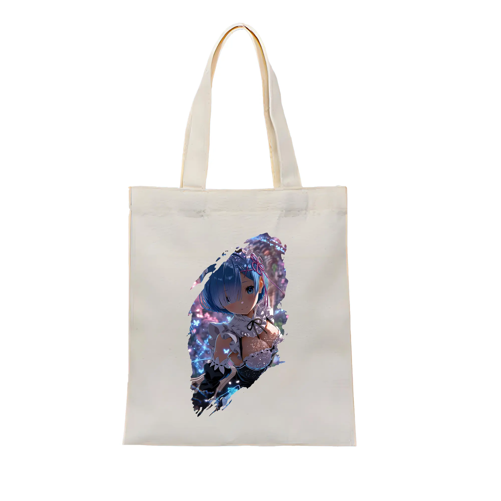 リゼロ グッズ レム - 縦型キャンバス手提げバッグ(トートバッグ) ・ キャンバス素材 ・ ショッピング用 ・ 軽量 丈夫 お手入れ簡単