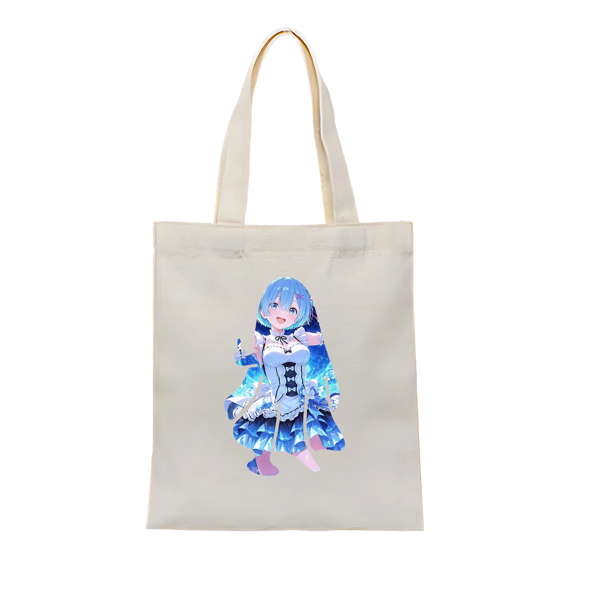 リゼロ グッズ レム - 縦型キャンバス手提げバッグ(トートバッグ) ・ キャンバス素材 ・ ショッピング用 ・ 軽量 丈夫 お手入れ簡単