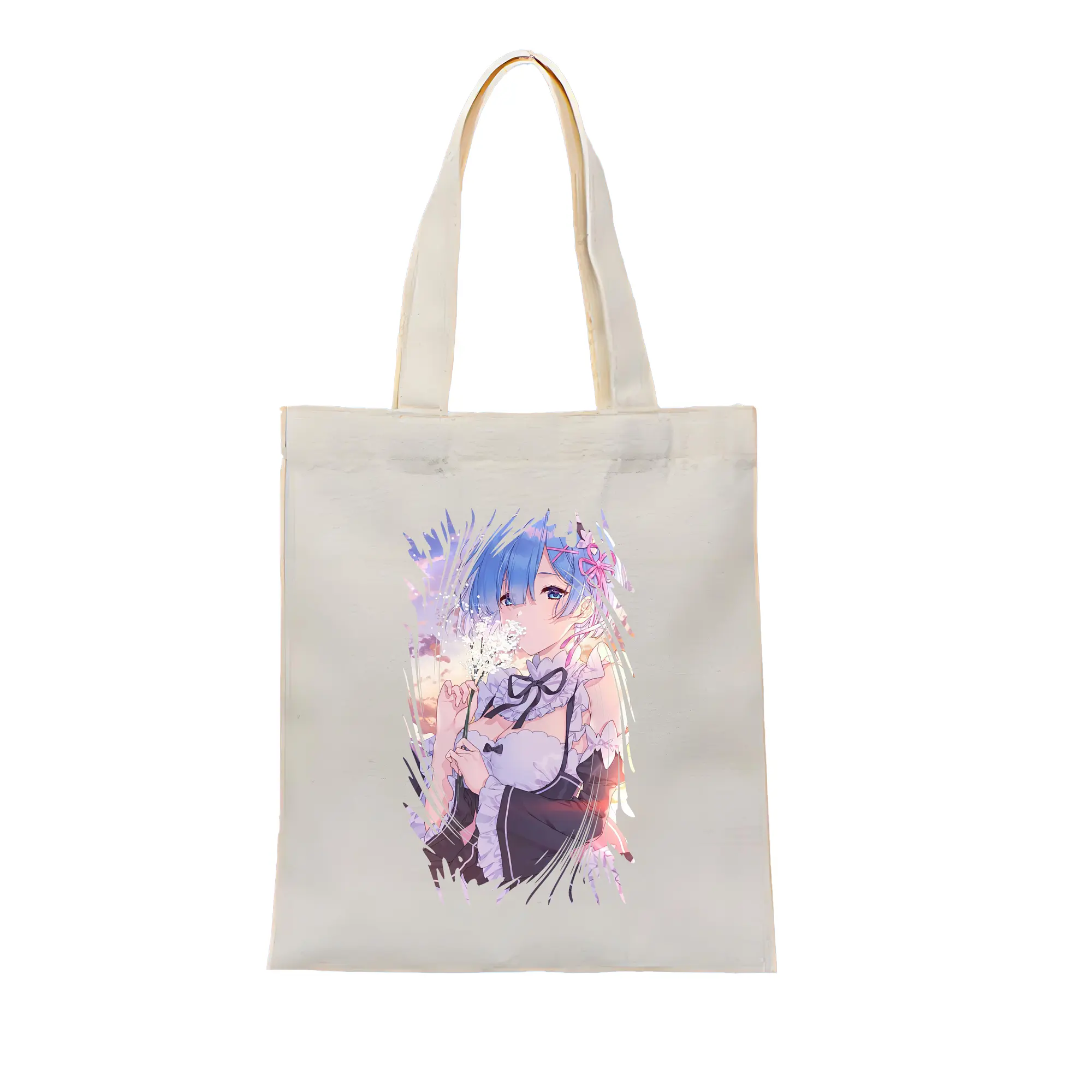 リゼロ グッズ レム - 縦型キャンバス手提げバッグ(トートバッグ) ・ キャンバス素材 ・ ショッピング用 ・ 軽量 丈夫 お手入れ簡単