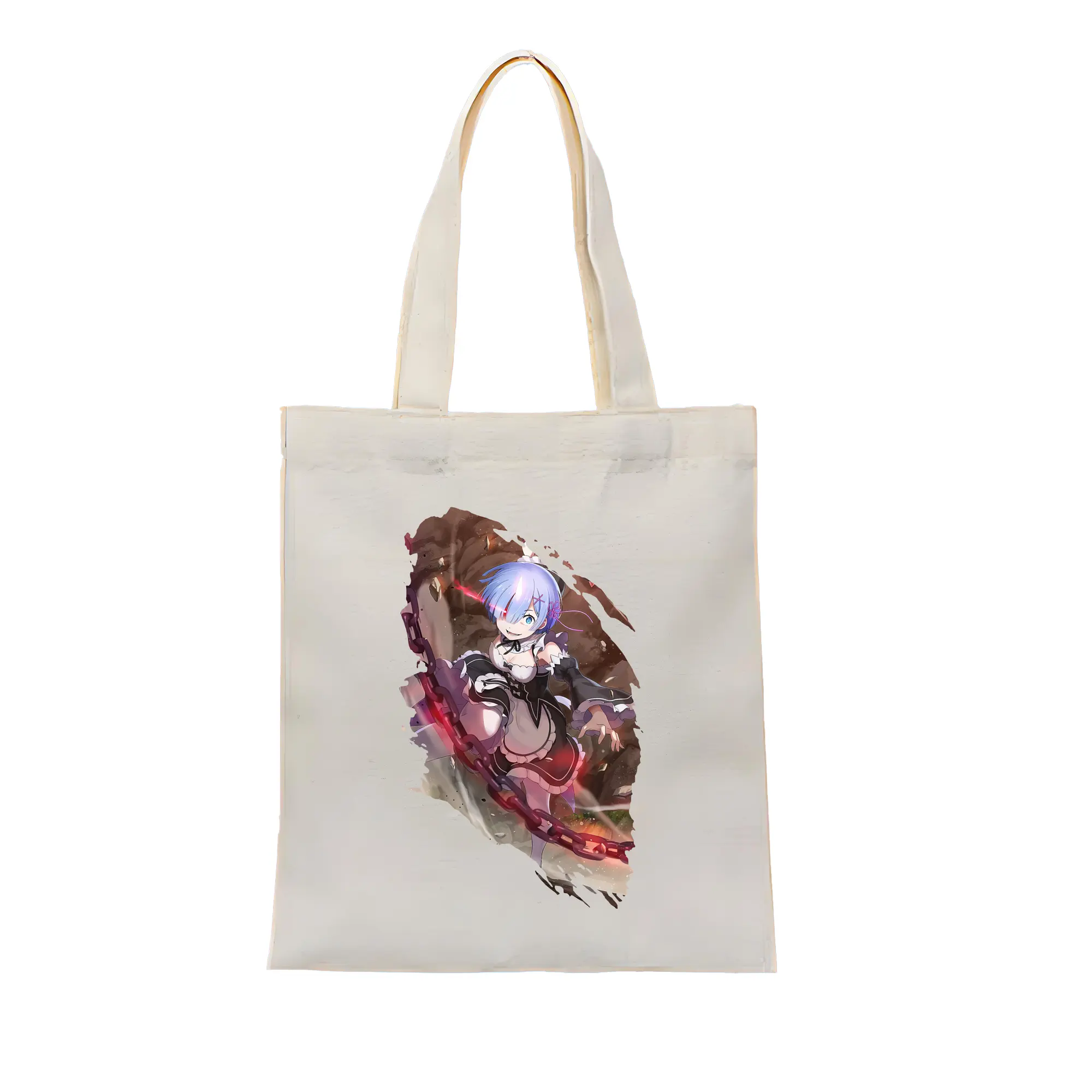 リゼロ グッズ レム - 縦型キャンバス手提げバッグ(トートバッグ) ・ キャンバス素材 ・ ショッピング用 ・ 軽量 丈夫 お手入れ簡単