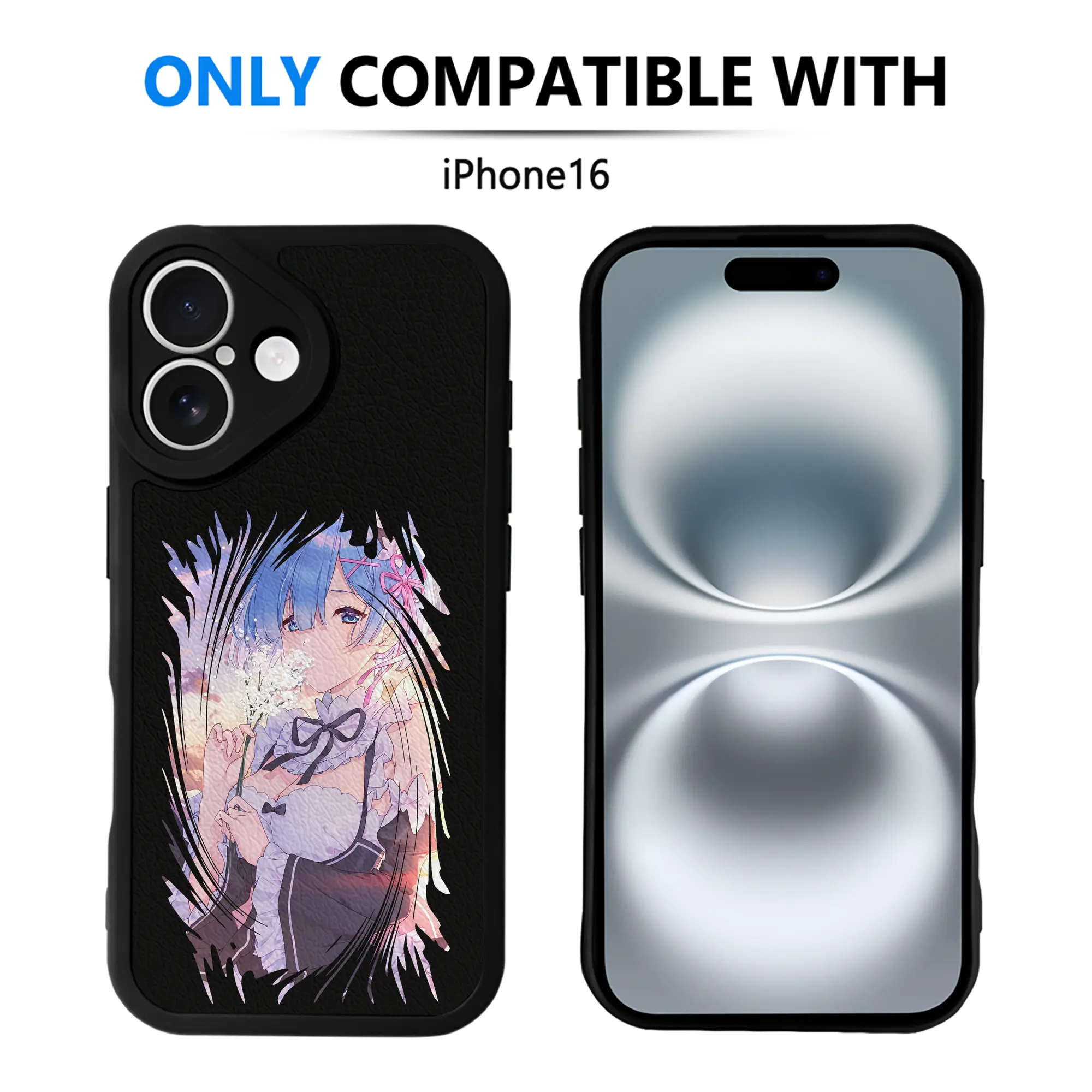 リゼロ グッズ レム - IPhone 16シリーズ対応 ・ シリコンスマホケース ・ レザー調 ・ 高精度フィット ・ 耐衝撃 ・ ワイヤレス充電対応 ・ 精密カット