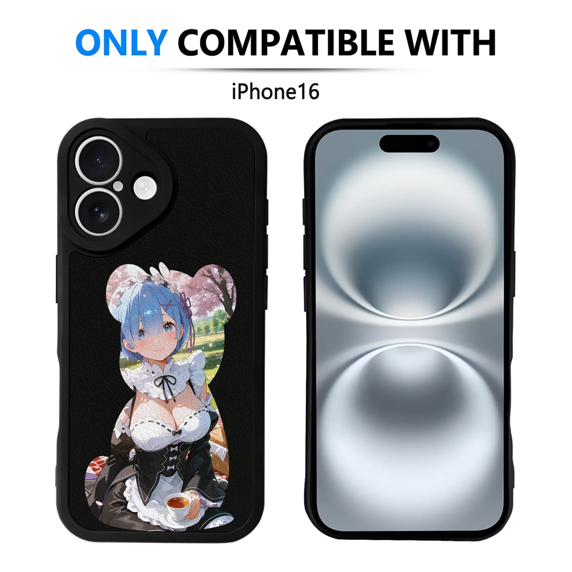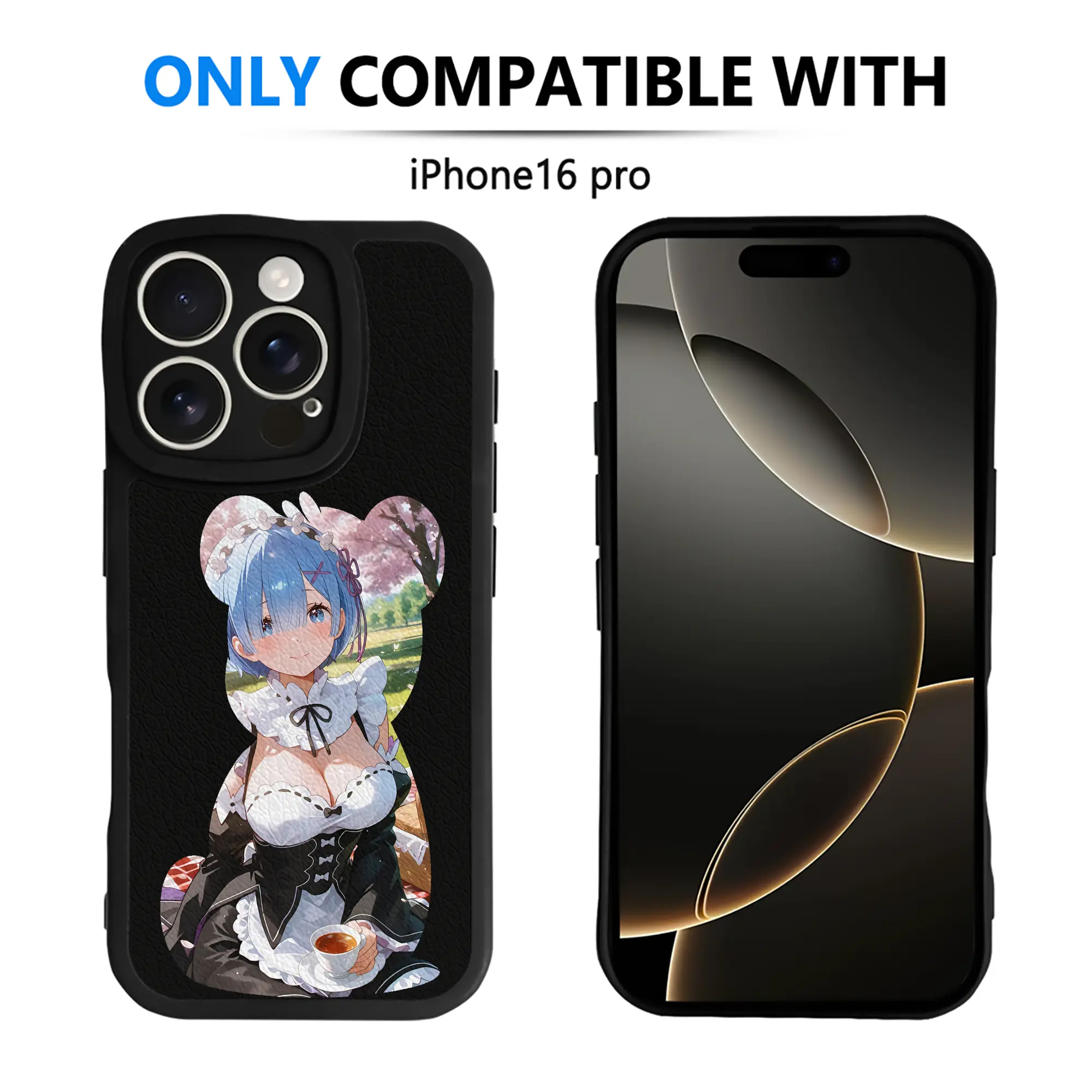 リゼロ グッズ レム - IPhone 16シリーズ対応 ・ シリコンスマホケース ・ レザー調 ・ 高精度フィット ・ 耐衝撃 ・ ワイヤレス充電対応 ・ 精密カット