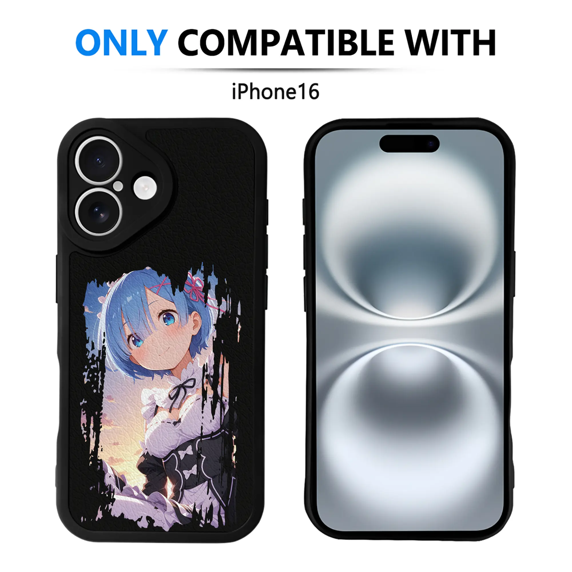 リゼロ グッズ レム - IPhone 16シリーズ対応 ・ シリコンスマホケース ・ レザー調 ・ 高精度フィット ・ 耐衝撃 ・ ワイヤレス充電対応 ・ 精密カット