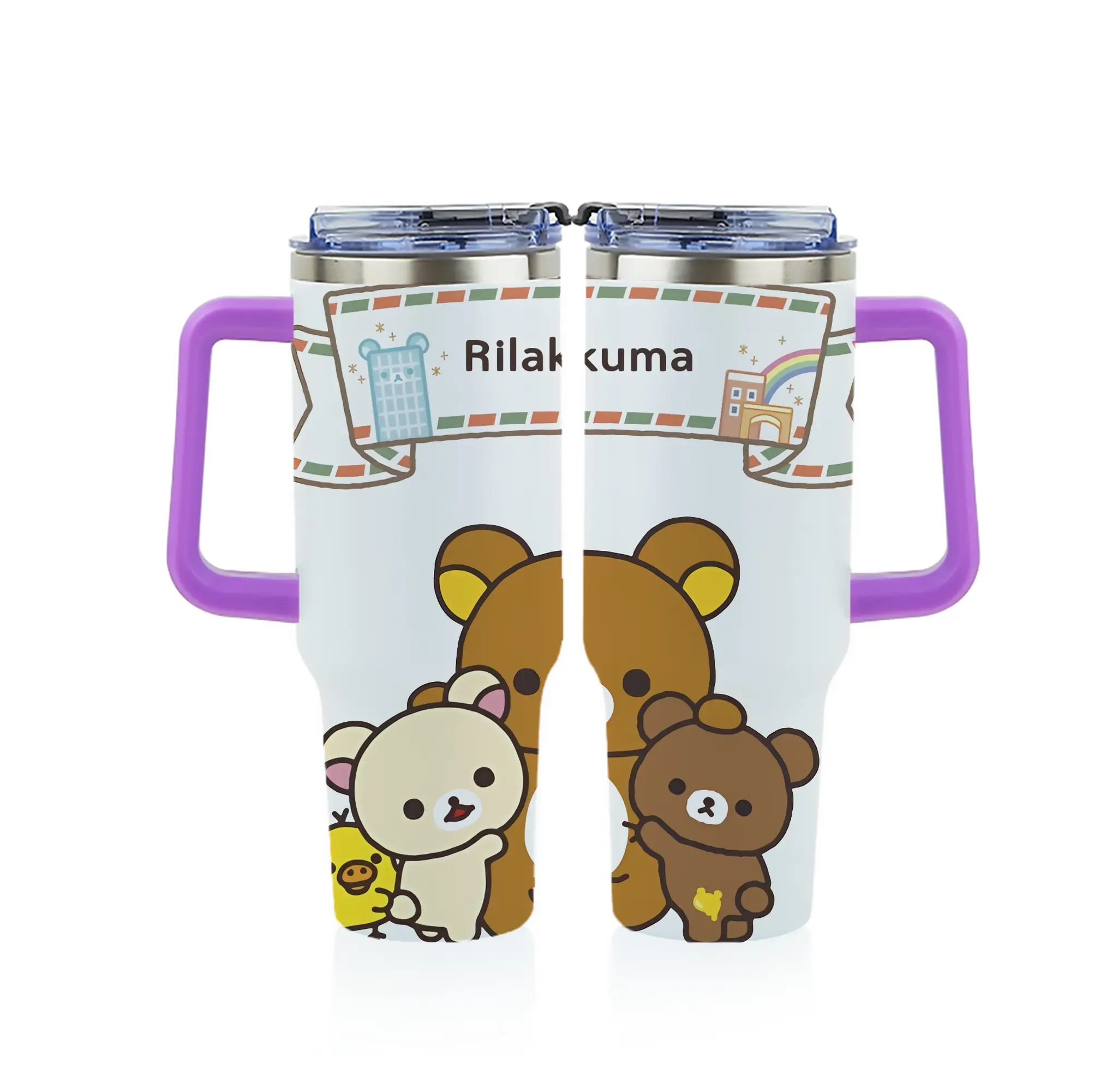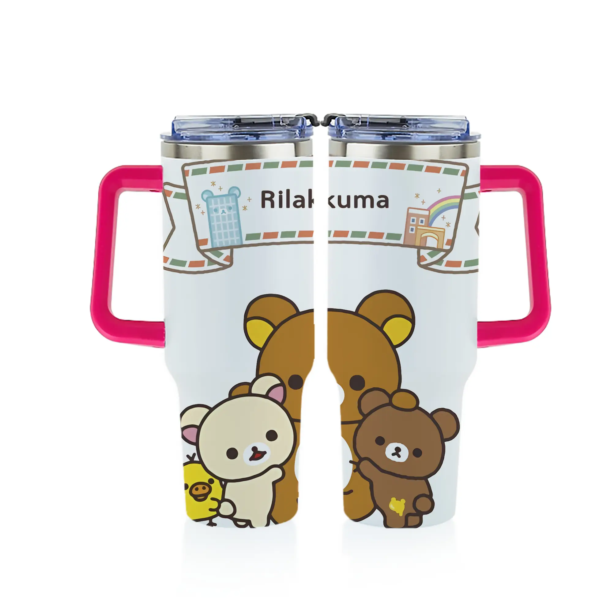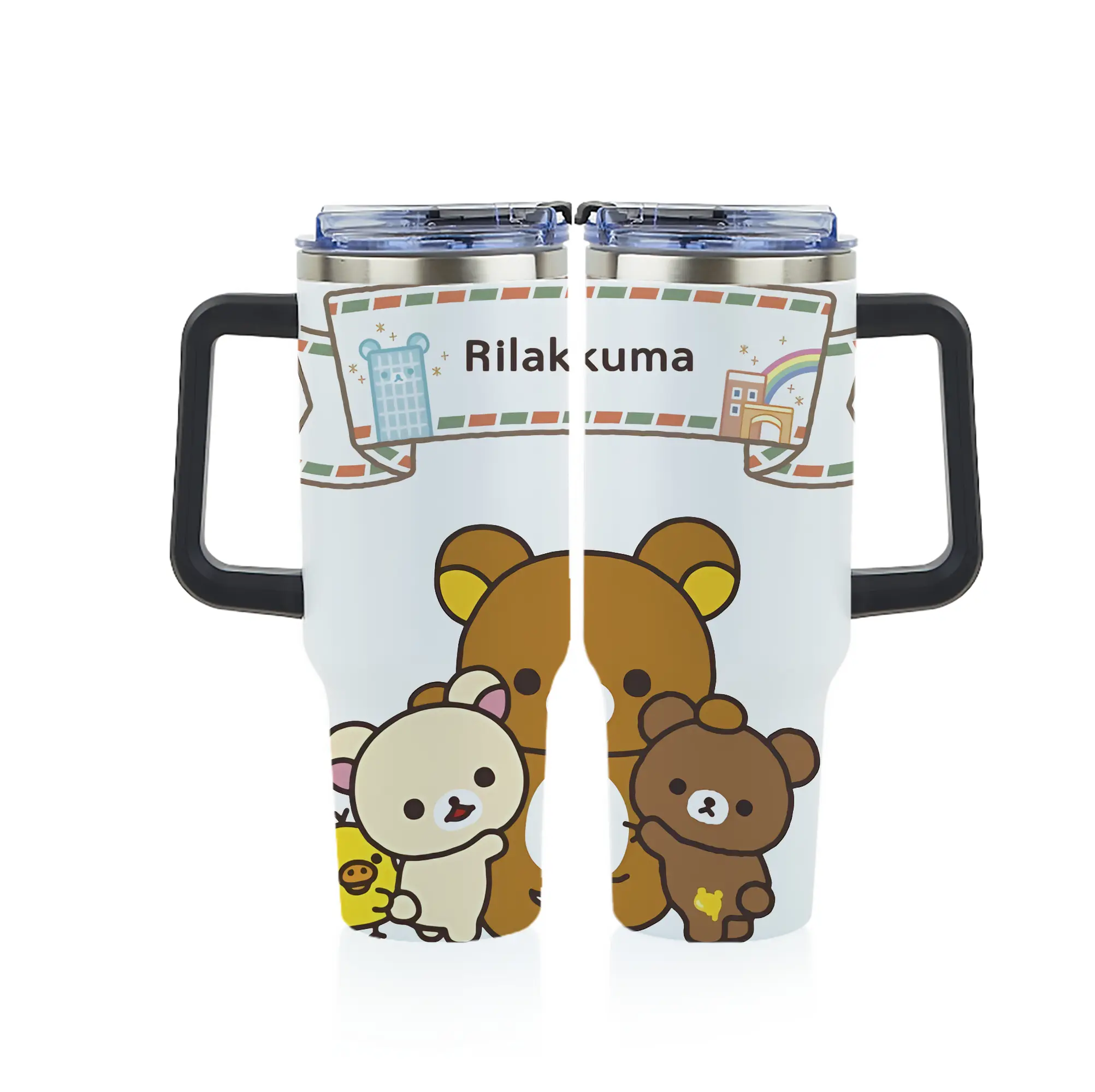 リラックマ (Rilakkuma) グッズ リラックマ (Rilakkuma) - 1200mL フルプリント車用タンブラー ・ 304ステンレス 内側 ・ 201ステンレス 外側 ・ 保温 保冷 ・ 通勤 ドライブ アウトドア用