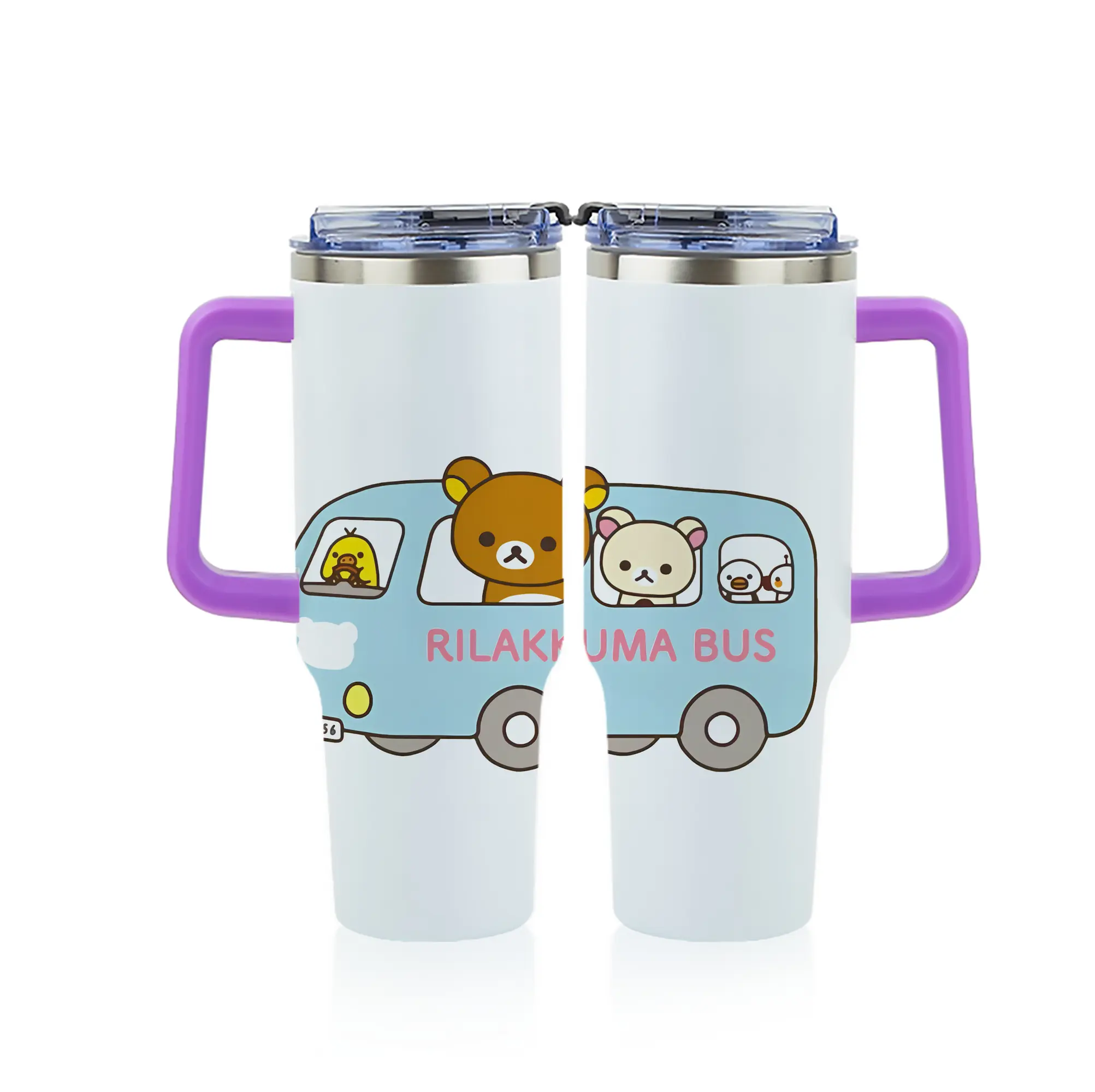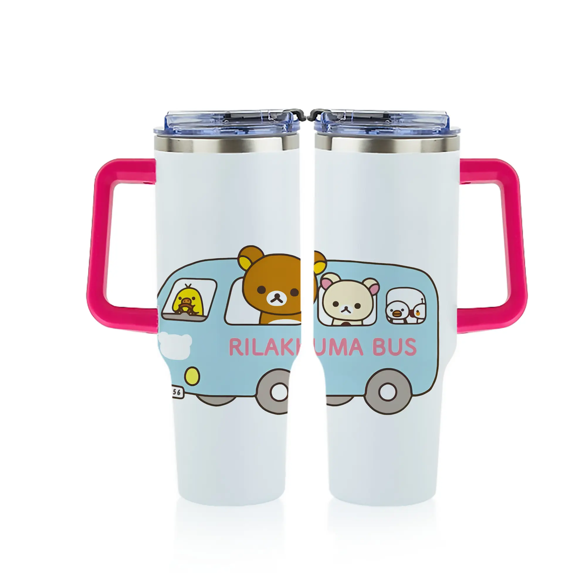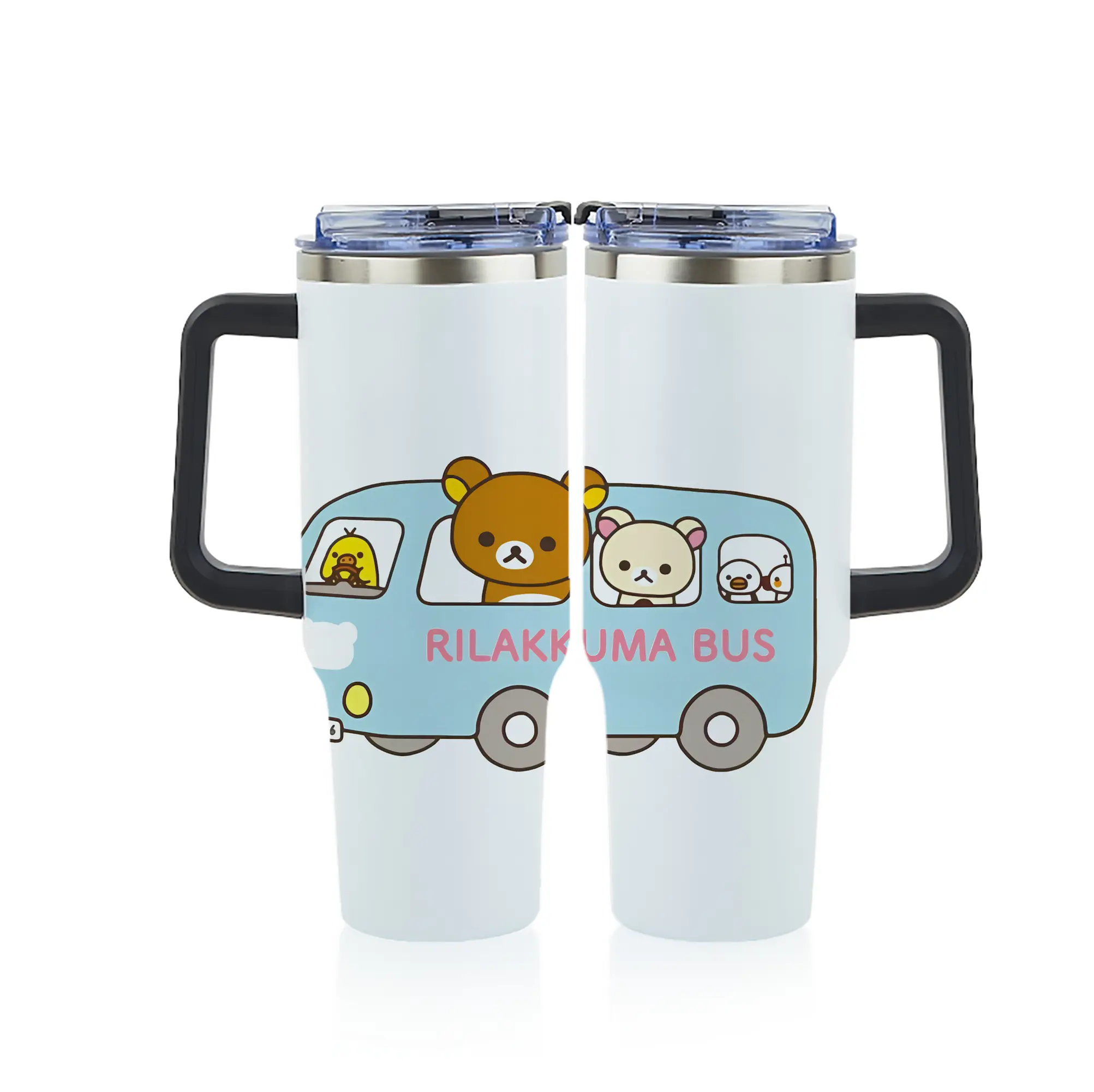 リラックマ (Rilakkuma) グッズ リラックマ (Rilakkuma) - 1200mL フルプリント車用タンブラー ・ 304ステンレス 内側 ・ 201ステンレス 外側 ・ 保温 保冷 ・ 通勤 ドライブ アウトドア用