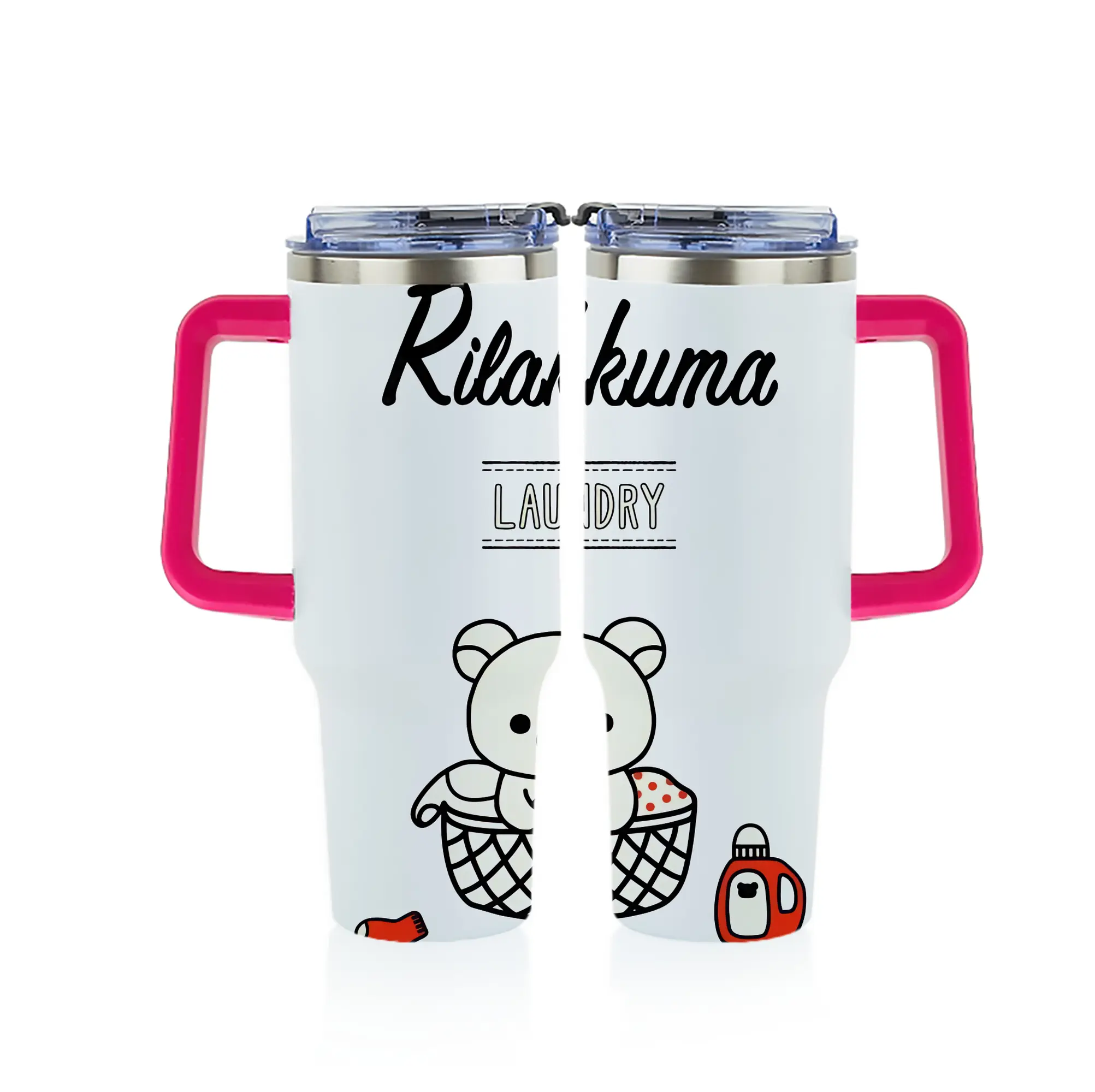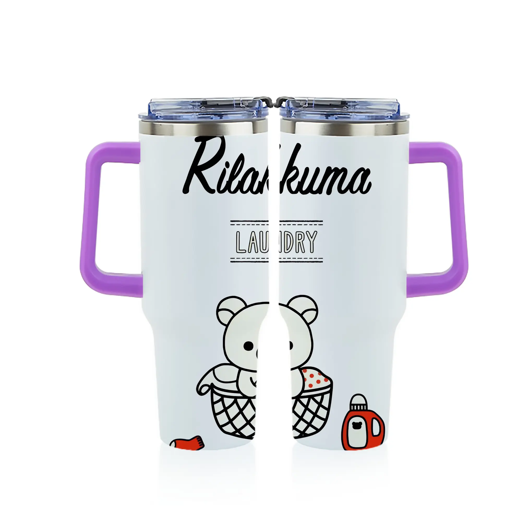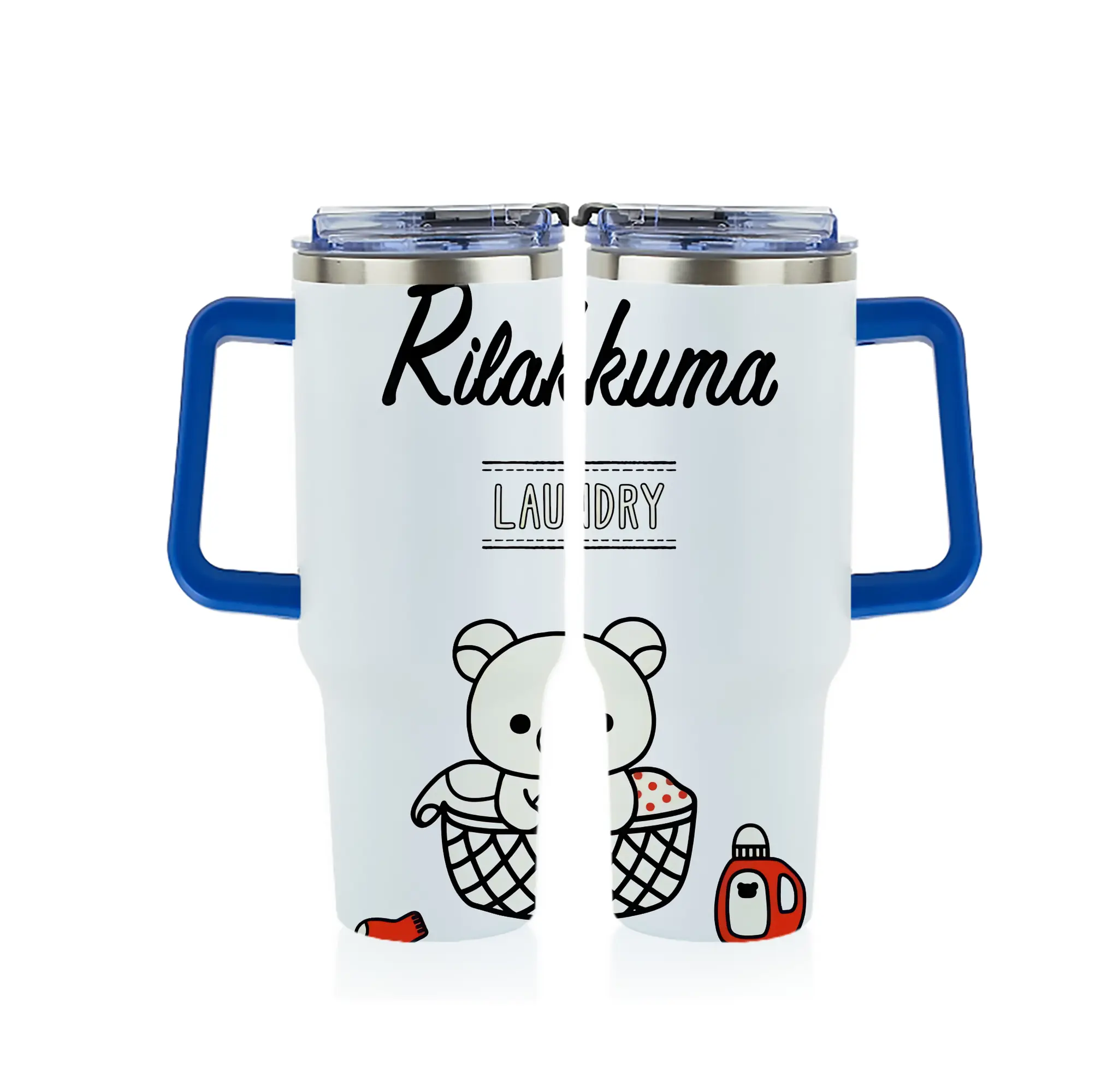 リラックマ (Rilakkuma) グッズ リラックマ (Rilakkuma) - 1200mL フルプリント車用タンブラー ・ 304ステンレス 内側 ・ 201ステンレス 外側 ・ 保温 保冷 ・ 通勤 ドライブ アウトドア用