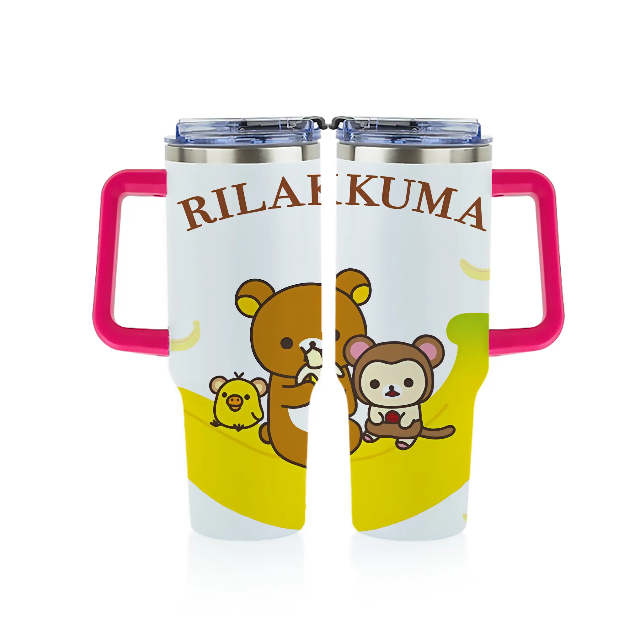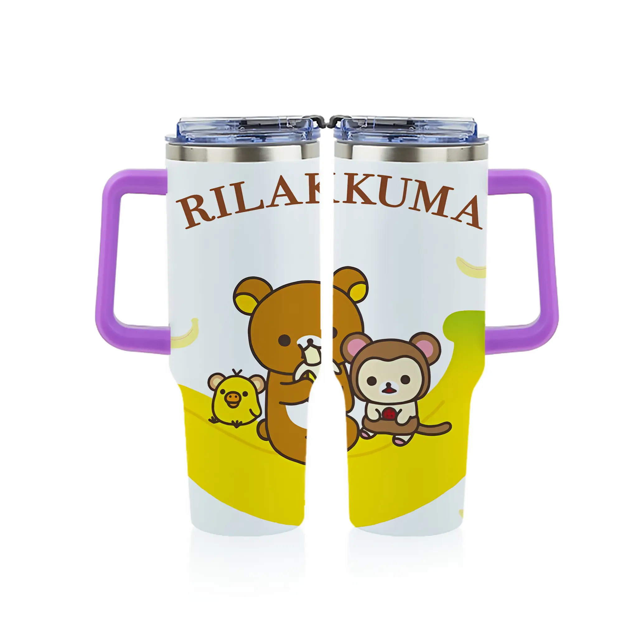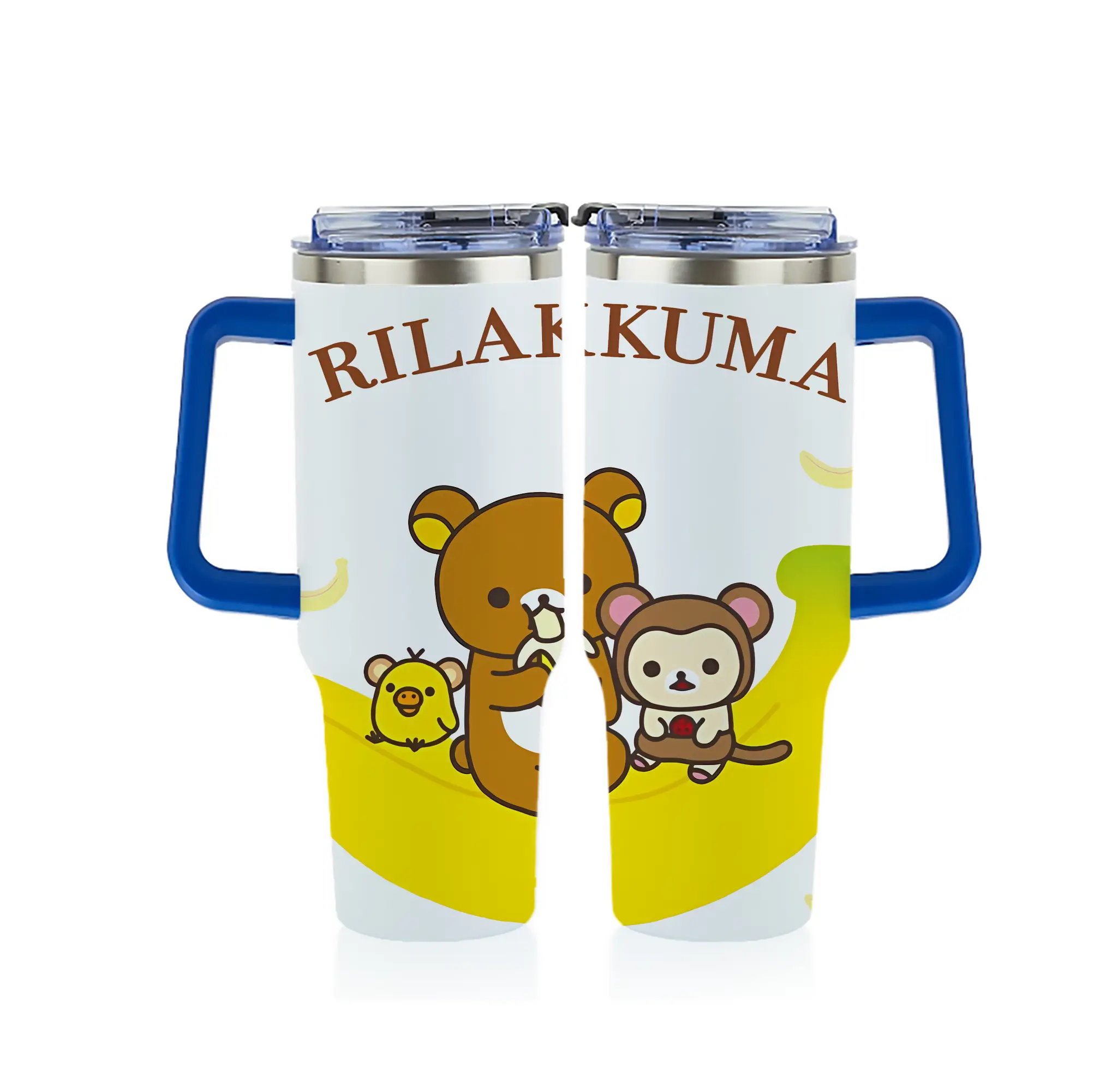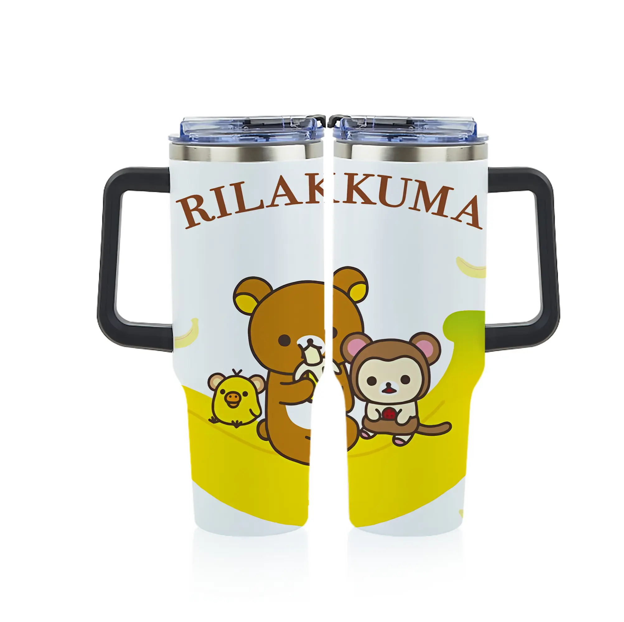 リラックマ (Rilakkuma) グッズ リラックマ (Rilakkuma) - 1200mL フルプリント車用タンブラー ・ 304ステンレス 内側 ・ 201ステンレス 外側 ・ 保温 保冷 ・ 通勤 ドライブ アウトドア用