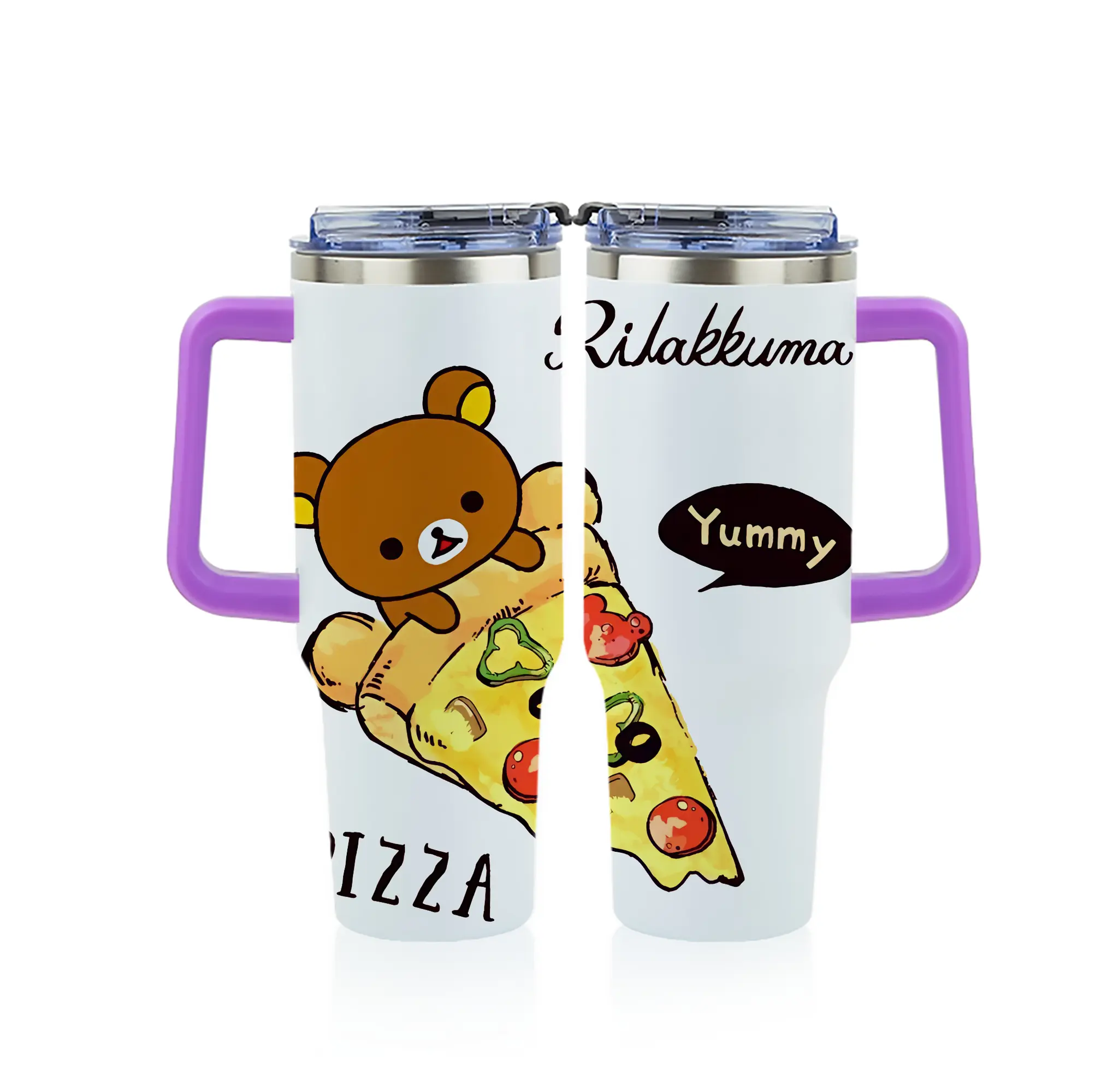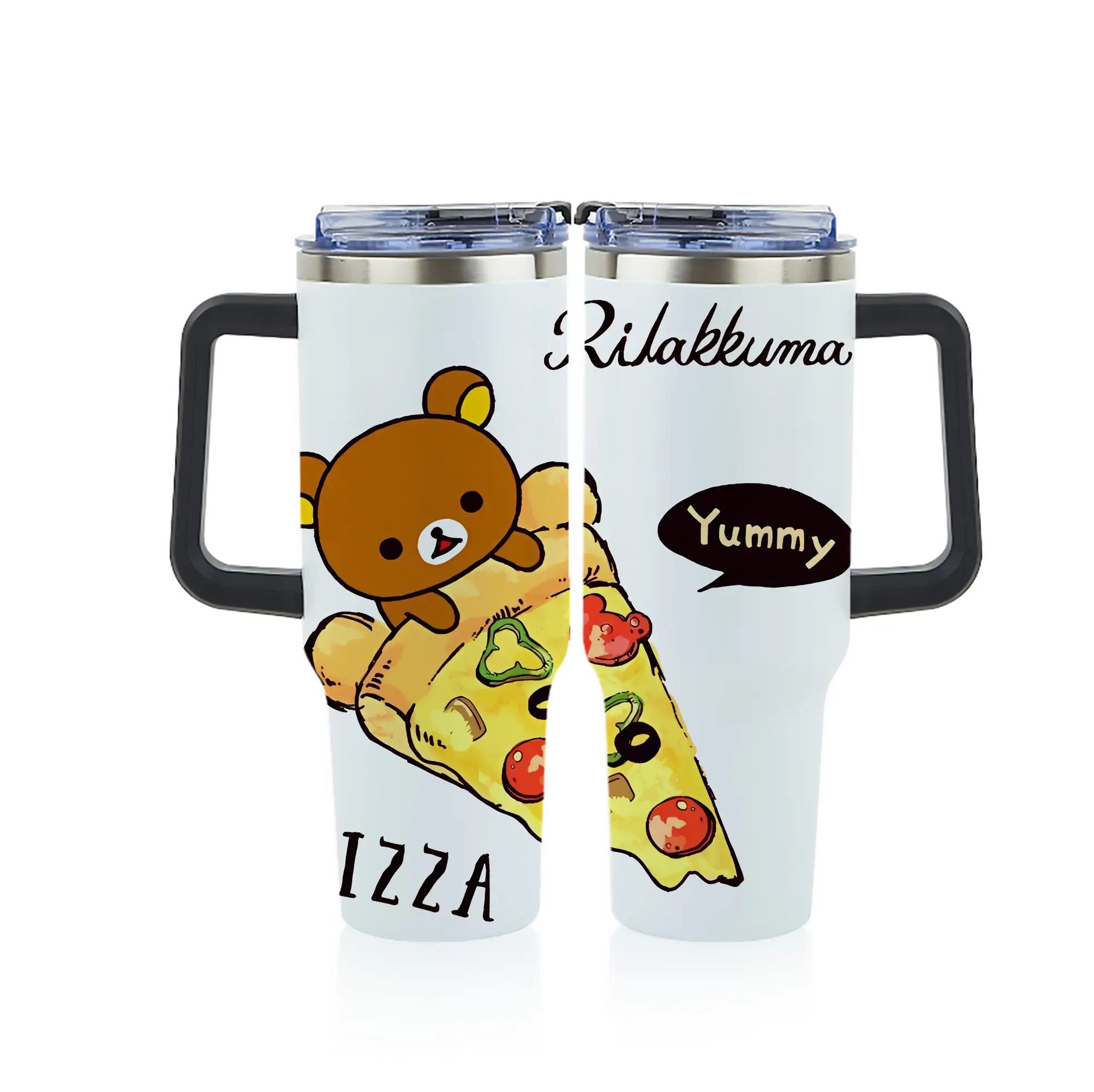リラックマ (Rilakkuma) グッズ リラックマ (Rilakkuma) - 1200mL フルプリント車用タンブラー ・ 304ステンレス 内側 ・ 201ステンレス 外側 ・ 保温 保冷 ・ 通勤 ドライブ アウトドア用