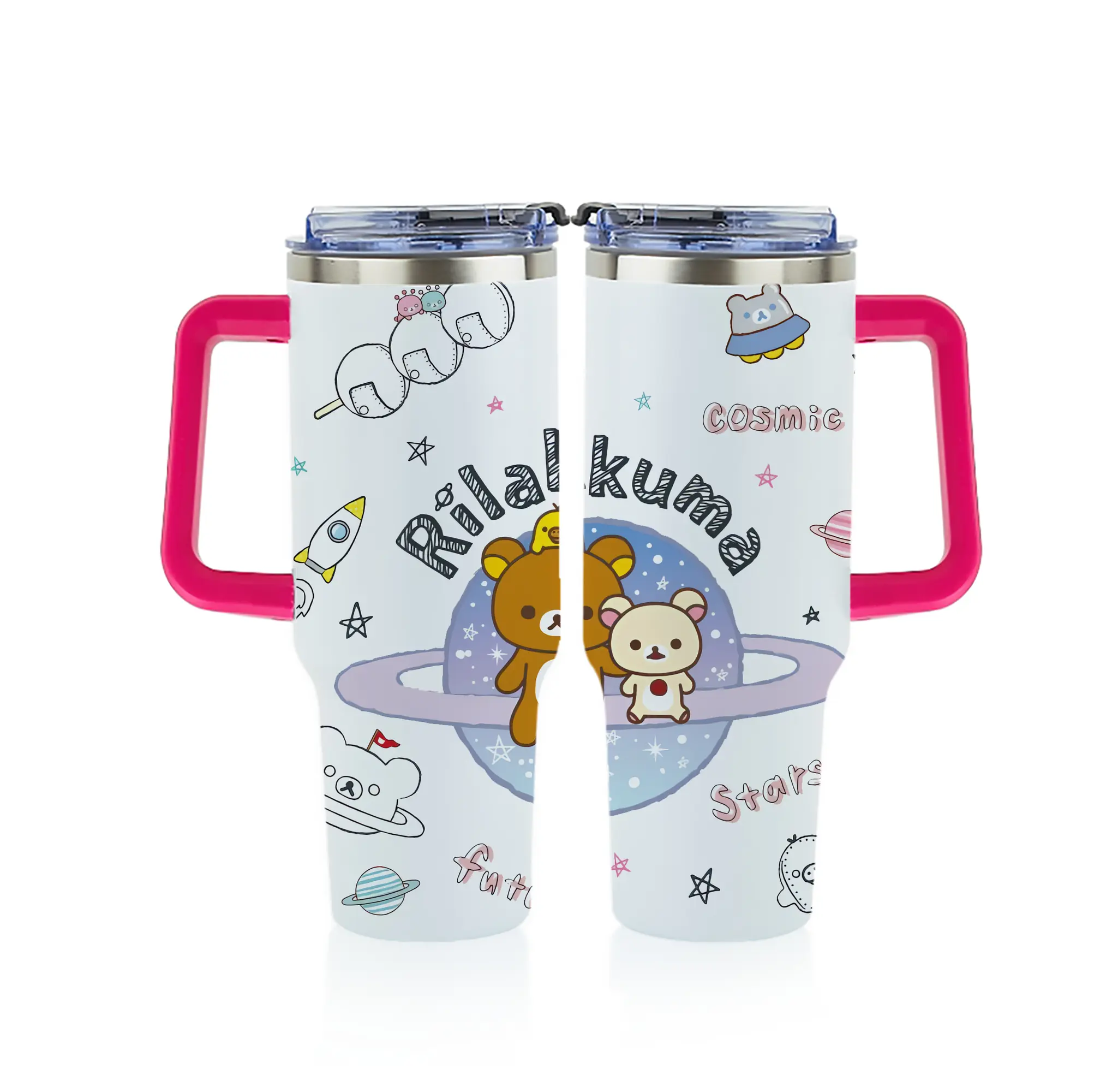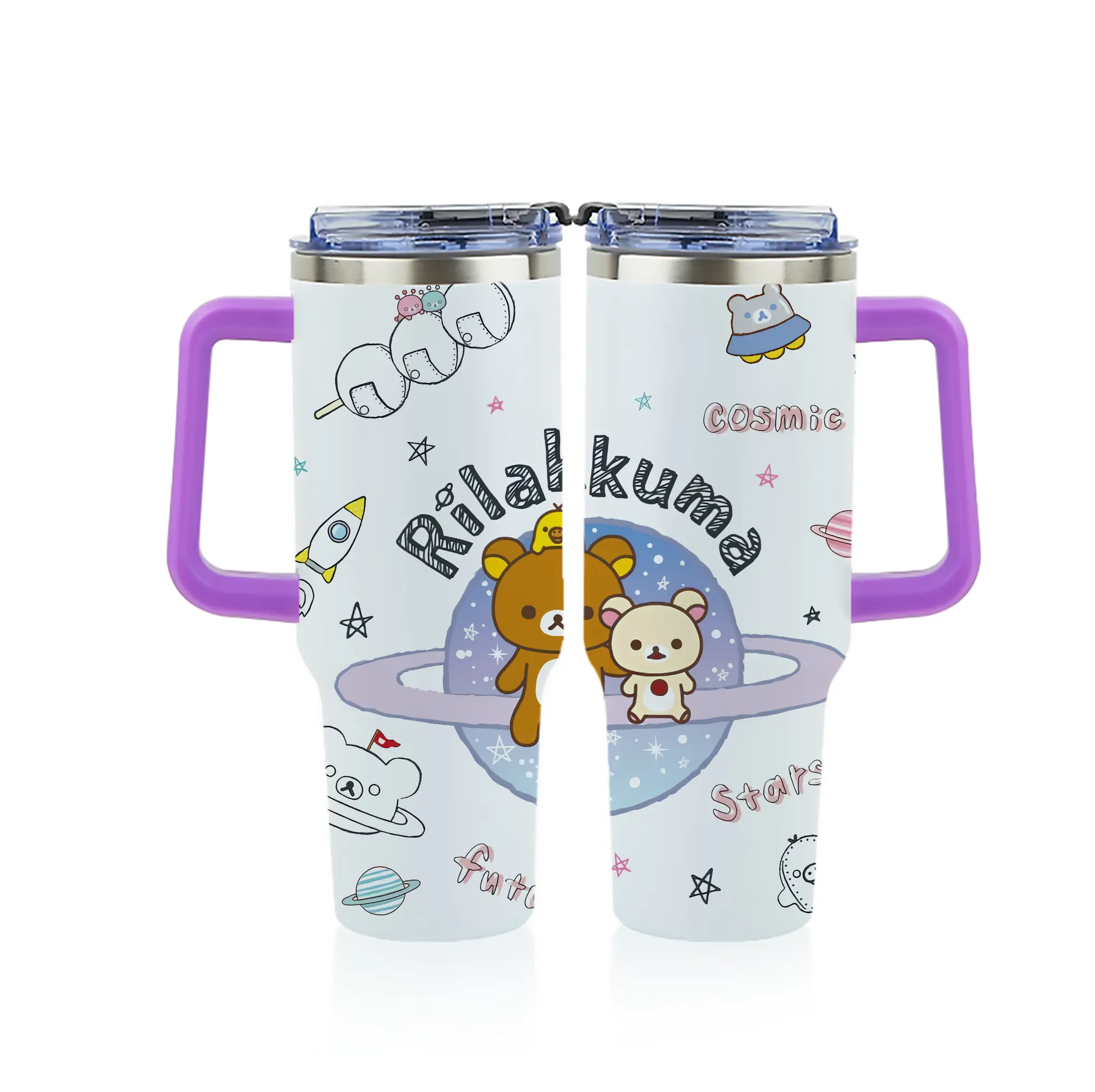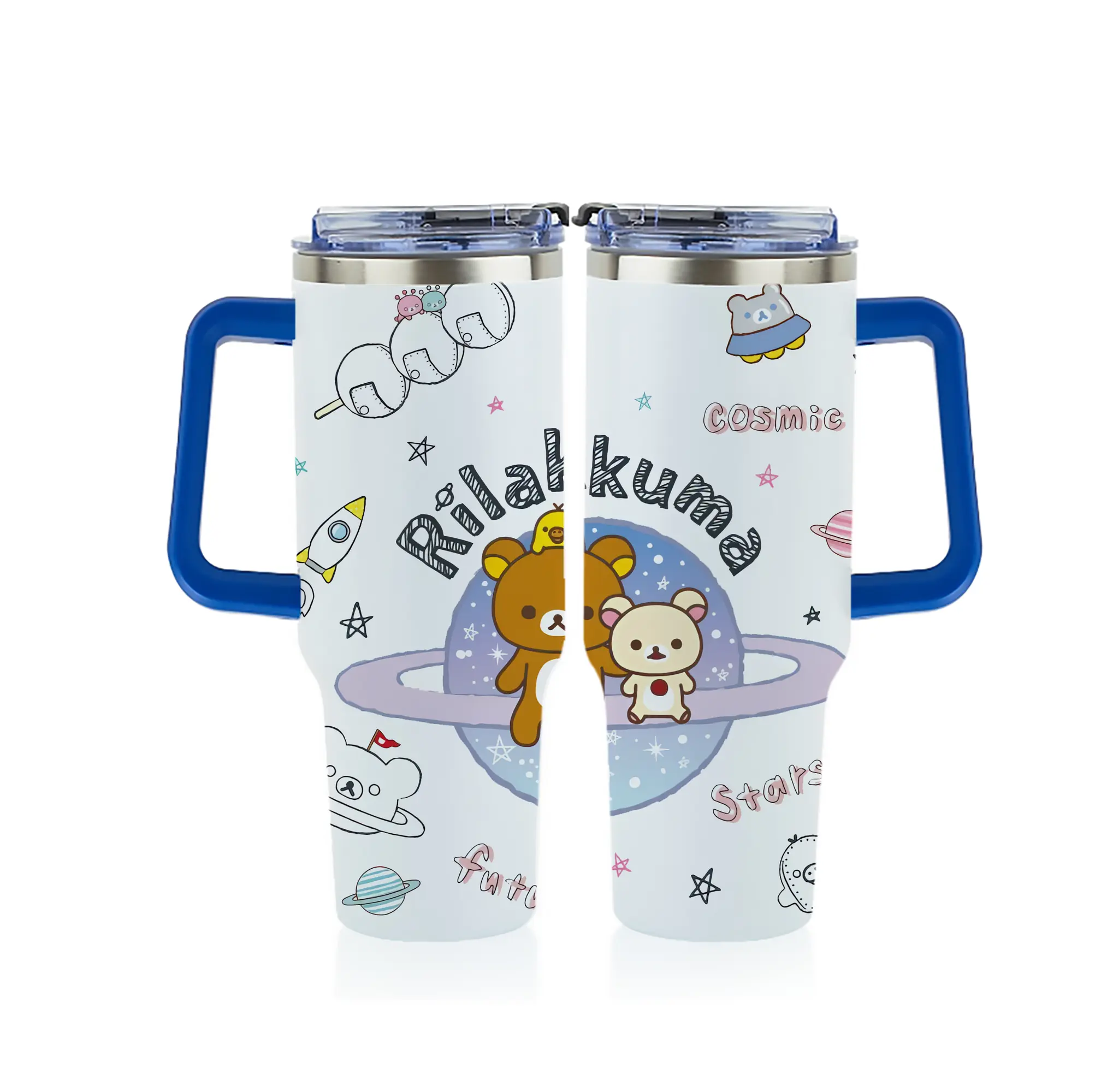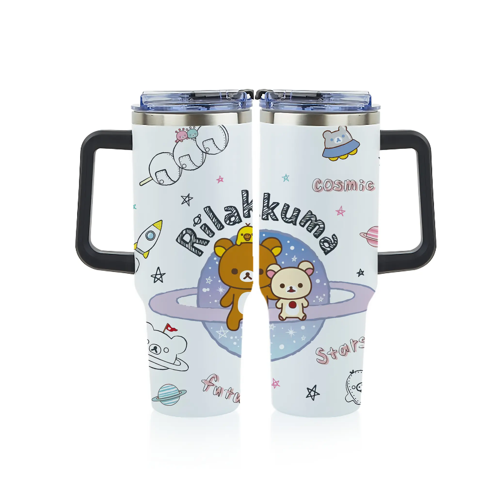 リラックマ (Rilakkuma) グッズ リラックマ (Rilakkuma) - 1200mL フルプリント車用タンブラー ・ 304ステンレス 内側 ・ 201ステンレス 外側 ・ 保温 保冷 ・ 通勤 ドライブ アウトドア用