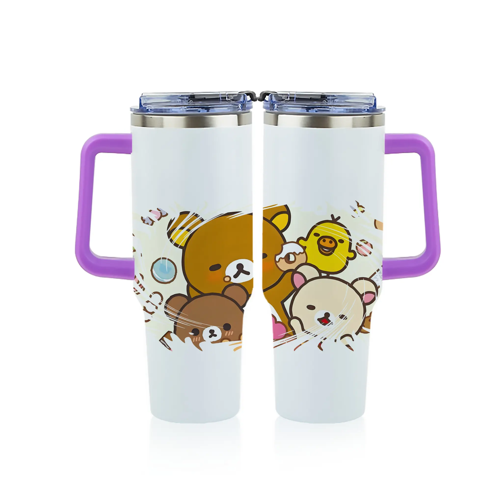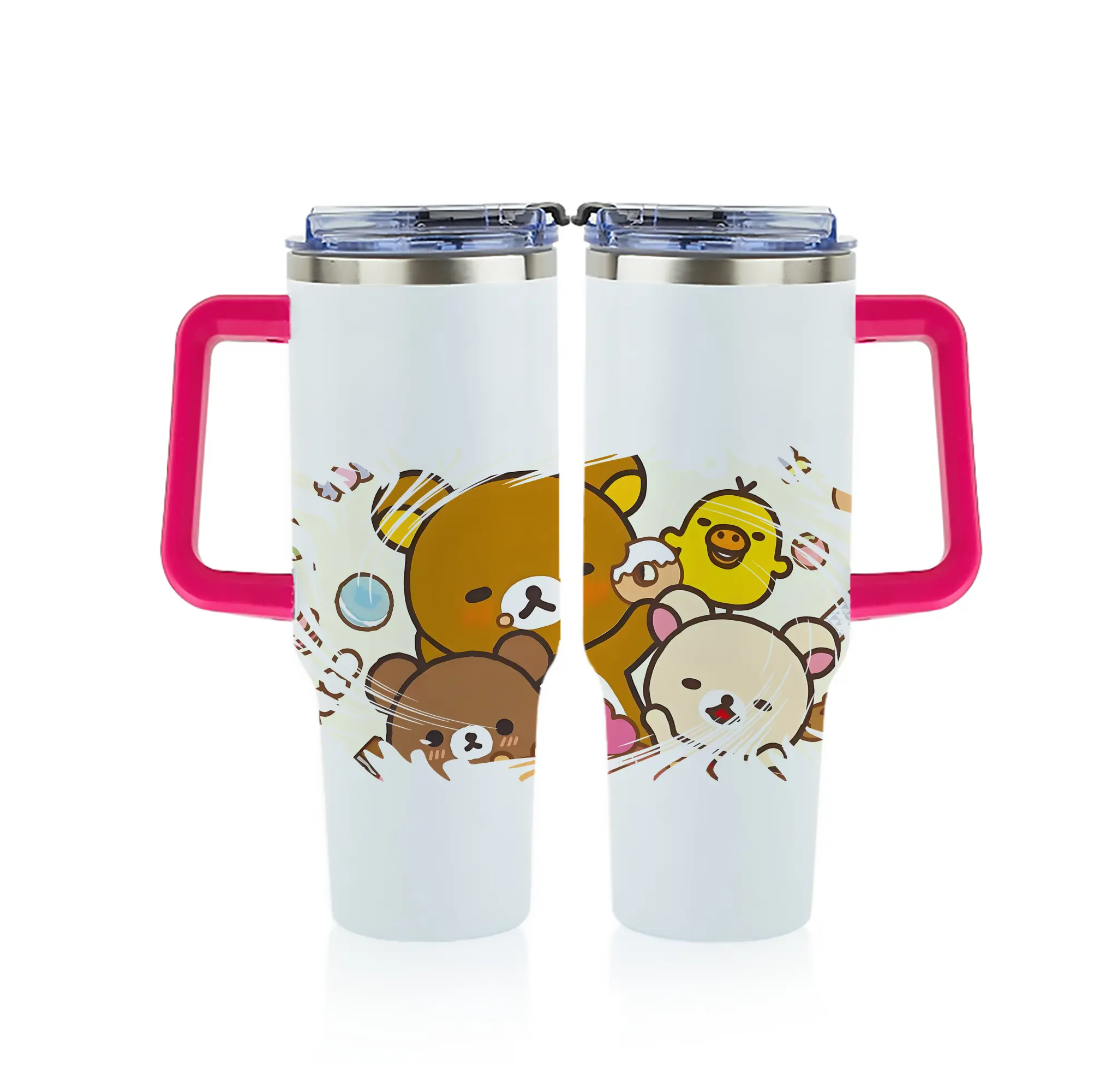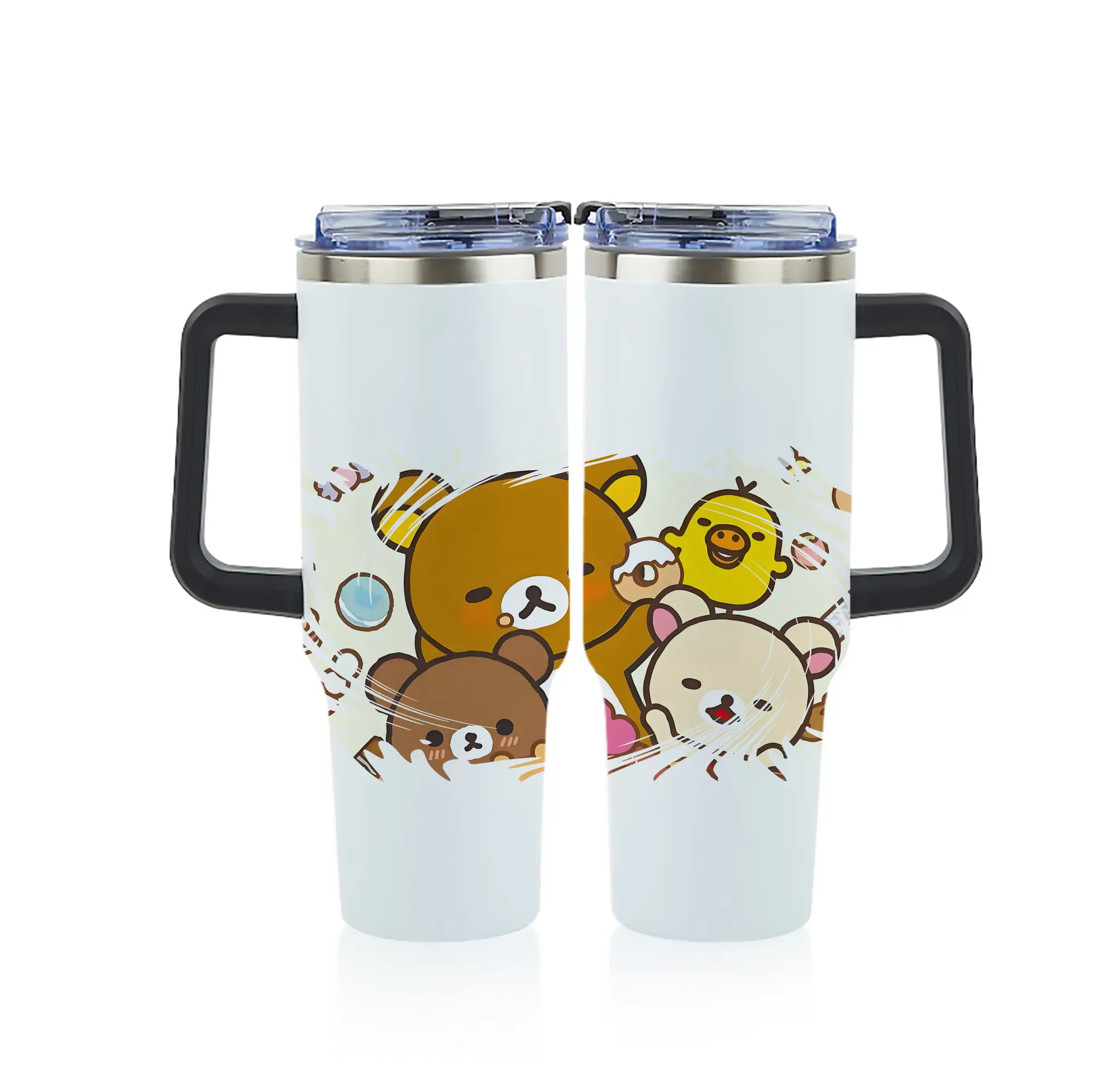 リラックマ (Rilakkuma) グッズ リラックマ (Rilakkuma) - 1200mL フルプリント車用タンブラー ・ 304ステンレス 内側 ・ 201ステンレス 外側 ・ 保温 保冷 ・ 通勤 ドライブ アウトドア用