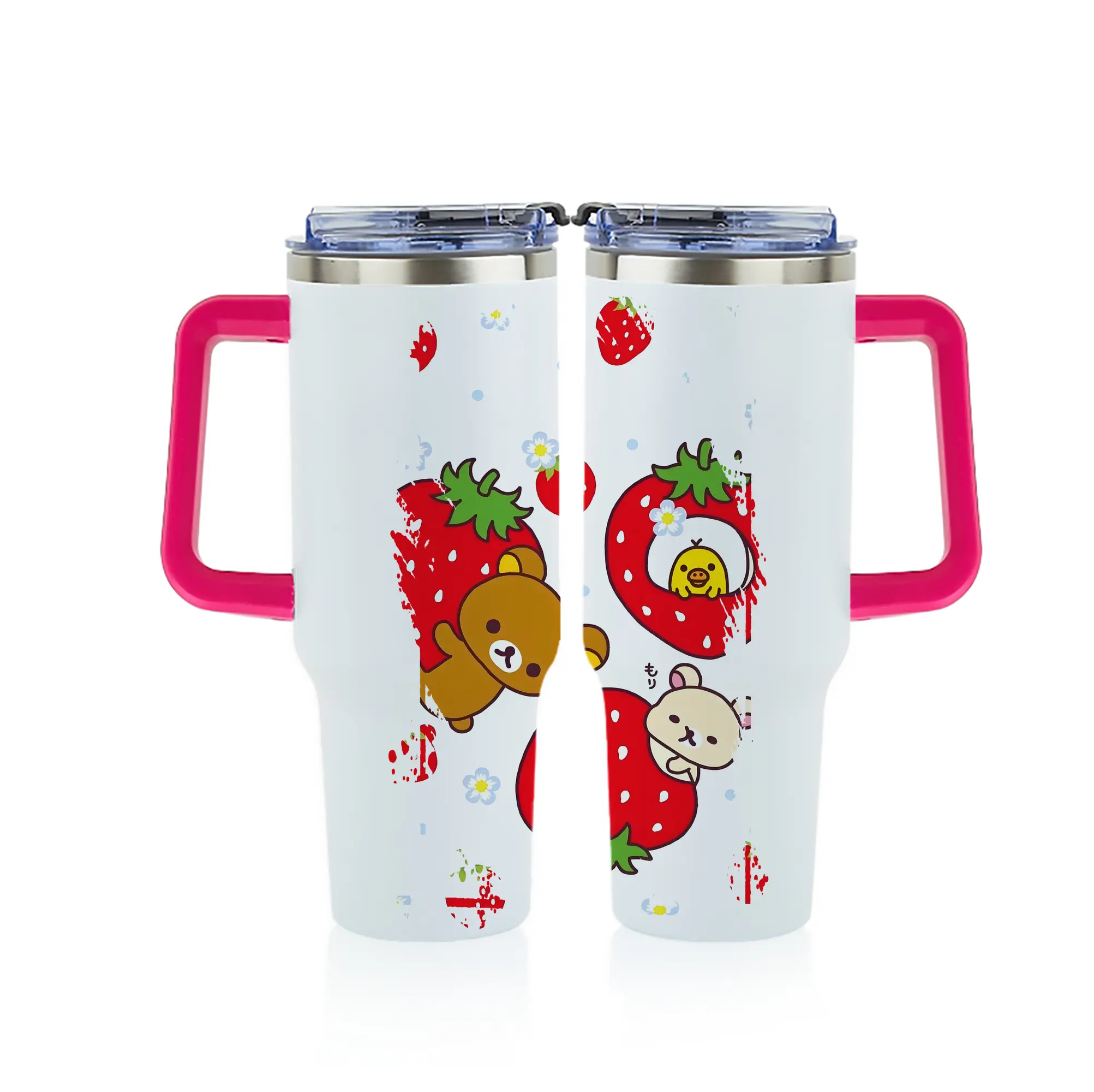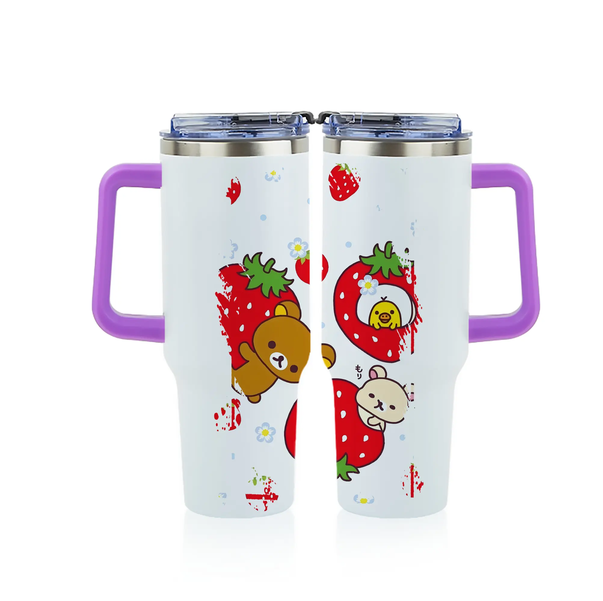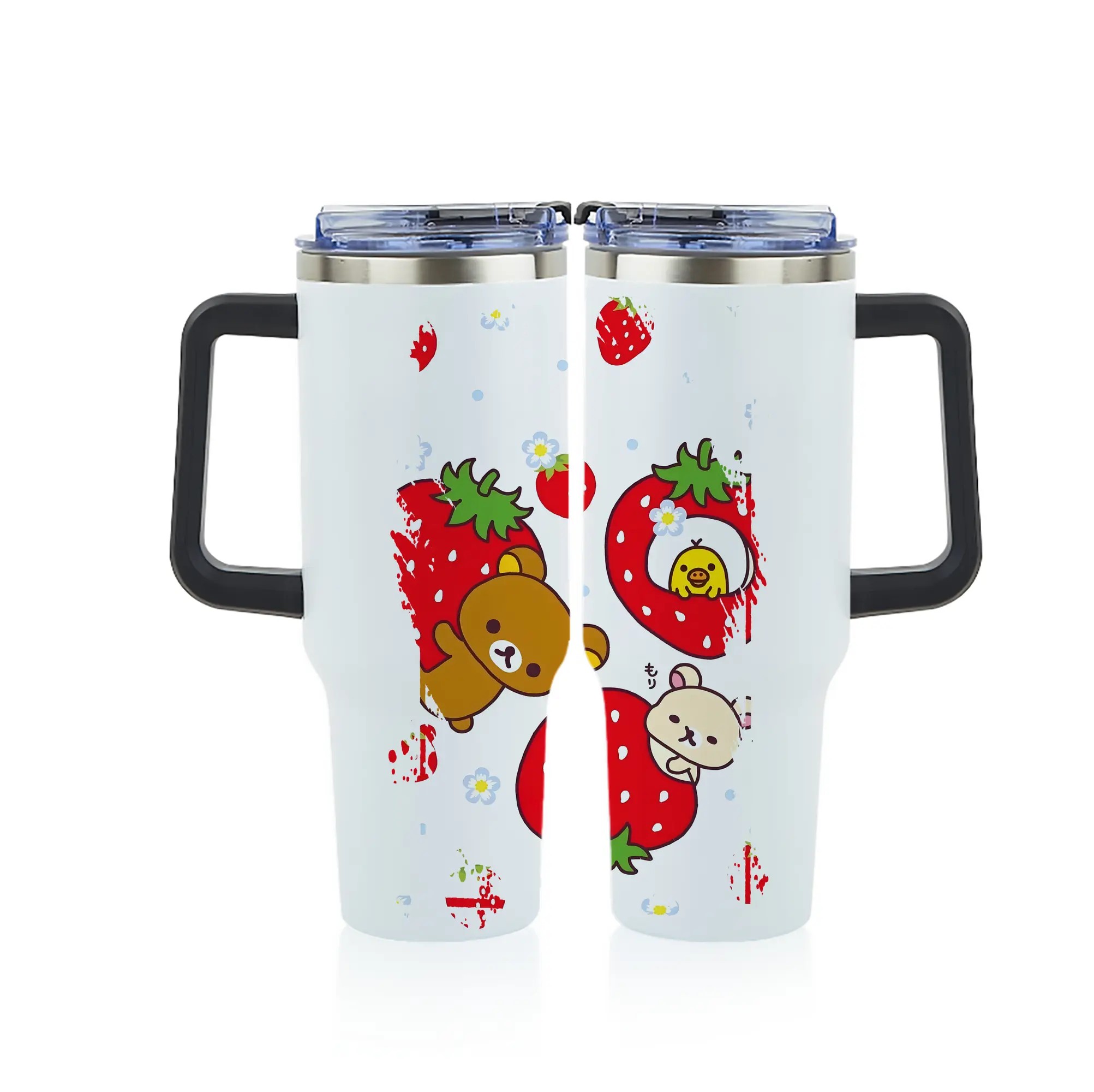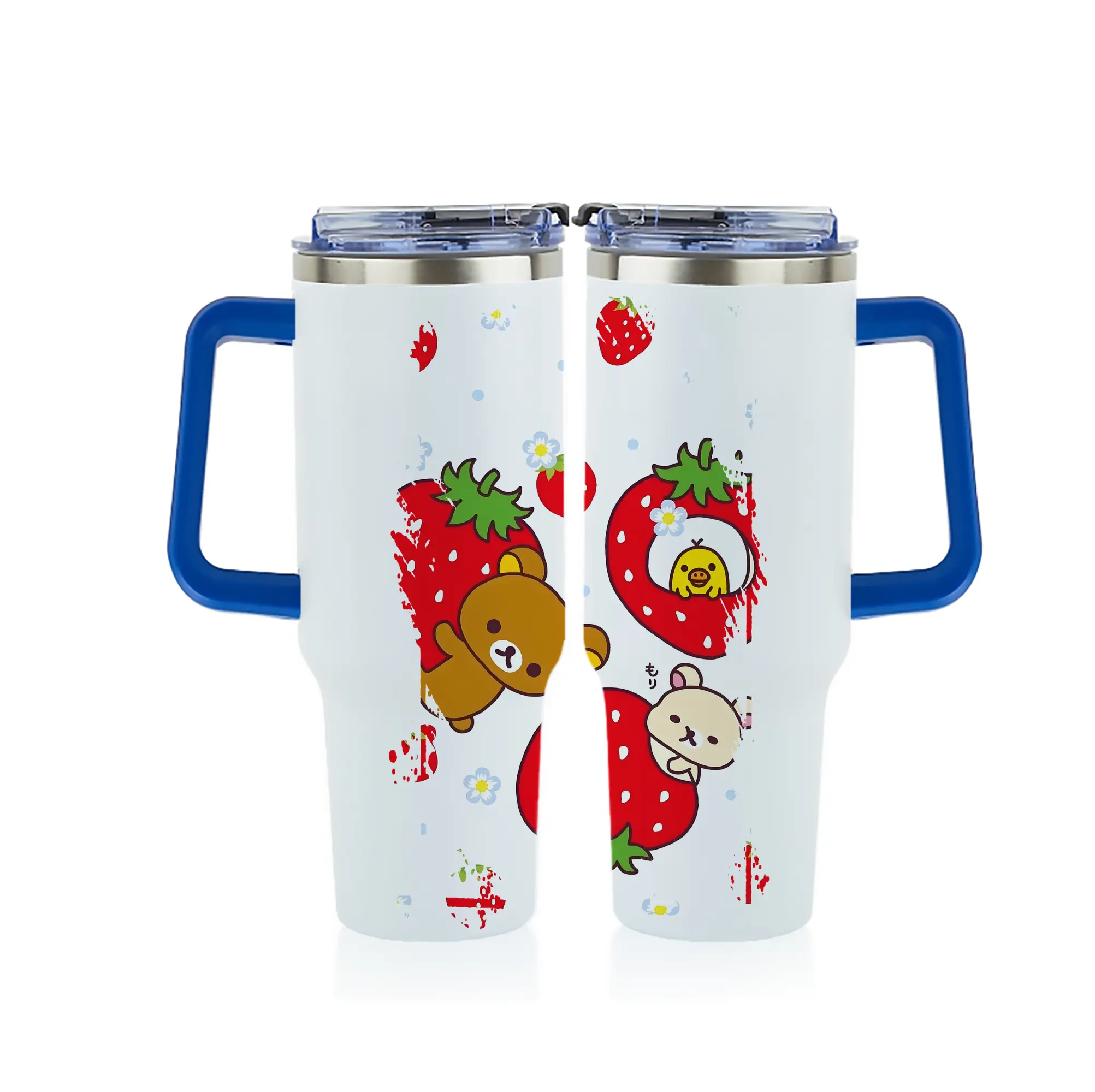 リラックマ (Rilakkuma) グッズ リラックマ (Rilakkuma) - 1200mL フルプリント車用タンブラー ・ 304ステンレス 内側 ・ 201ステンレス 外側 ・ 保温 保冷 ・ 通勤 ドライブ アウトドア用
