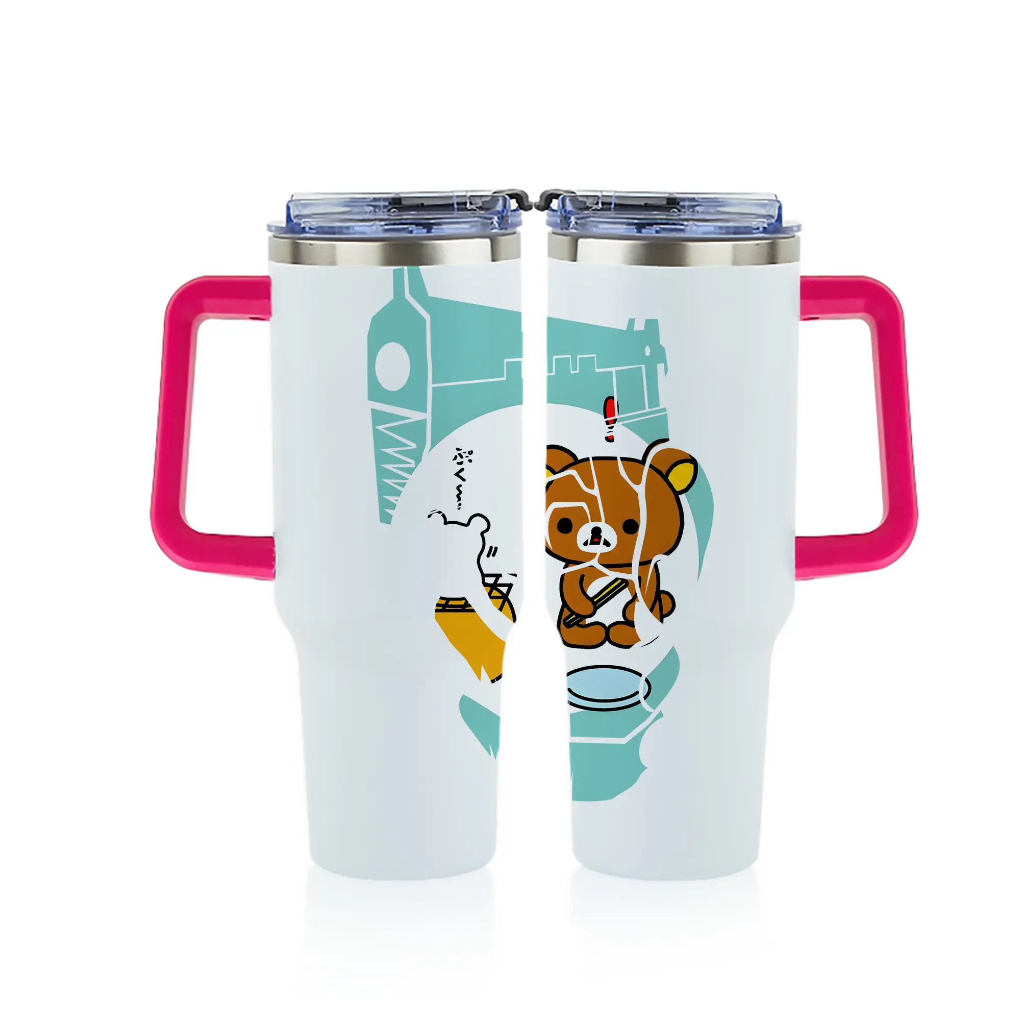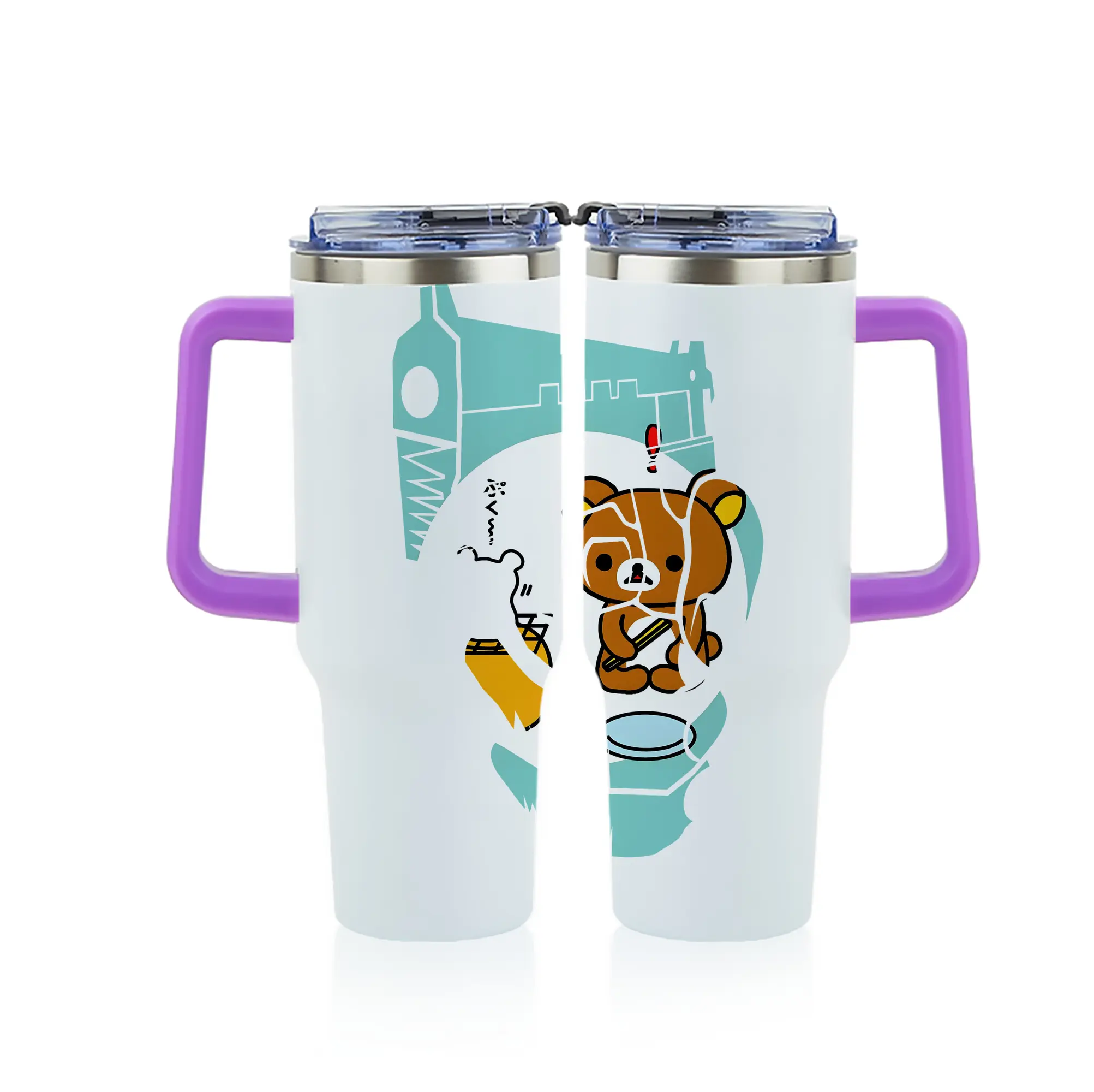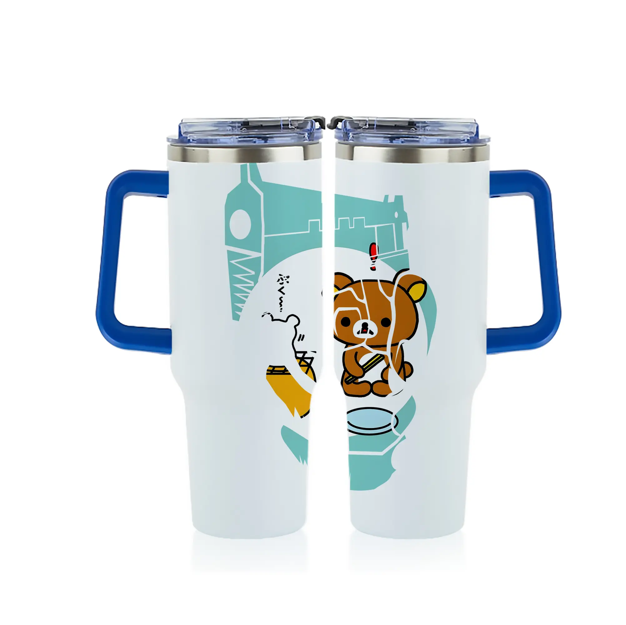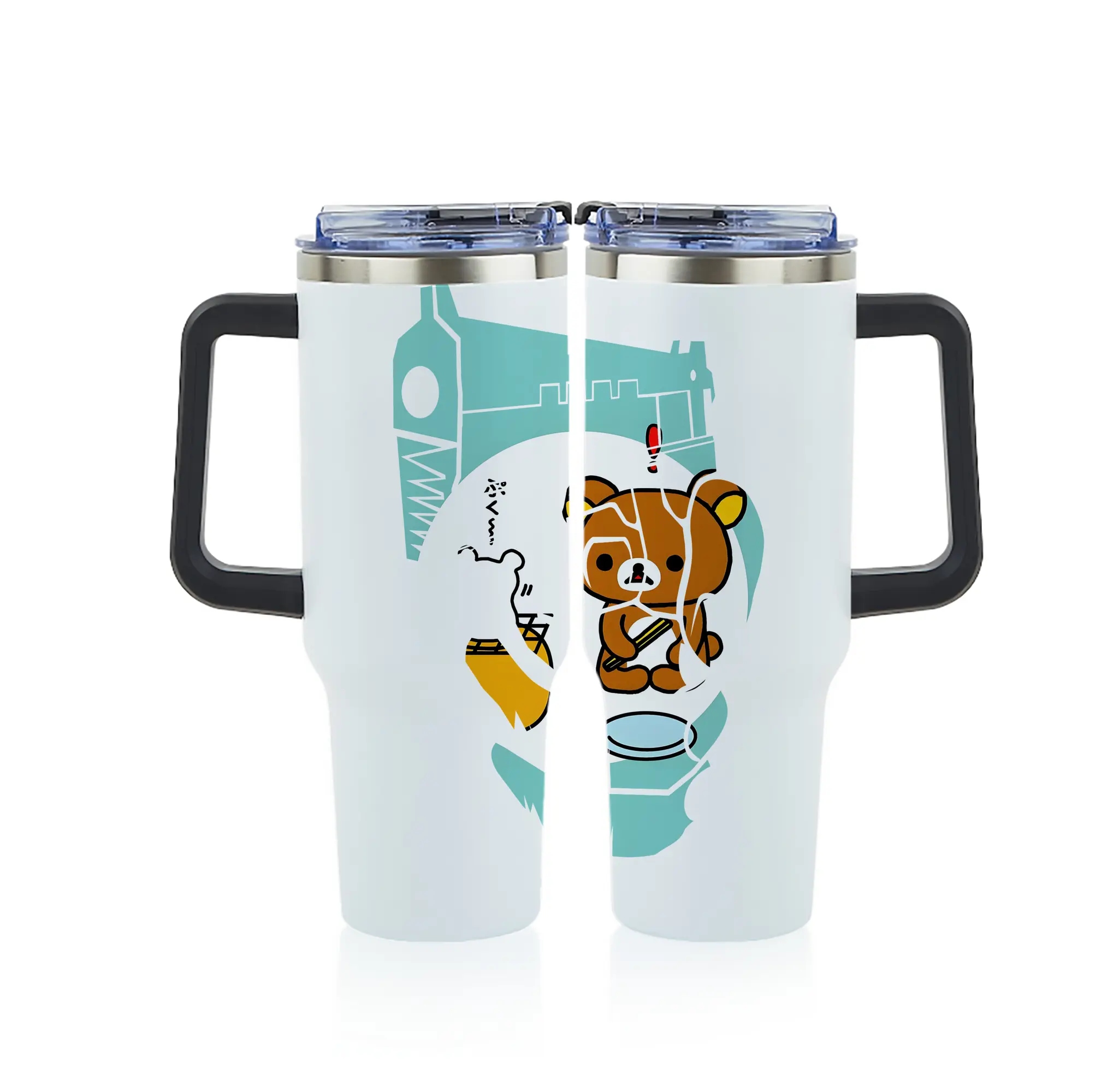 リラックマ (Rilakkuma) グッズ リラックマ (Rilakkuma) - 1200mL フルプリント車用タンブラー ・ 304ステンレス 内側 ・ 201ステンレス 外側 ・ 保温 保冷 ・ 通勤 ドライブ アウトドア用