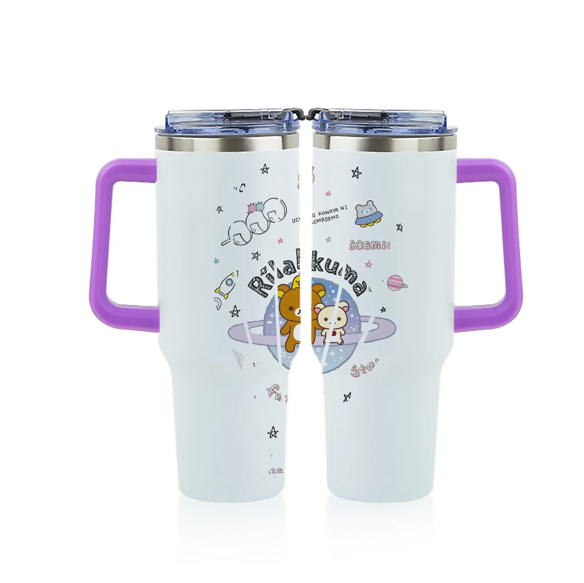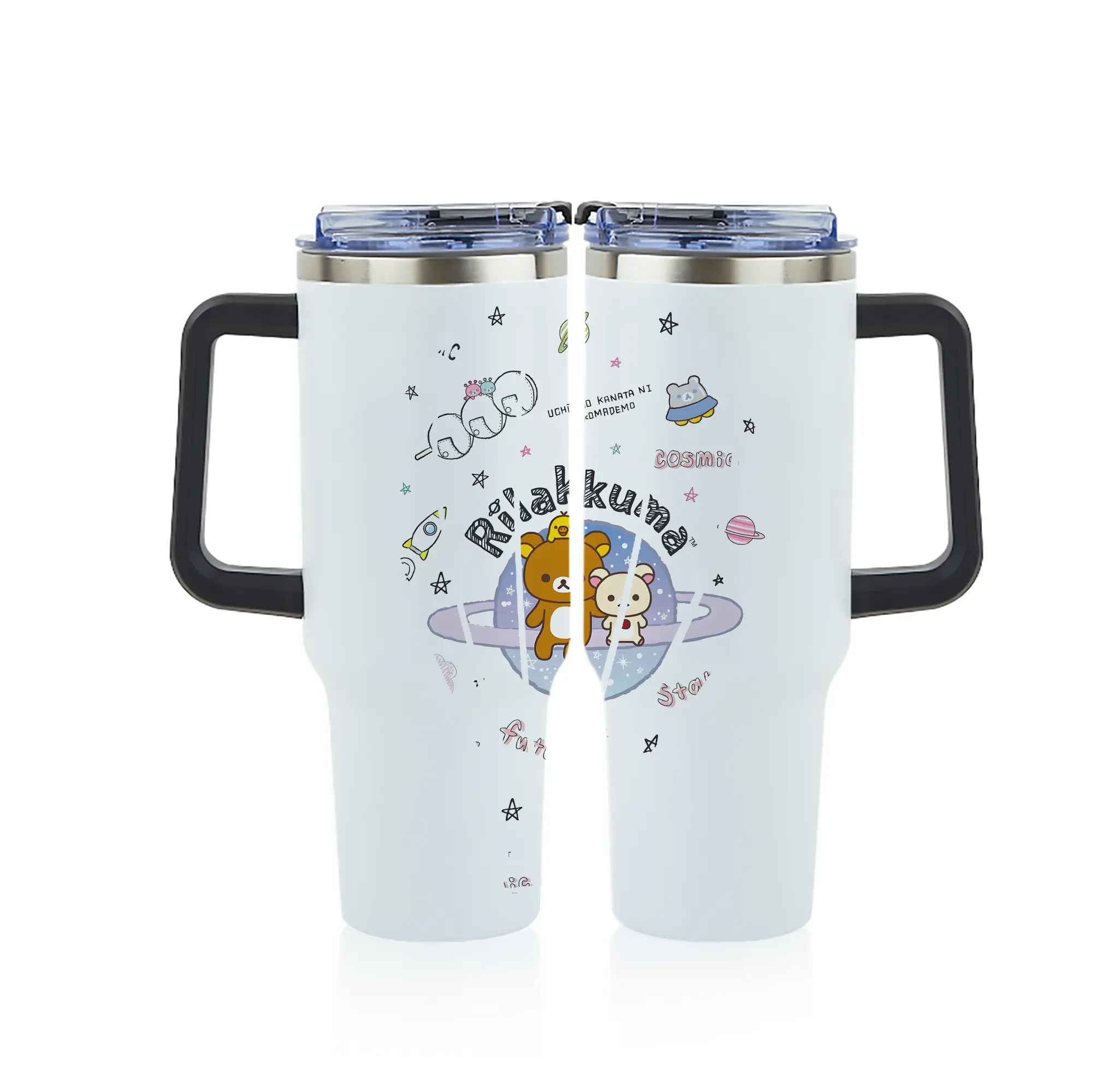 リラックマ (Rilakkuma) グッズ リラックマ (Rilakkuma) - 1200mL フルプリント車用タンブラー ・ 304ステンレス 内側 ・ 201ステンレス 外側 ・ 保温 保冷 ・ 通勤 ドライブ アウトドア用