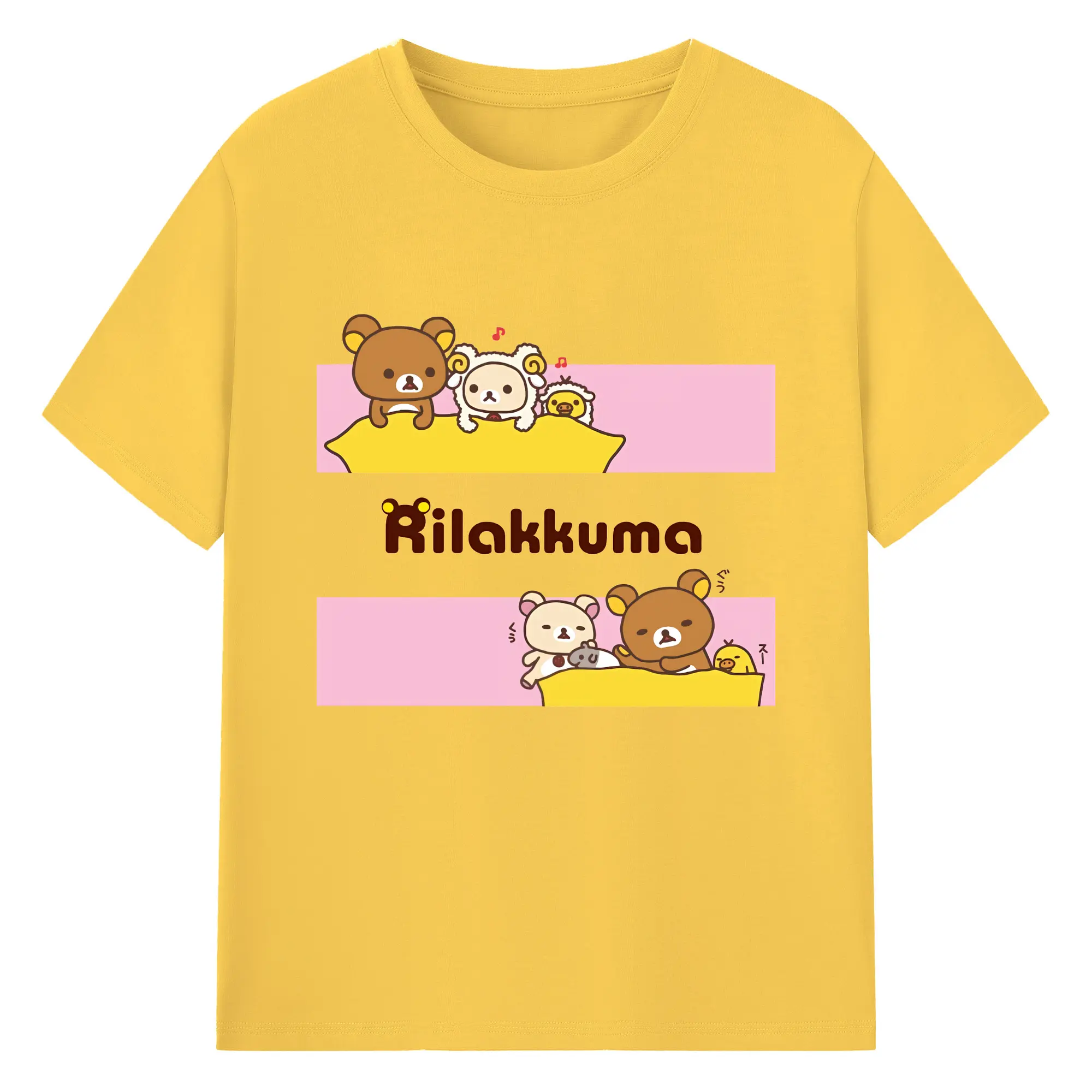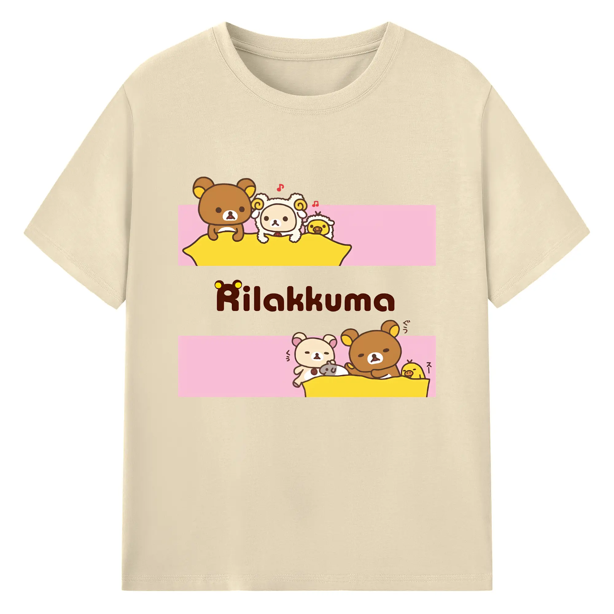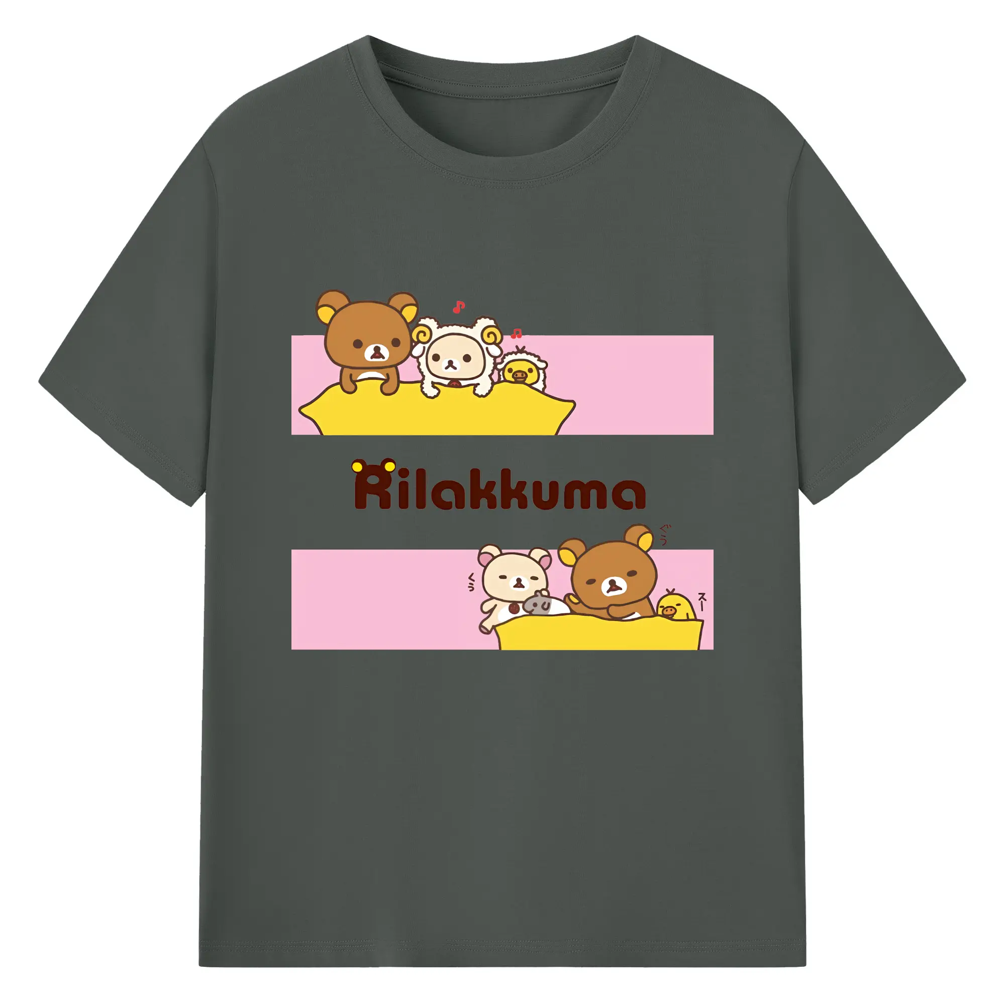 リラックマ (Rilakkuma) グッズ リラックマ (Rilakkuma) - 綿100% 半袖Tシャツ ・ バックプリント ・ 快適 通気性 ・ 日常使い 散歩 スポーツ用
