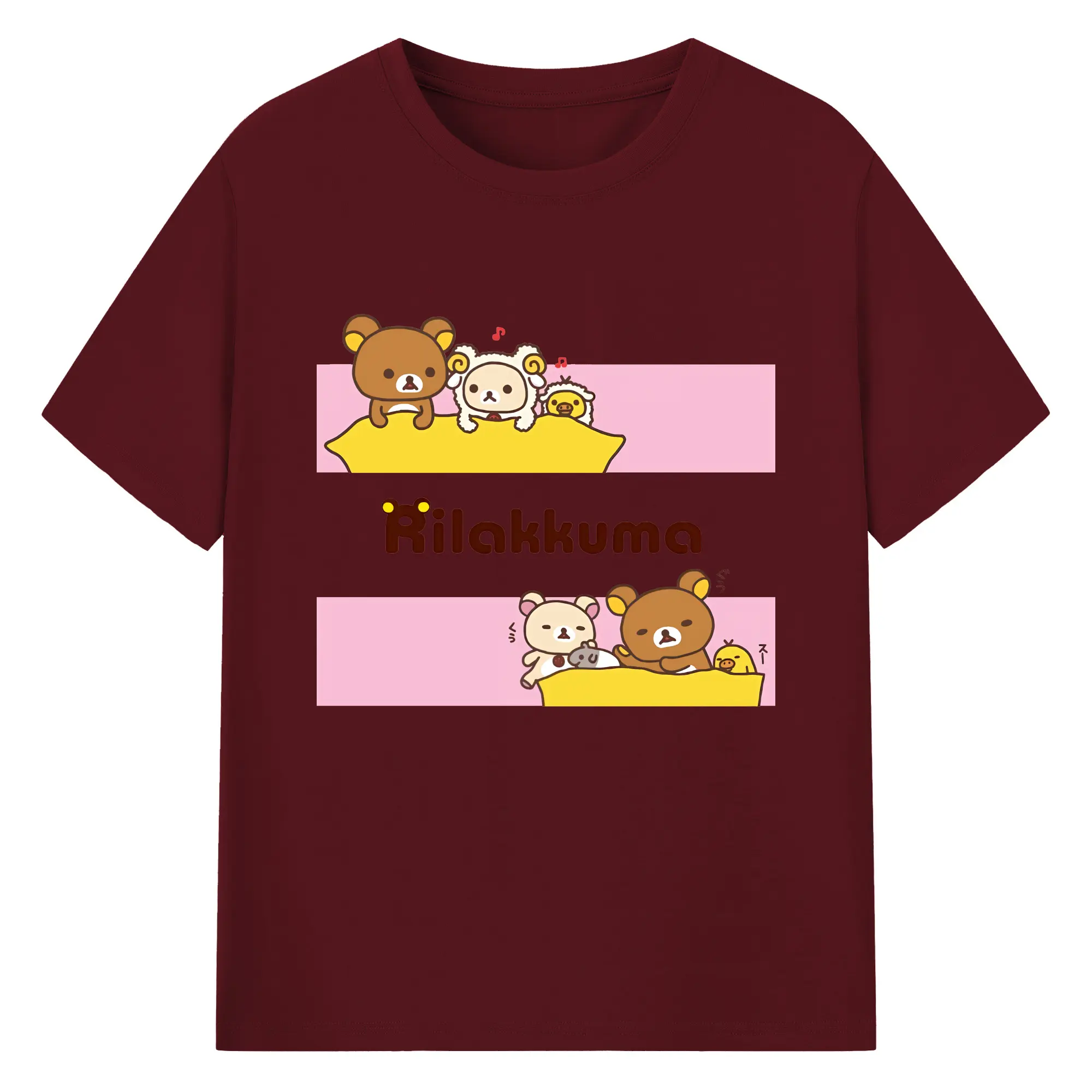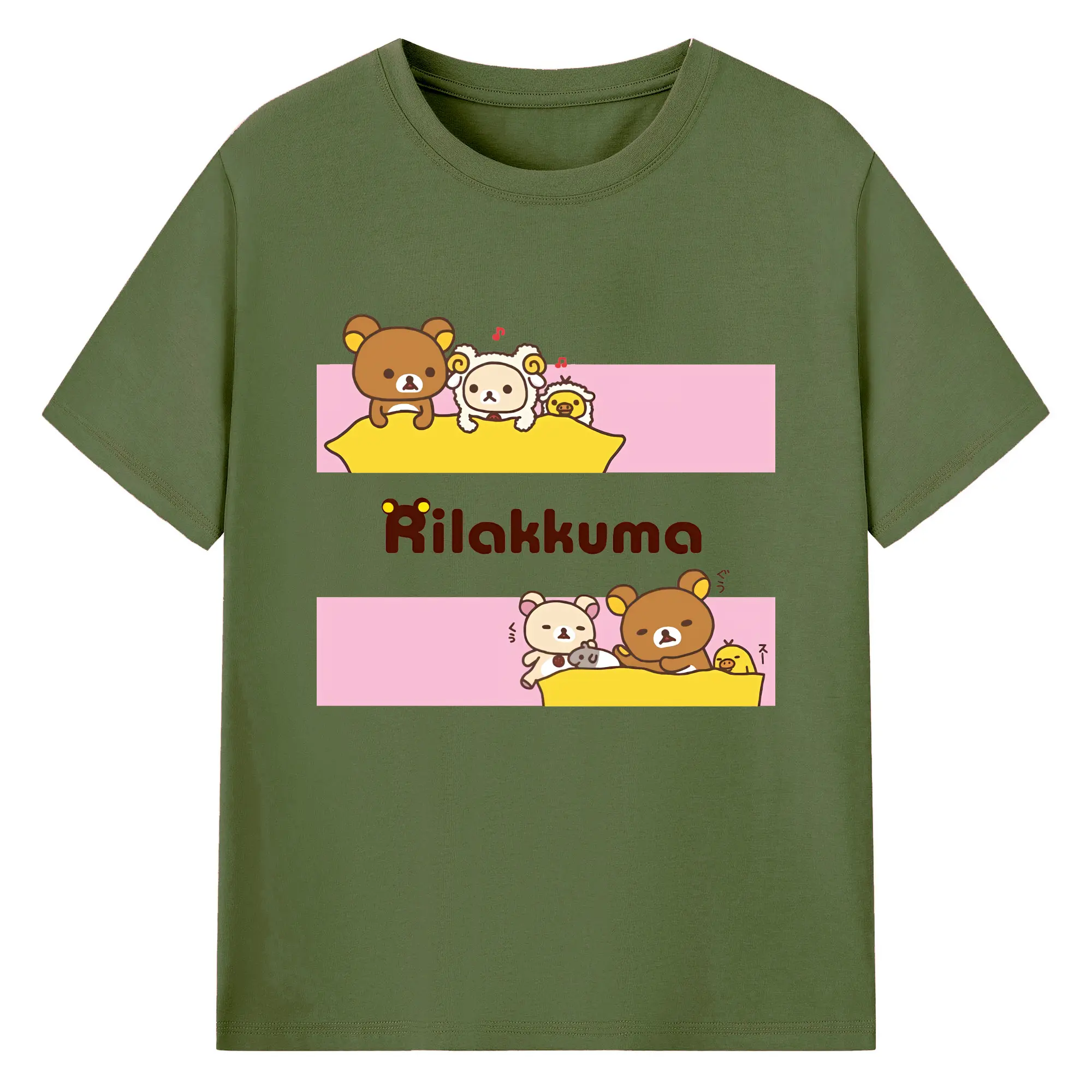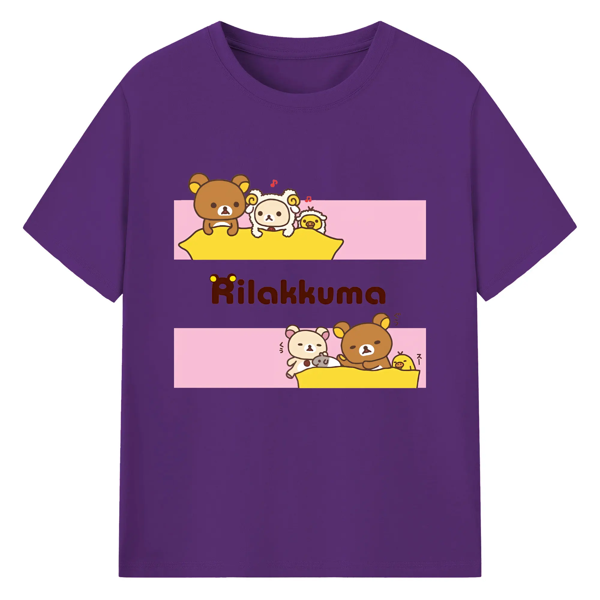 リラックマ (Rilakkuma) グッズ リラックマ (Rilakkuma) - 綿100% 半袖Tシャツ ・ バックプリント ・ 快適 通気性 ・ 日常使い 散歩 スポーツ用