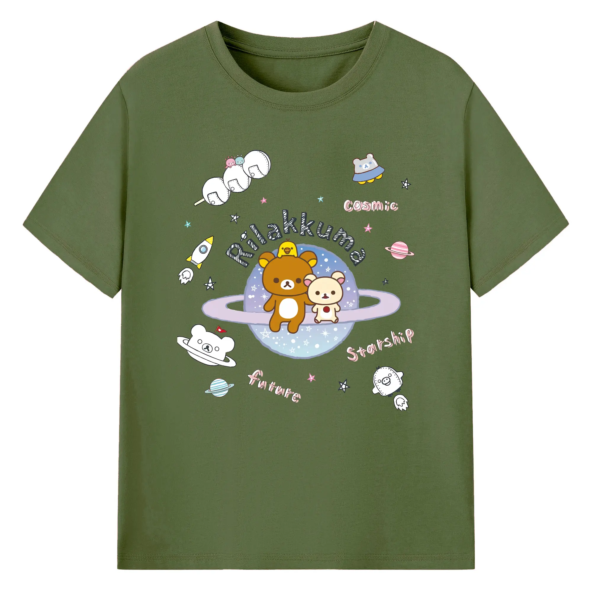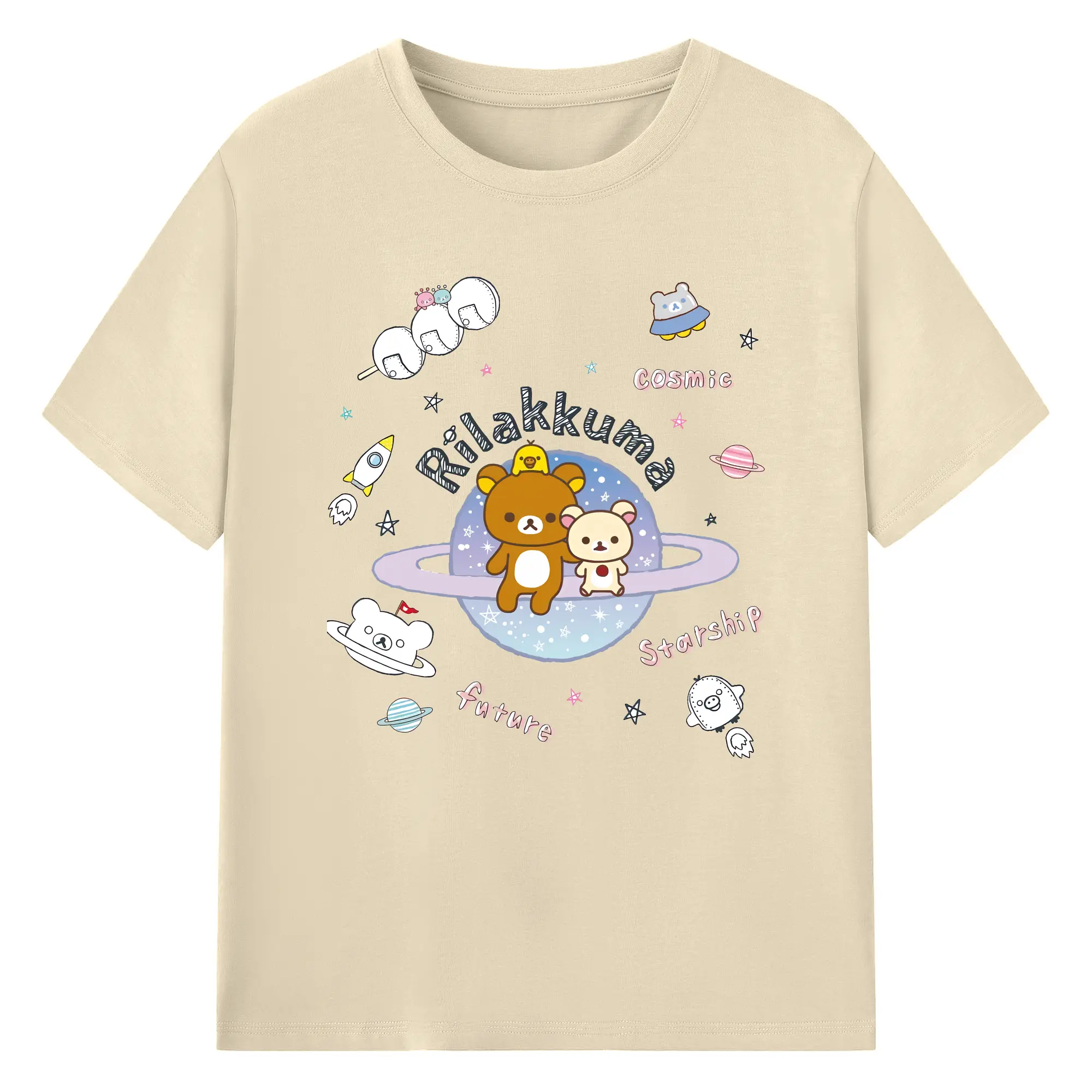 リラックマ (Rilakkuma) グッズ リラックマ (Rilakkuma) - 綿100% 半袖Tシャツ ・ バックプリント ・ 快適 通気性 ・ 日常使い 散歩 スポーツ用