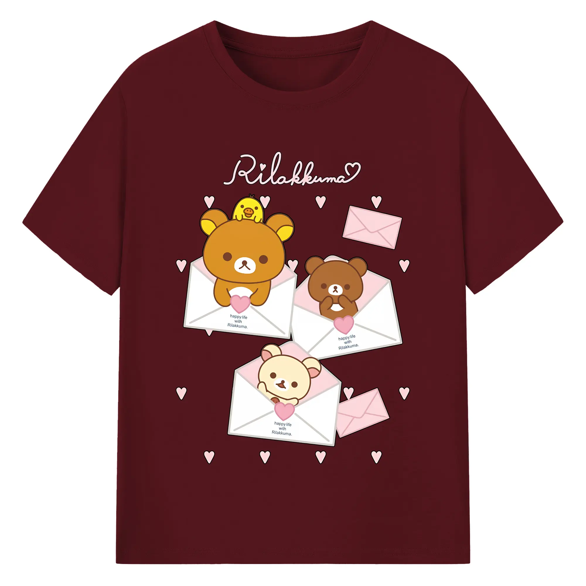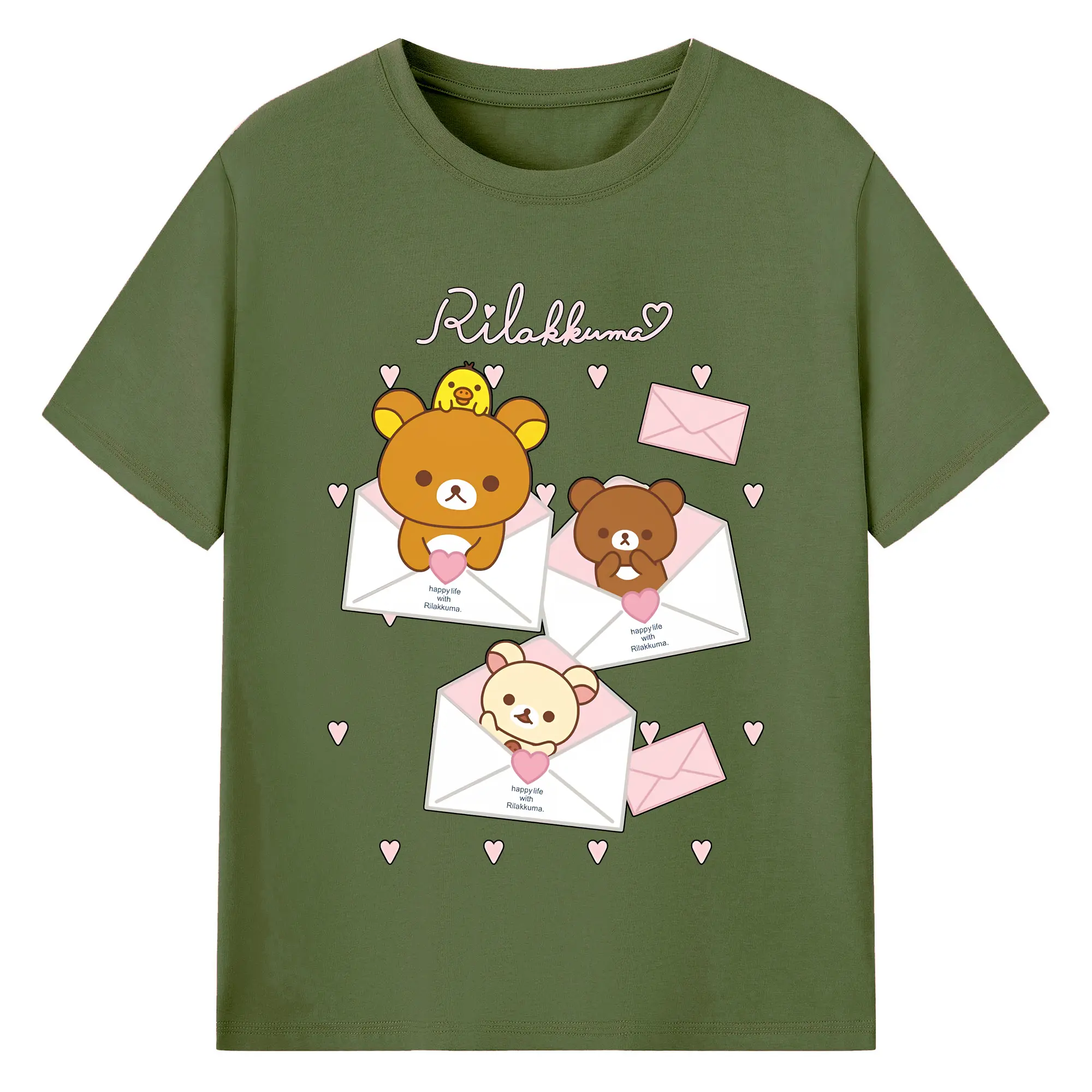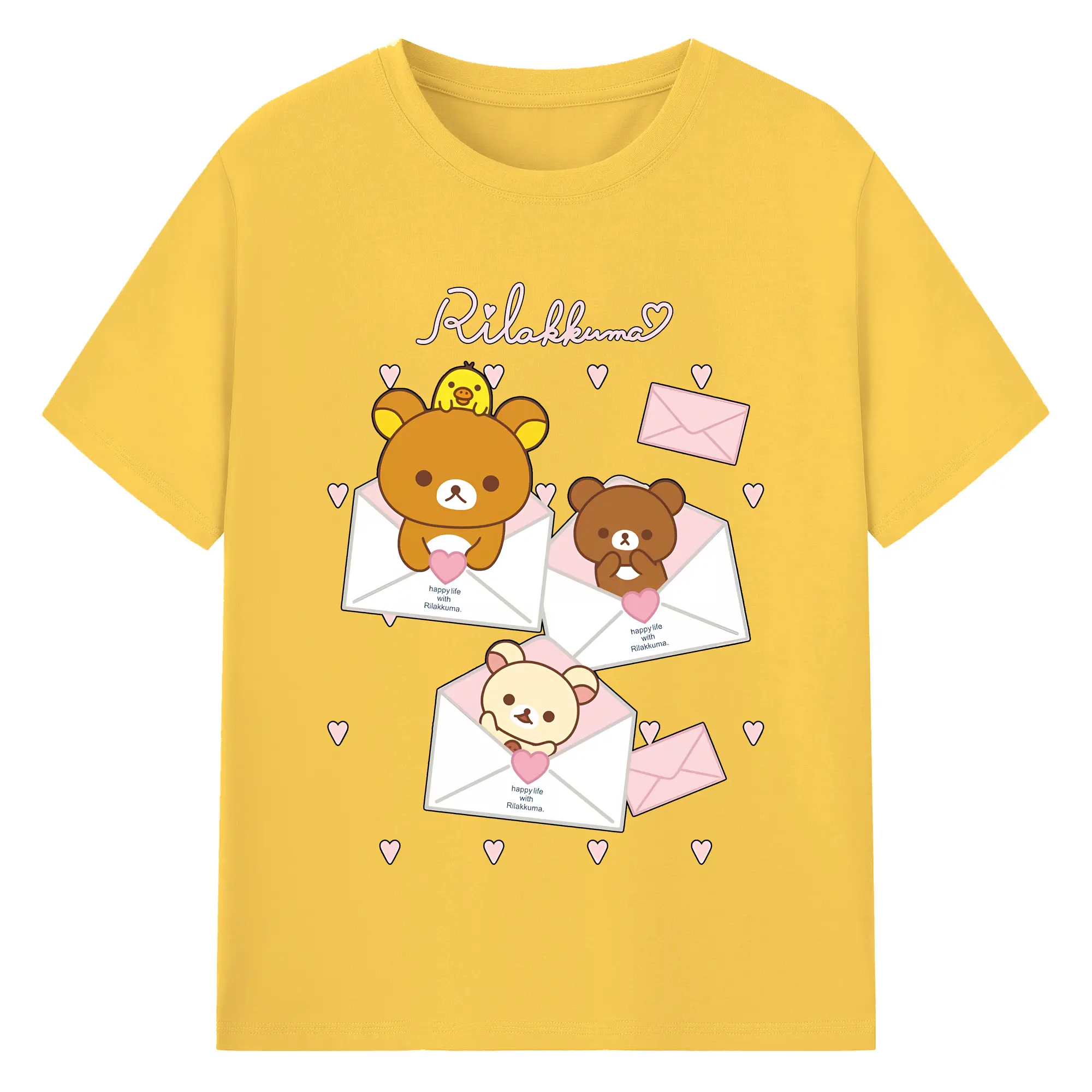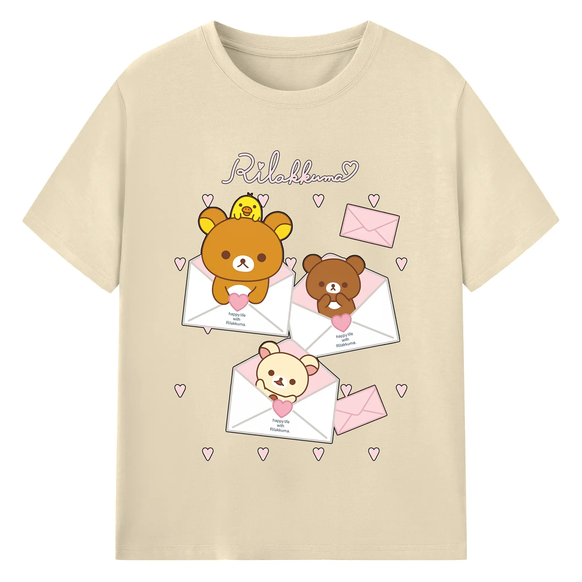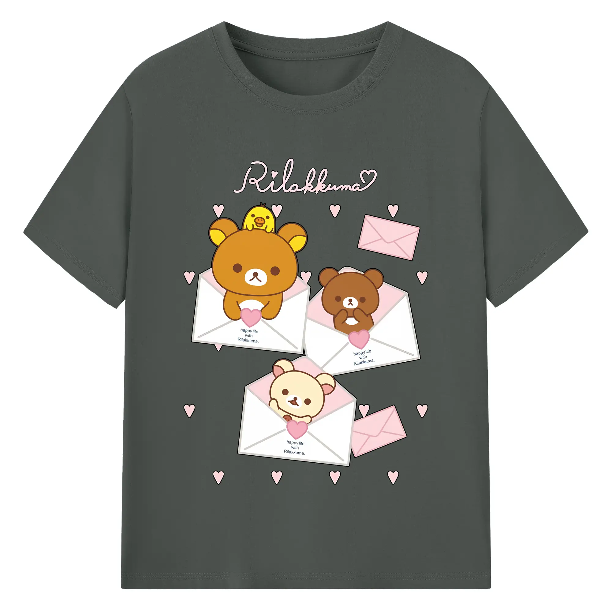 リラックマ (Rilakkuma) グッズ リラックマ (Rilakkuma) - 綿100% 半袖Tシャツ ・ バックプリント ・ 快適 通気性 ・ 日常使い 散歩 スポーツ用