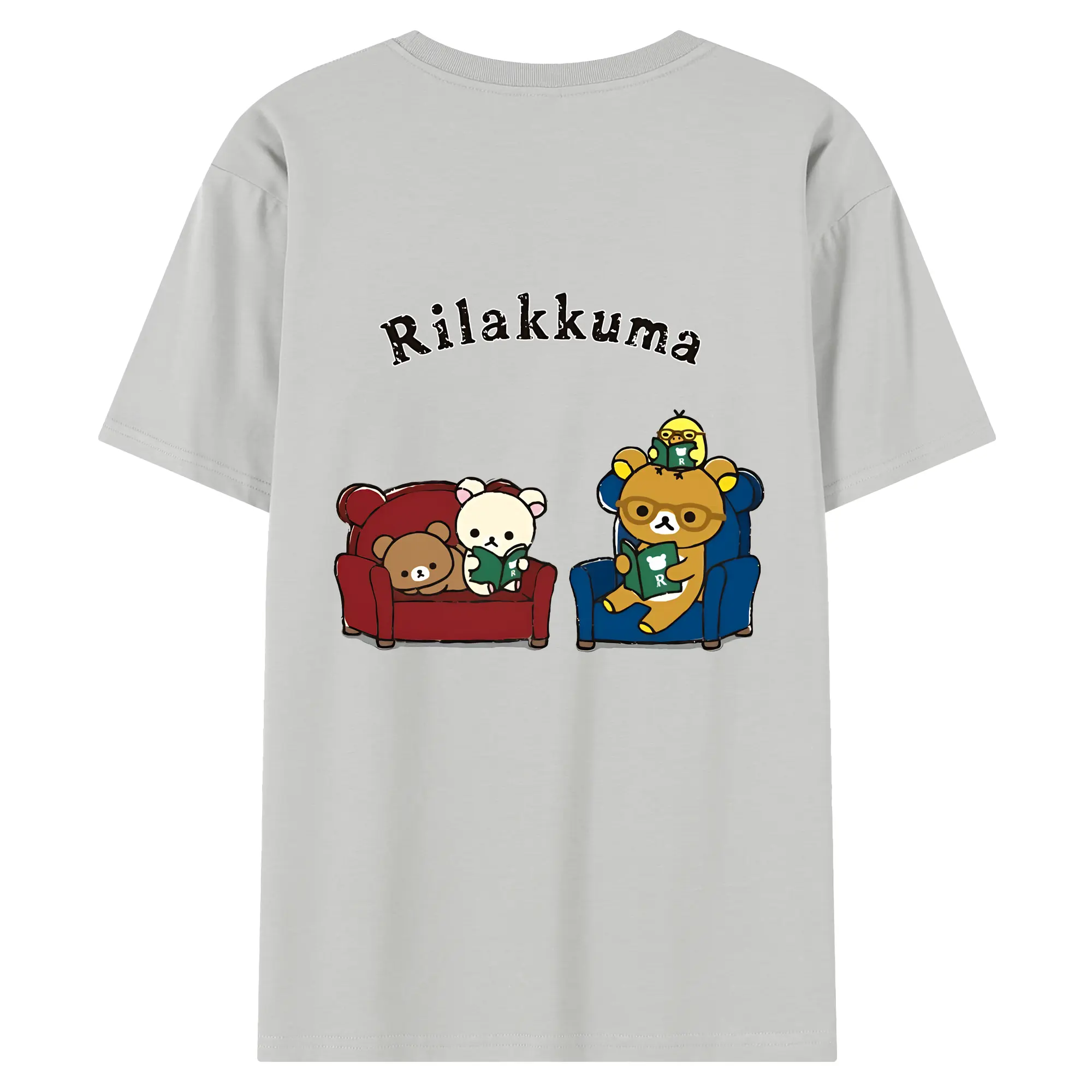 リラックマ (Rilakkuma) グッズ リラックマ (Rilakkuma) - 綿100% ヴィンテージ風 半袖Tシャツ ・ 背面プリント ・ 柔らか肌触り ・ 通気性 快適 ・ スポーツ カジュアル 外出用