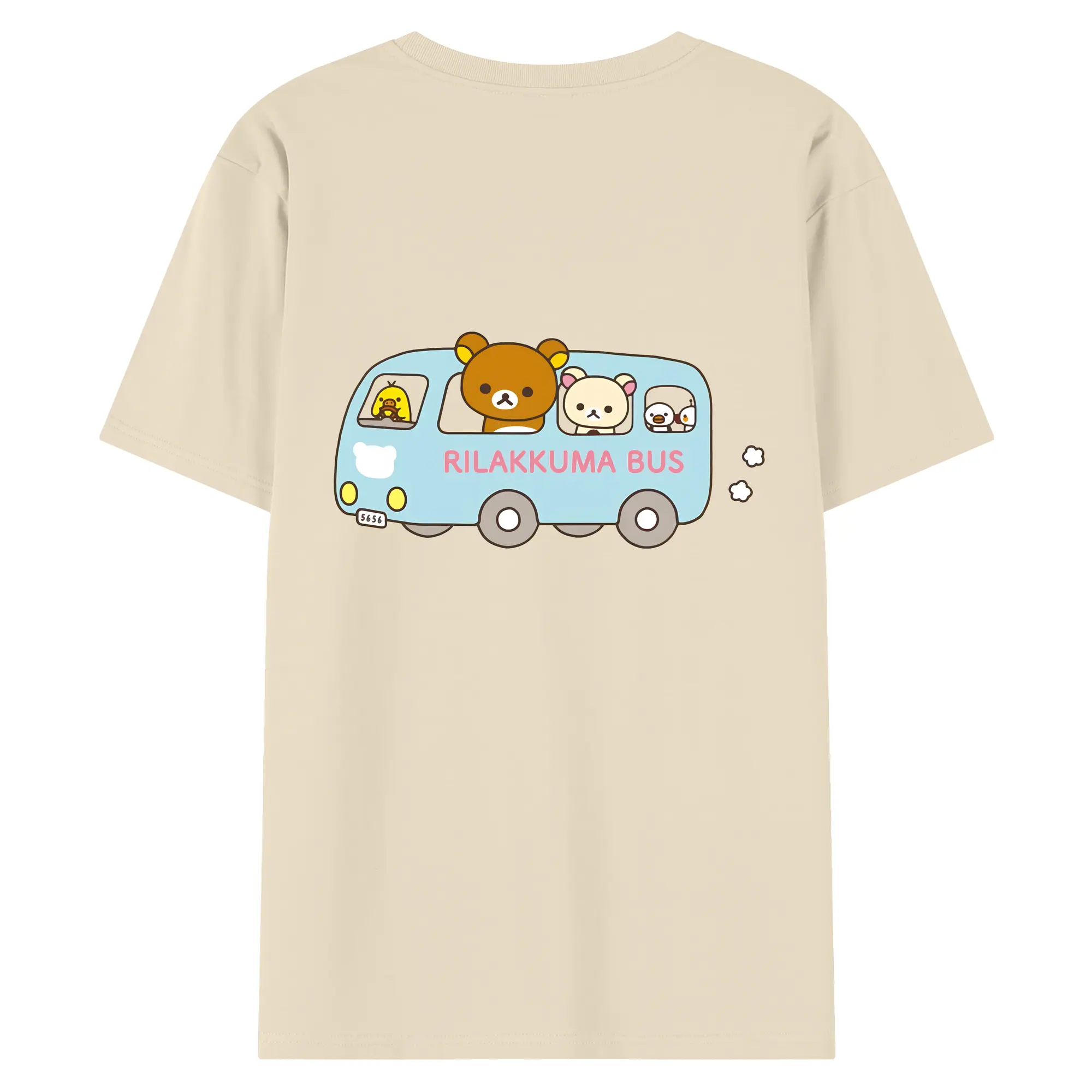 リラックマ (Rilakkuma) グッズ リラックマ (Rilakkuma) - 綿100% ヴィンテージ風 半袖Tシャツ ・ 背面プリント ・ 柔らか肌触り ・ 通気性 快適 ・ スポーツ カジュアル 外出用