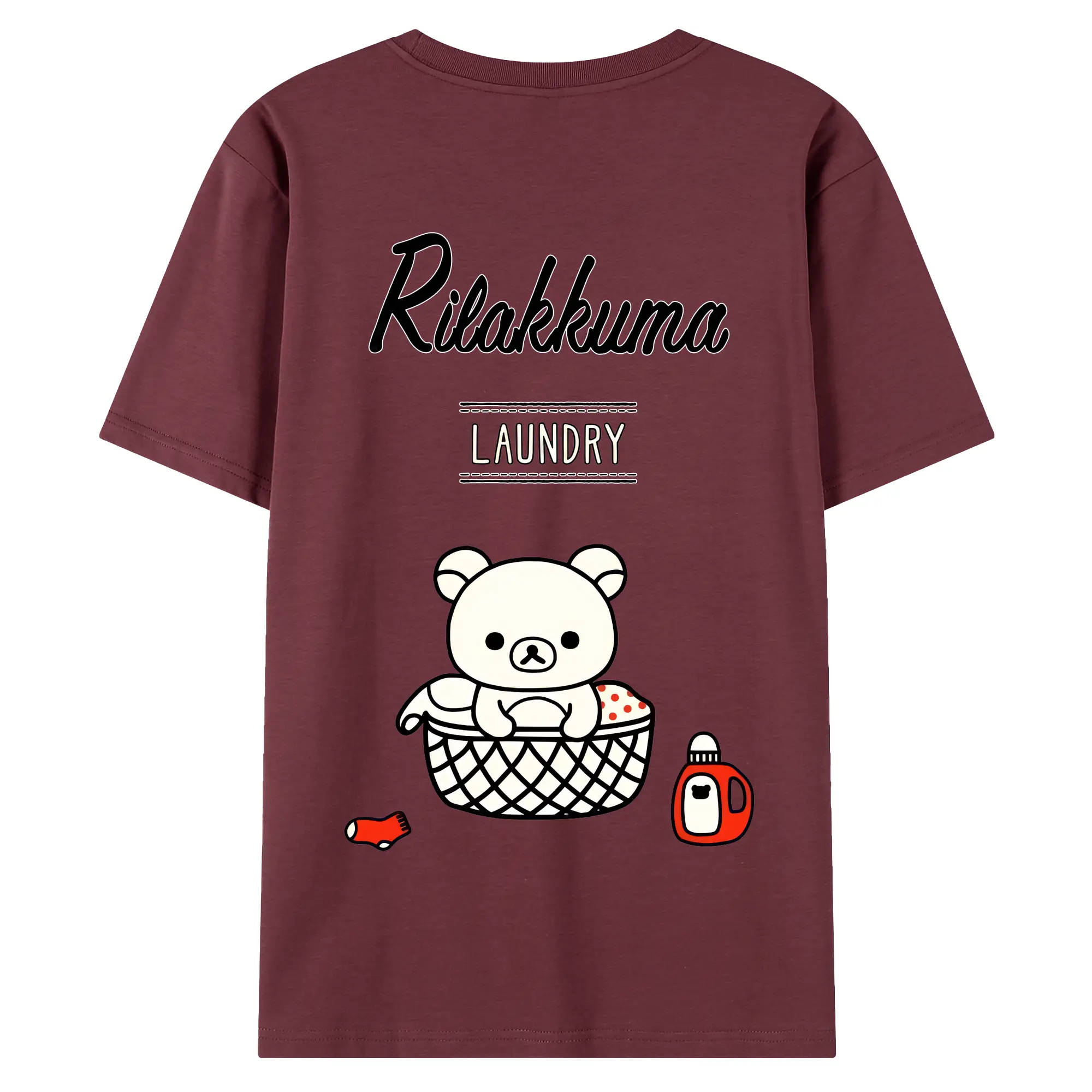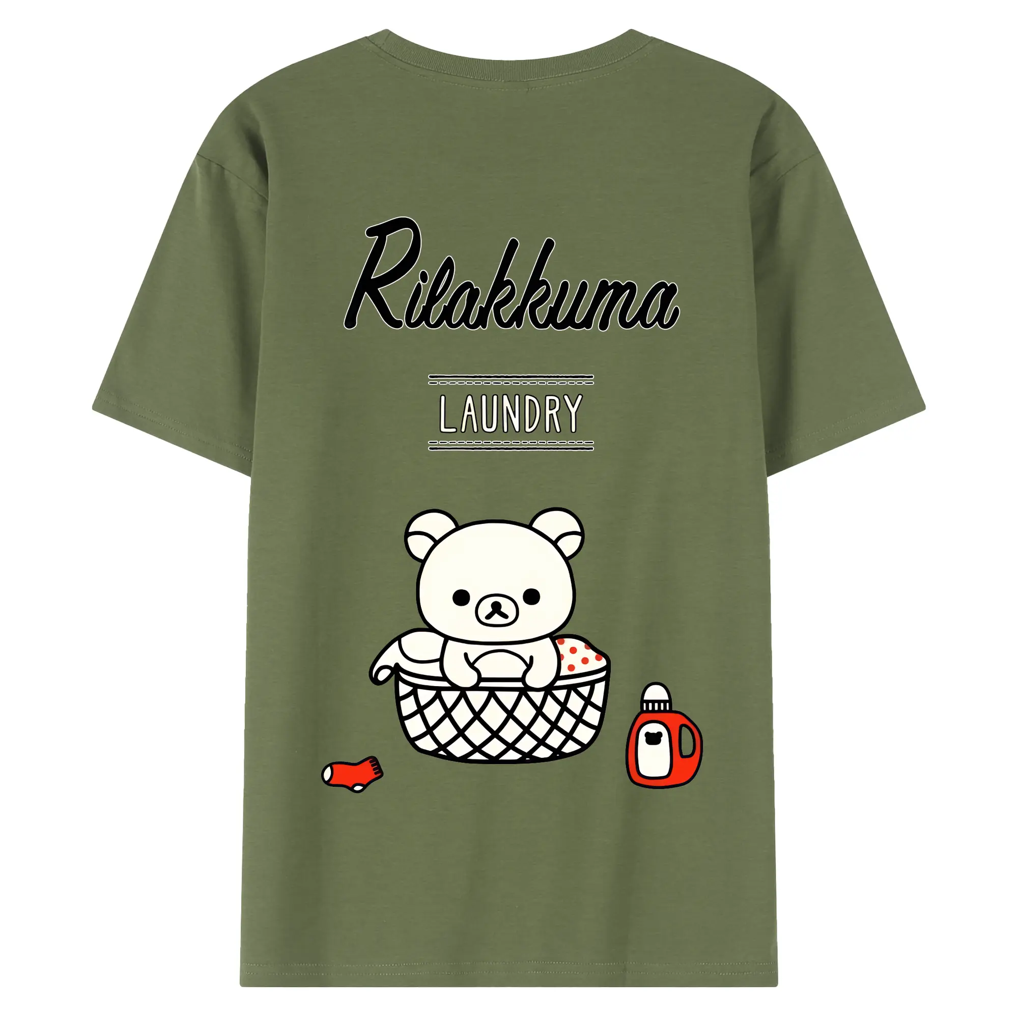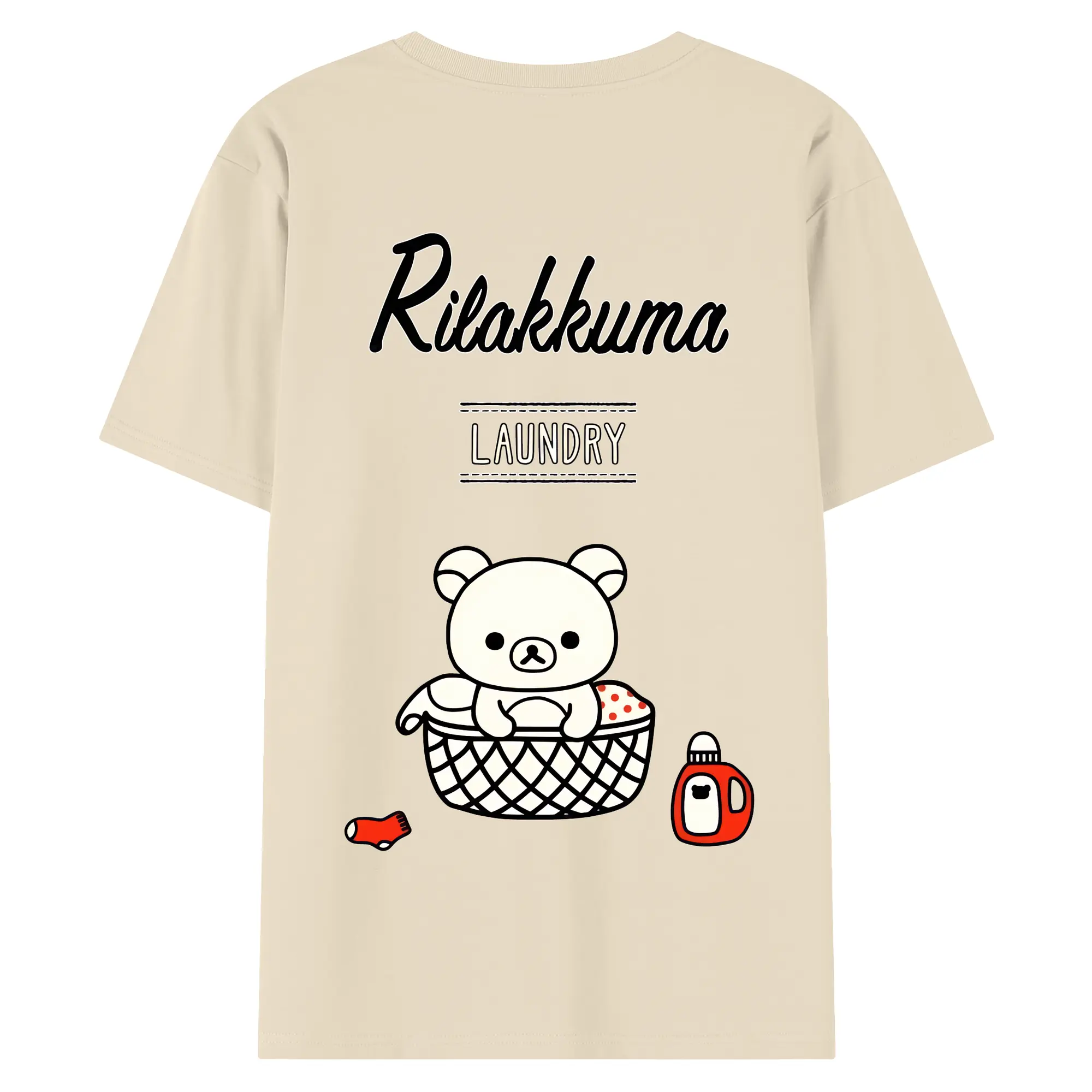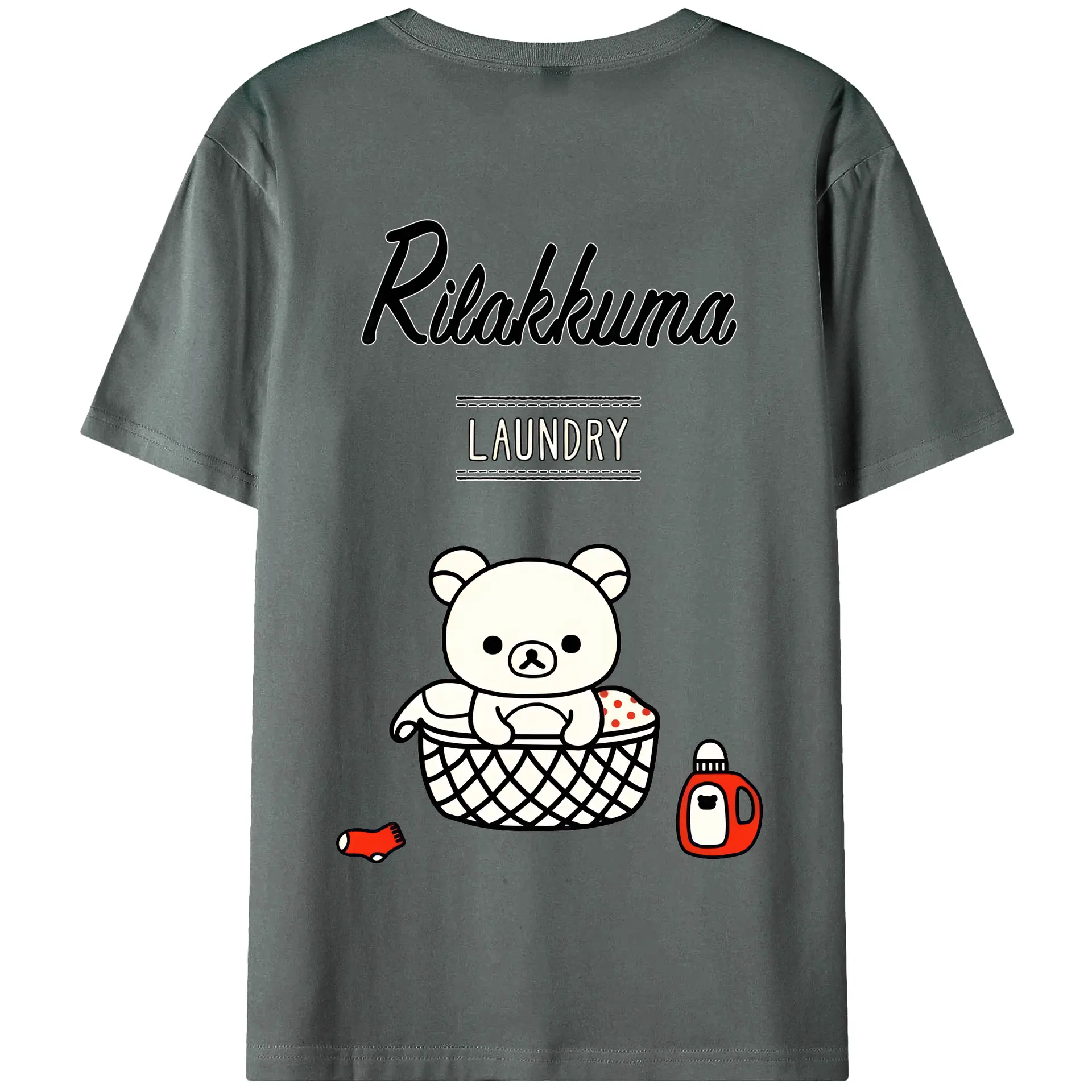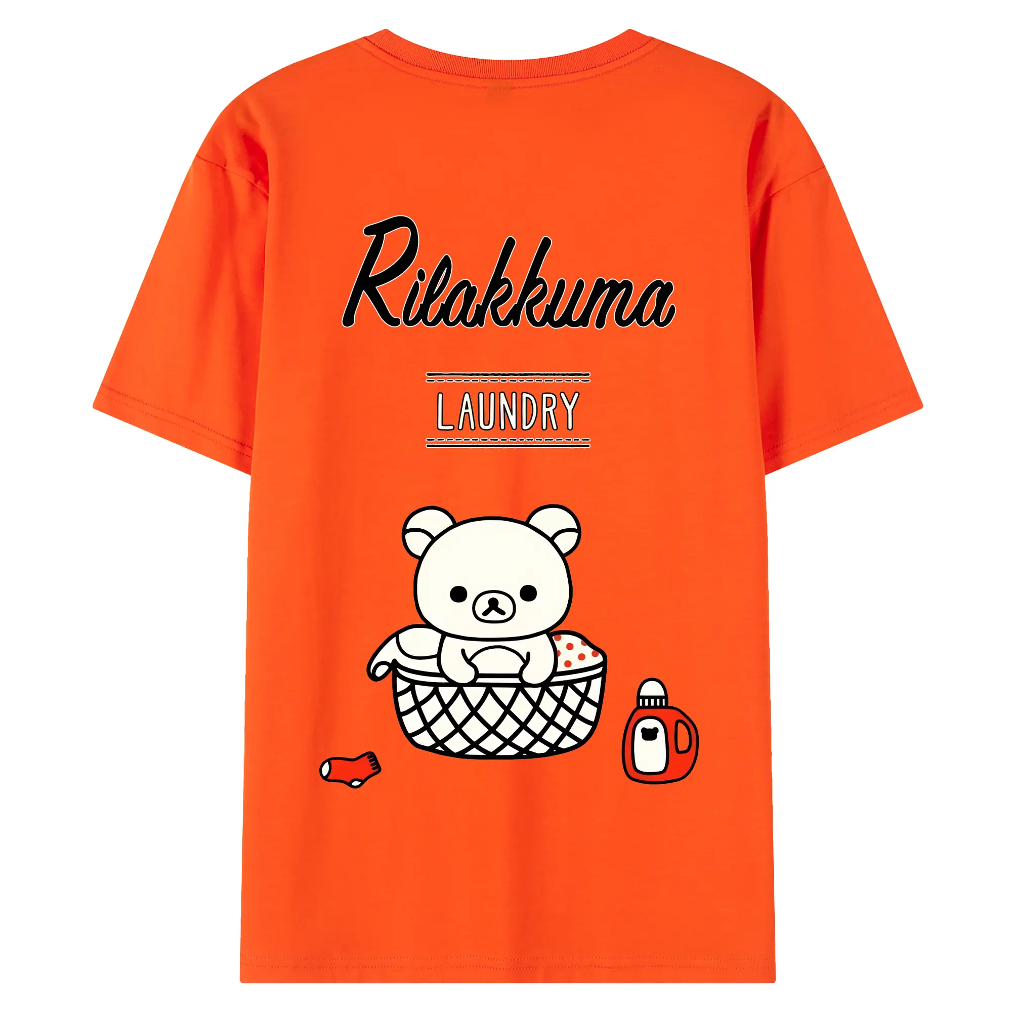 リラックマ (Rilakkuma) グッズ リラックマ (Rilakkuma) - 綿100% ヴィンテージ風 半袖Tシャツ ・ 背面プリント ・ 柔らか肌触り ・ 通気性 快適 ・ スポーツ カジュアル 外出用