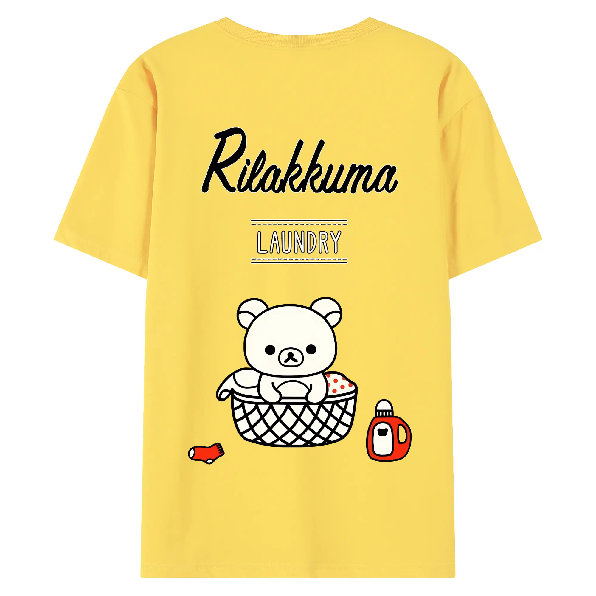 リラックマ (Rilakkuma) グッズ キイロイトリ (Kiiroitori) - 綿100% 半袖Tシャツ ・ バックプリント ・ 快適 通気性 ・ 日常使い 散歩 スポーツ用