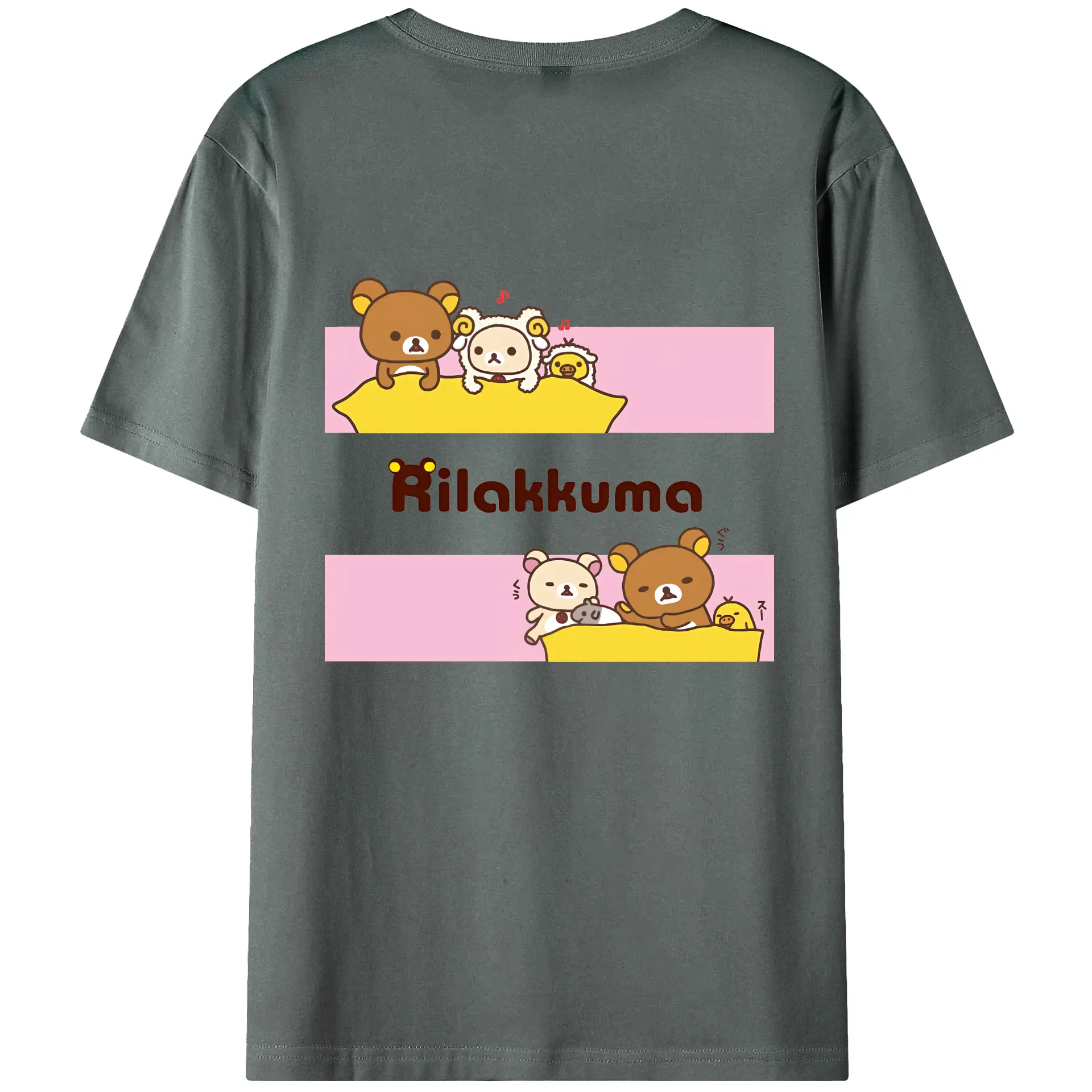 リラックマ (Rilakkuma) グッズ リラックマ (Rilakkuma) - 綿100% 半袖Tシャツ ・ フロントプリント ・ 快適 通気性 ・ 日常使い 散歩 スポーツ用