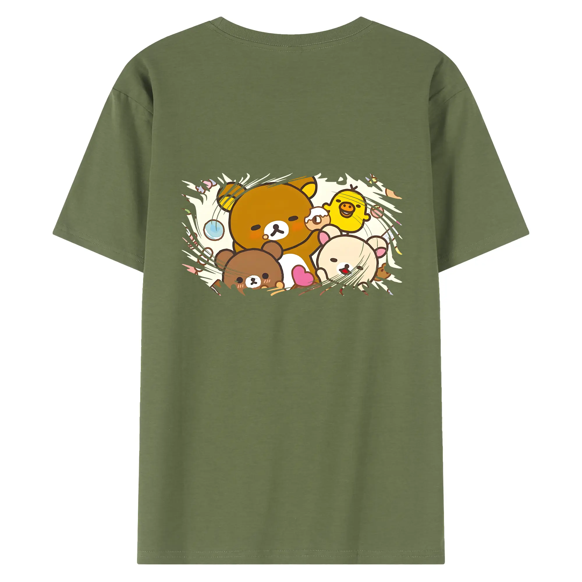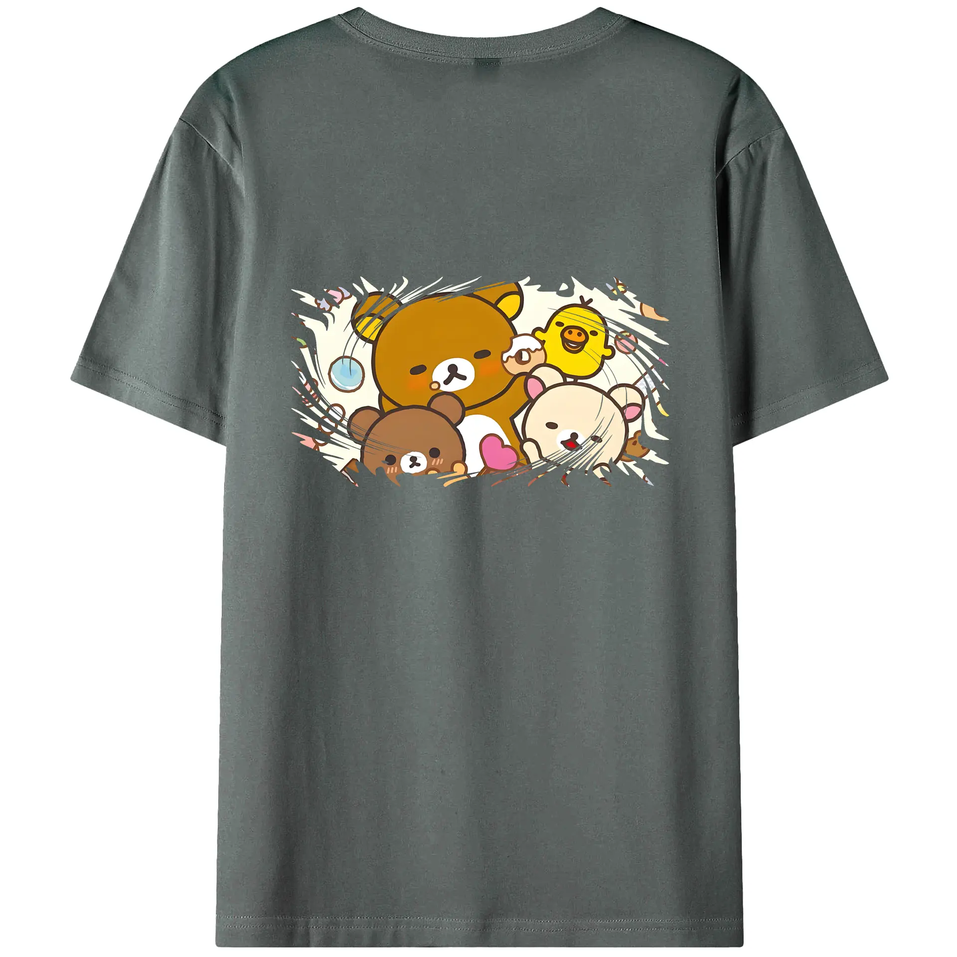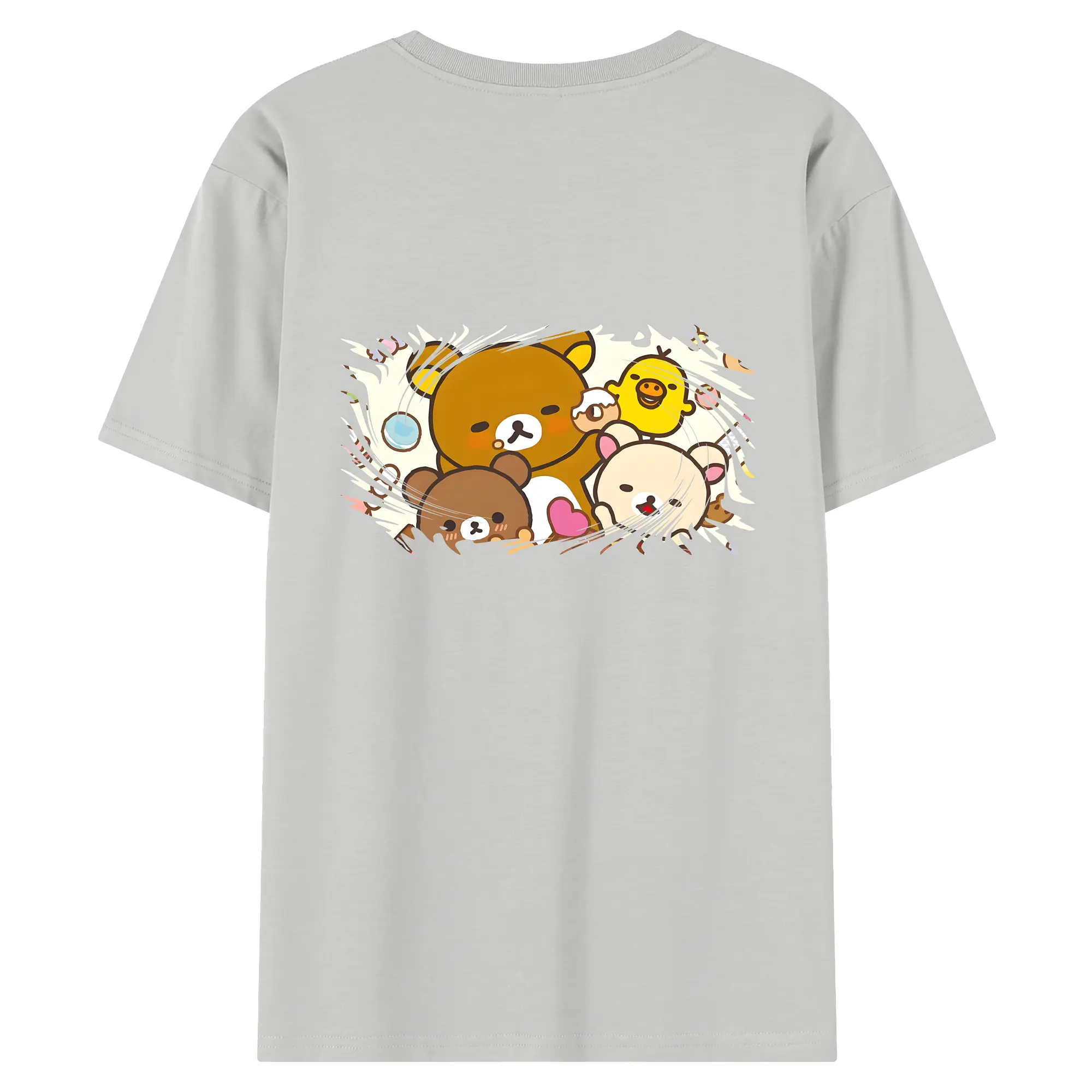 リラックマ (Rilakkuma) グッズ リラックマ (Rilakkuma) - 綿100% ヴィンテージ風 半袖Tシャツ ・ 背面プリント ・ 柔らか肌触り ・ 通気性 快適 ・ スポーツ カジュアル 外出用