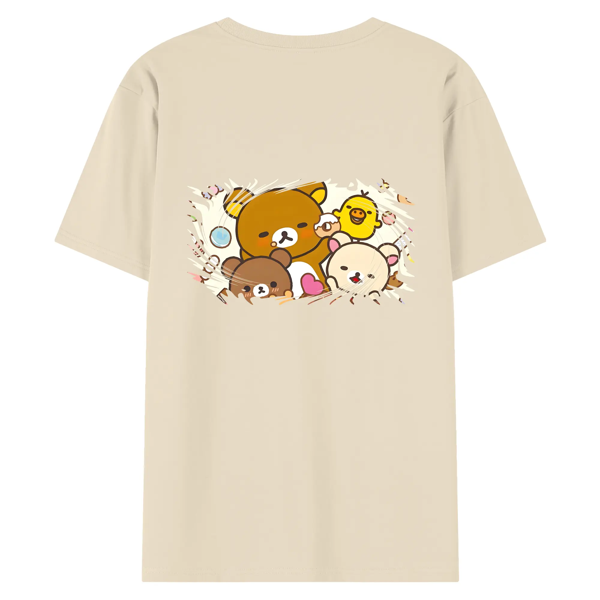 リラックマ (Rilakkuma) グッズ リラックマ (Rilakkuma) - 綿100% ヴィンテージ風 半袖Tシャツ ・ フロントプリント ・ 柔らか肌触り ・ 通気性 快適 ・ スポーツ カジュアル 外出用