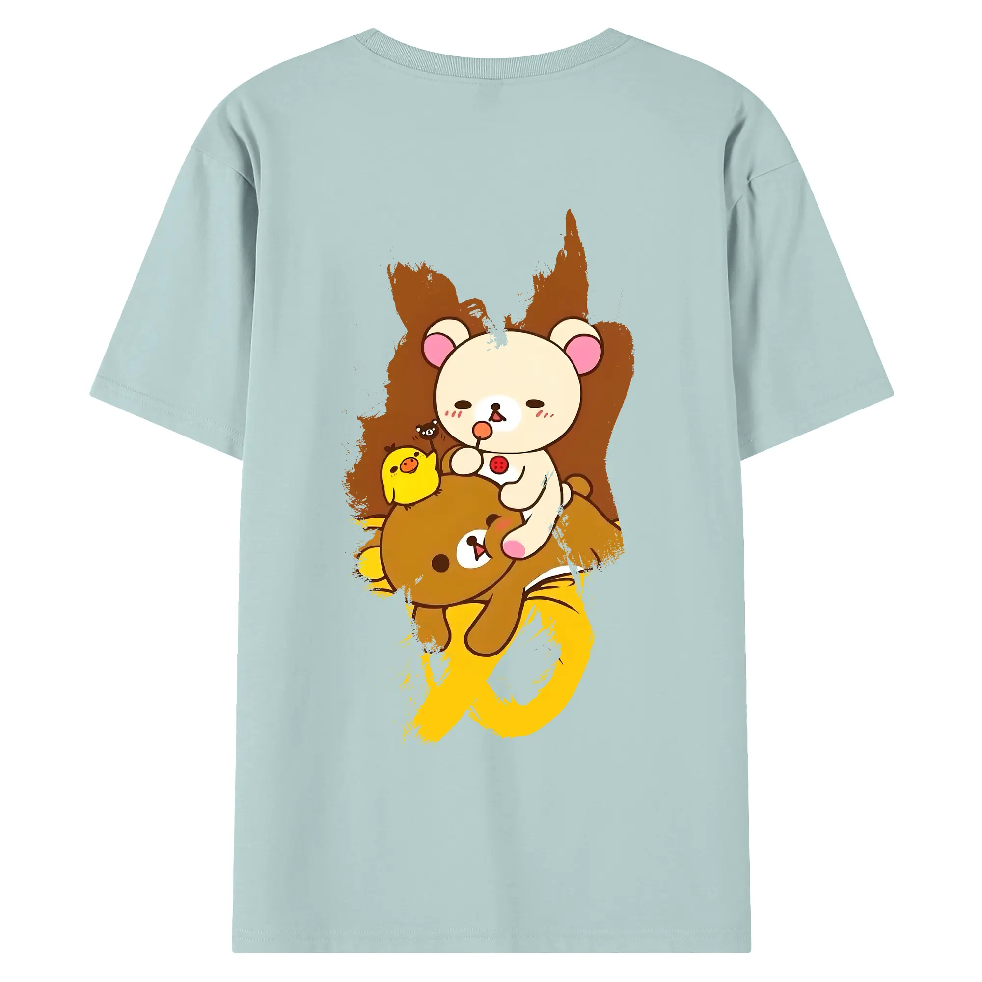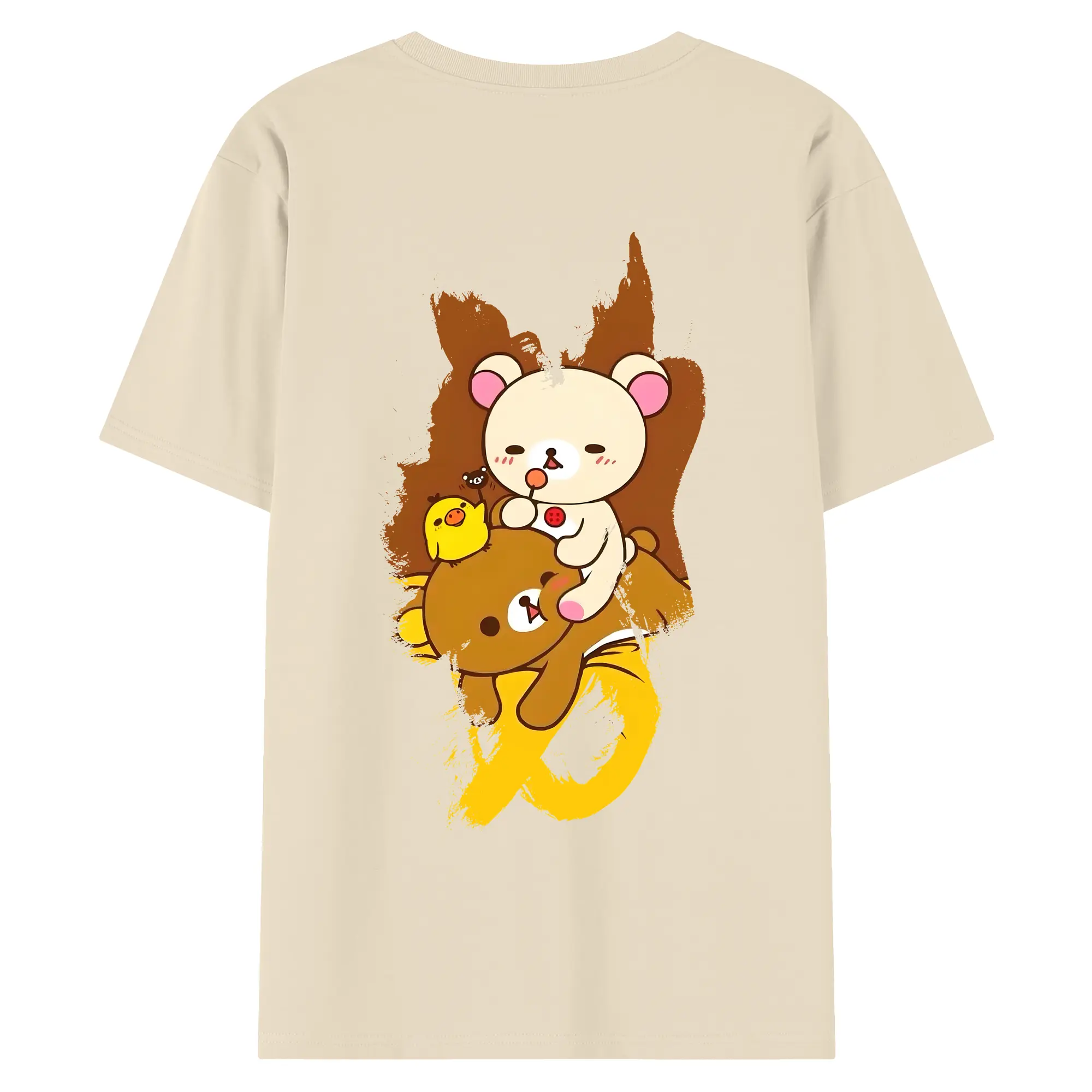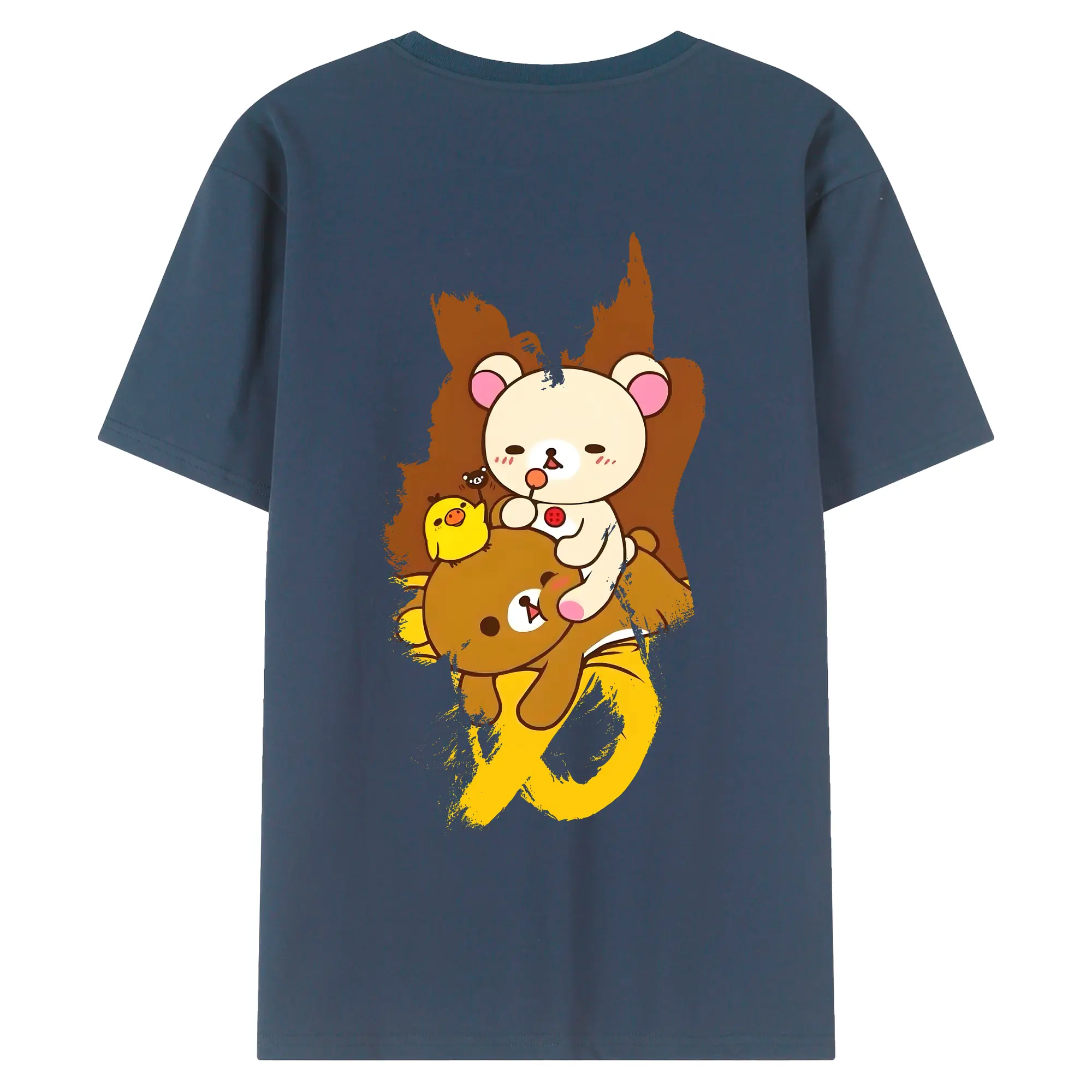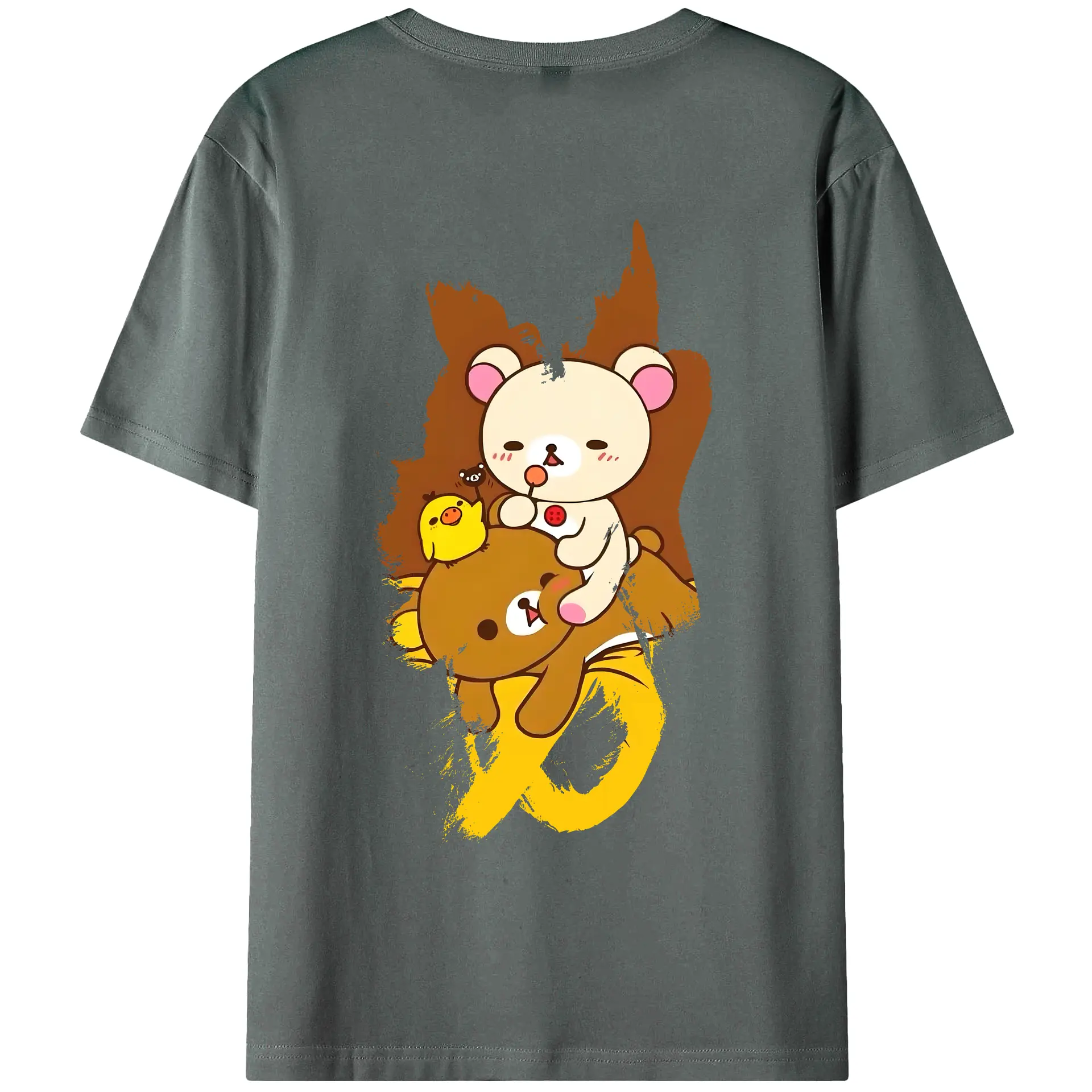 リラックマ (Rilakkuma) グッズ リラックマ (Rilakkuma) - 綿100% ヴィンテージ風 半袖Tシャツ ・ 背面プリント ・ 柔らか肌触り ・ 通気性 快適 ・ スポーツ カジュアル 外出用