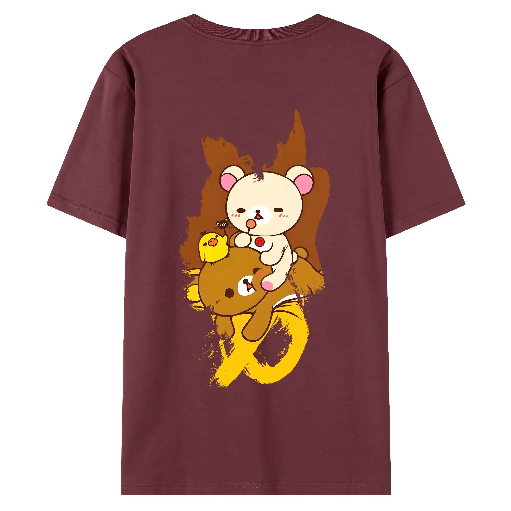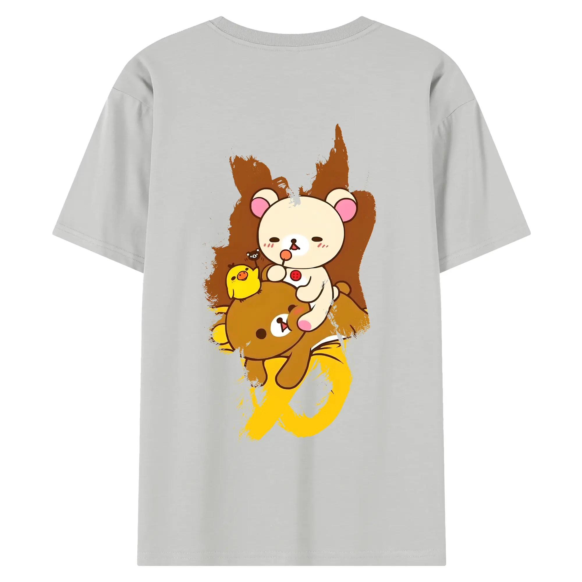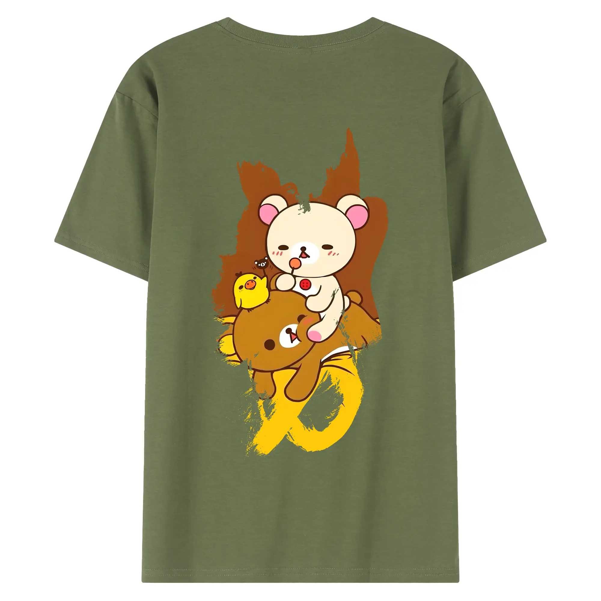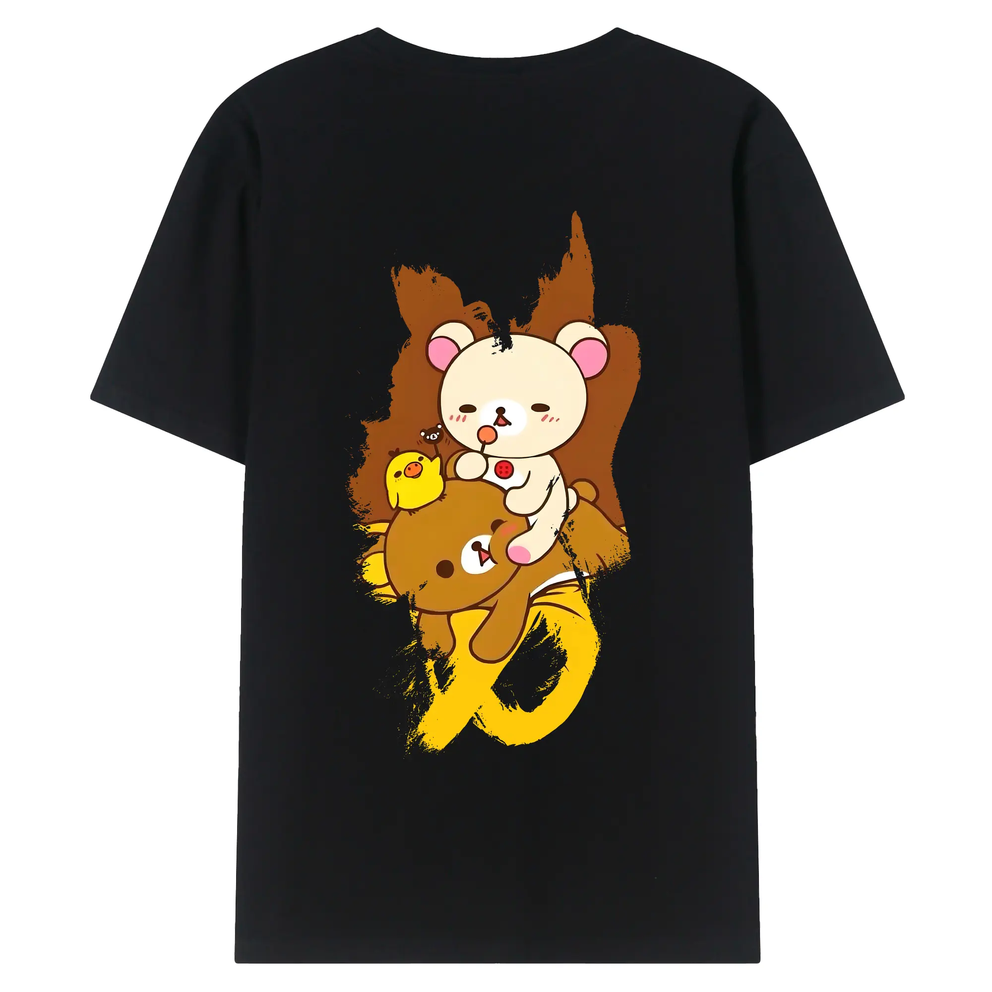 リラックマ (Rilakkuma) グッズ リラックマ (Rilakkuma) - 綿100% ヴィンテージ風 半袖Tシャツ ・ 背面プリント ・ 柔らか肌触り ・ 通気性 快適 ・ スポーツ カジュアル 外出用