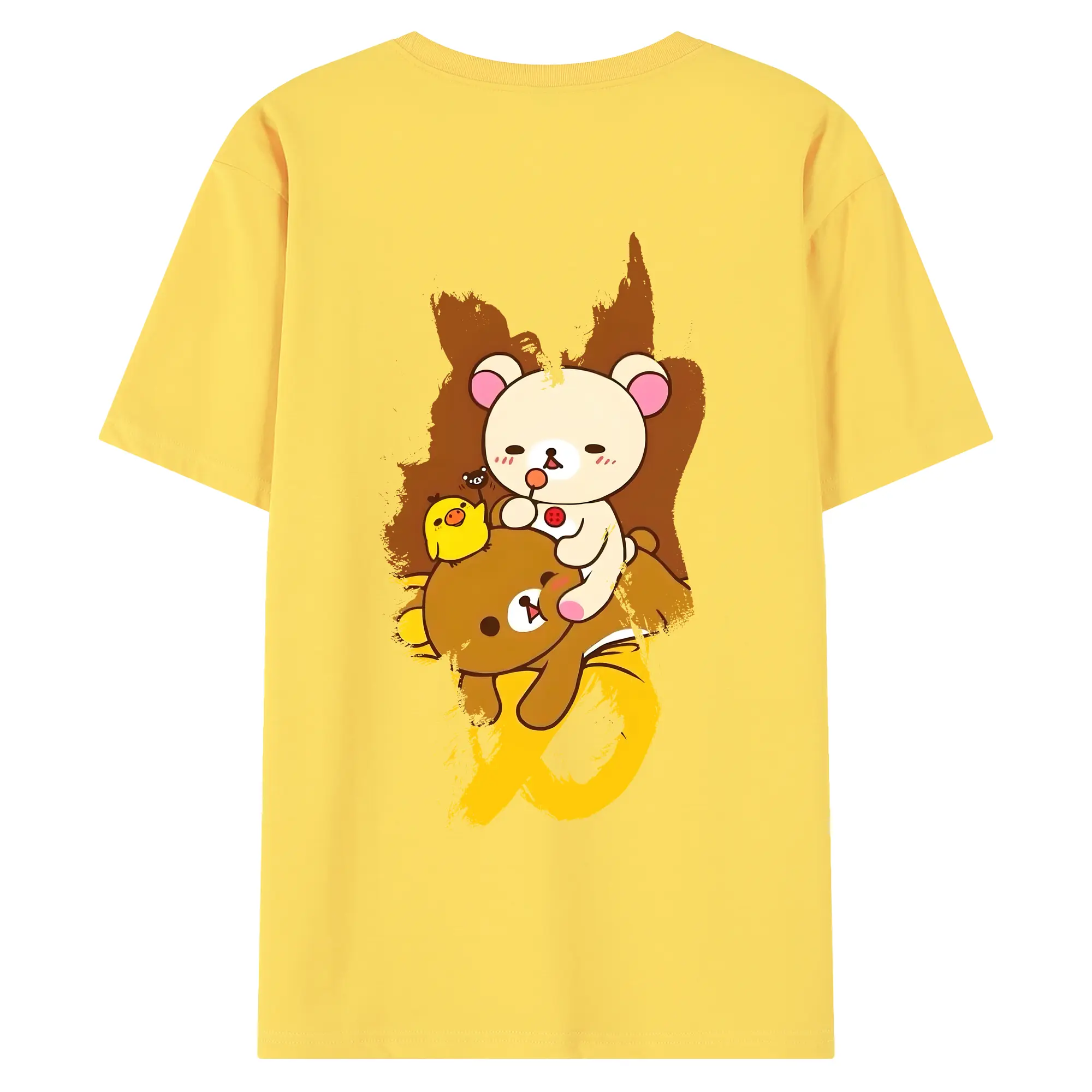 リラックマ (Rilakkuma) グッズ リラックマ (Rilakkuma) - 綿100% ヴィンテージ風 半袖Tシャツ ・ フロントプリント ・ 柔らか肌触り ・ 通気性 快適 ・ スポーツ カジュアル 外出用
