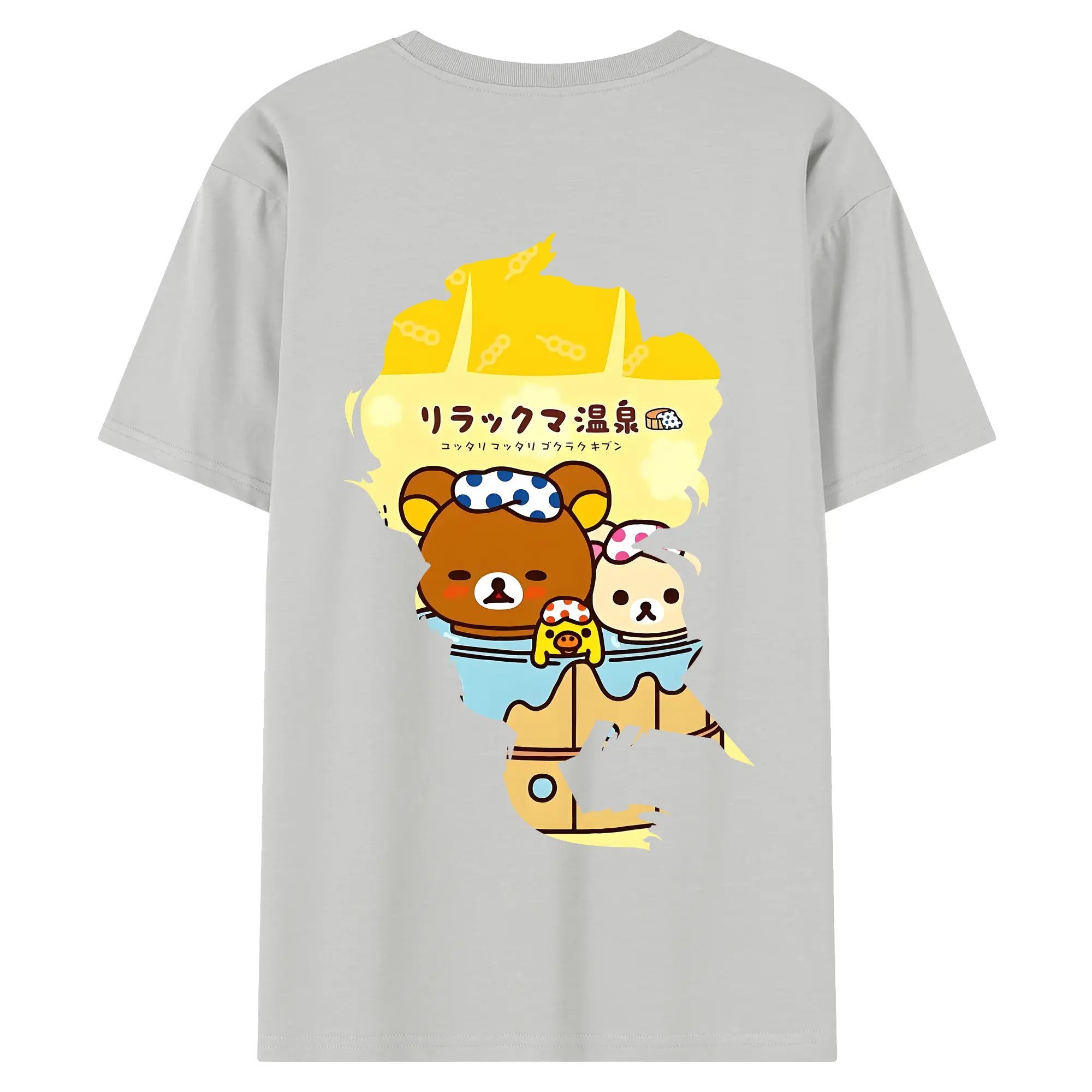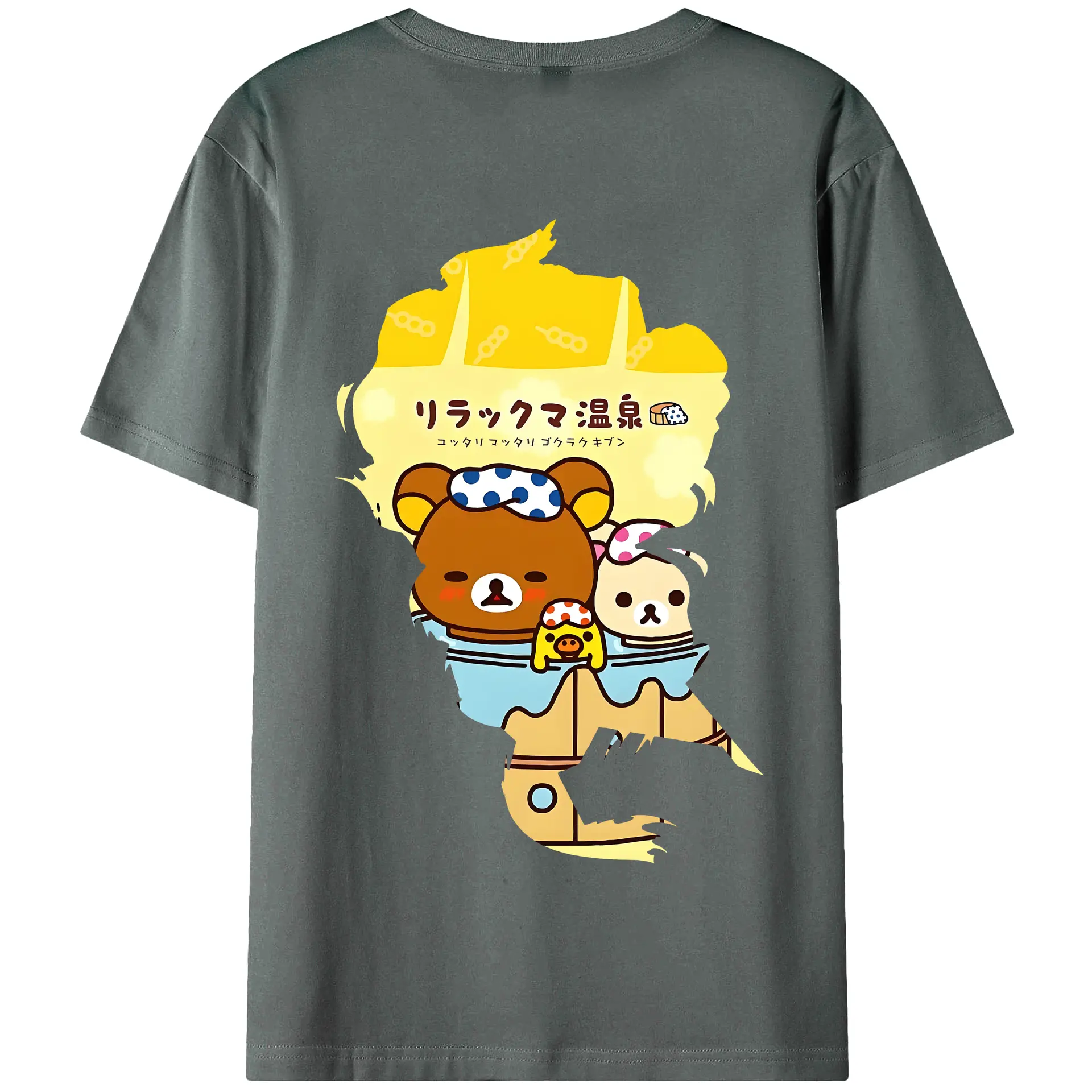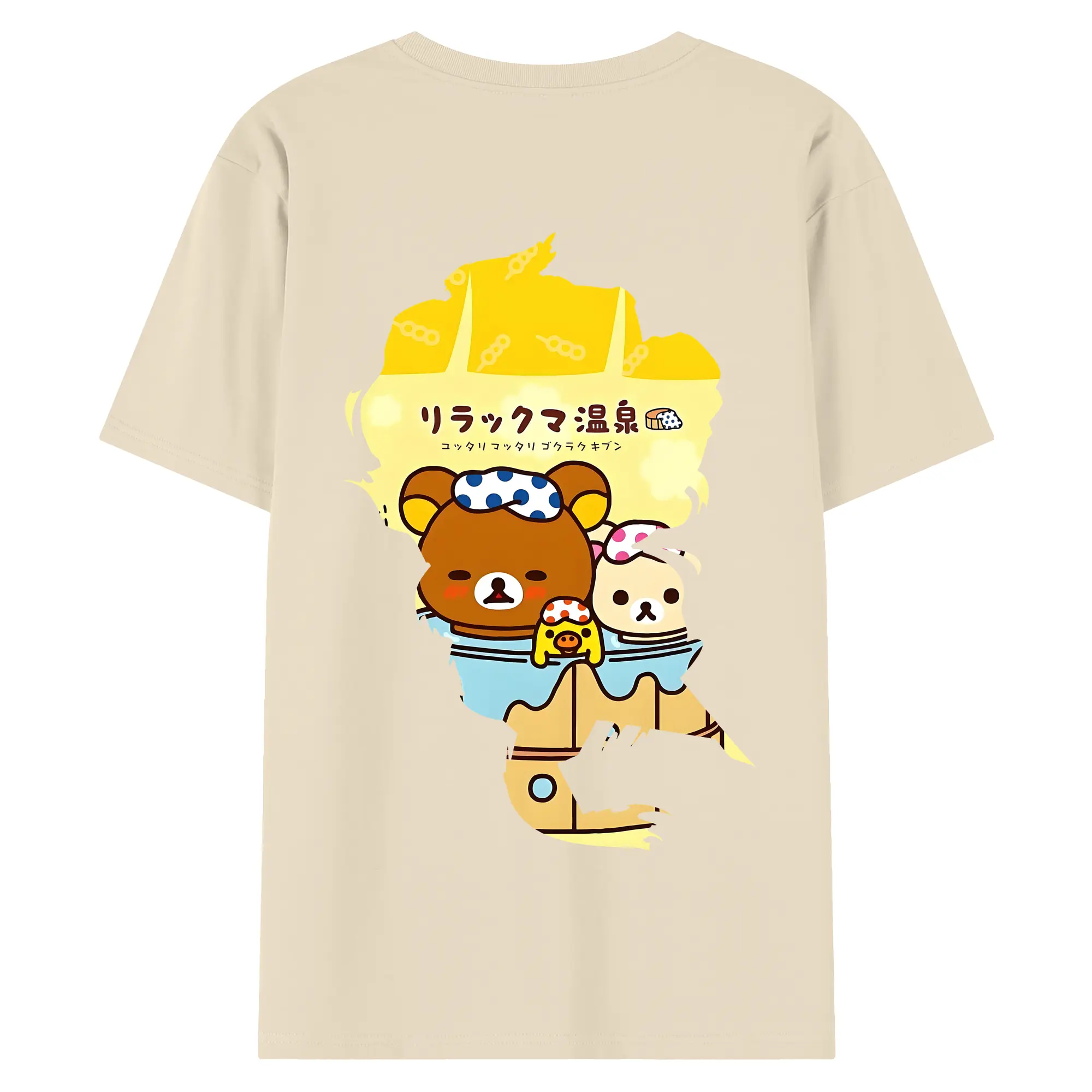 リラックマ (Rilakkuma) グッズ リラックマ (Rilakkuma) - 綿100% ヴィンテージ風 半袖Tシャツ ・ 背面プリント ・ 柔らか肌触り ・ 通気性 快適 ・ スポーツ カジュアル 外出用