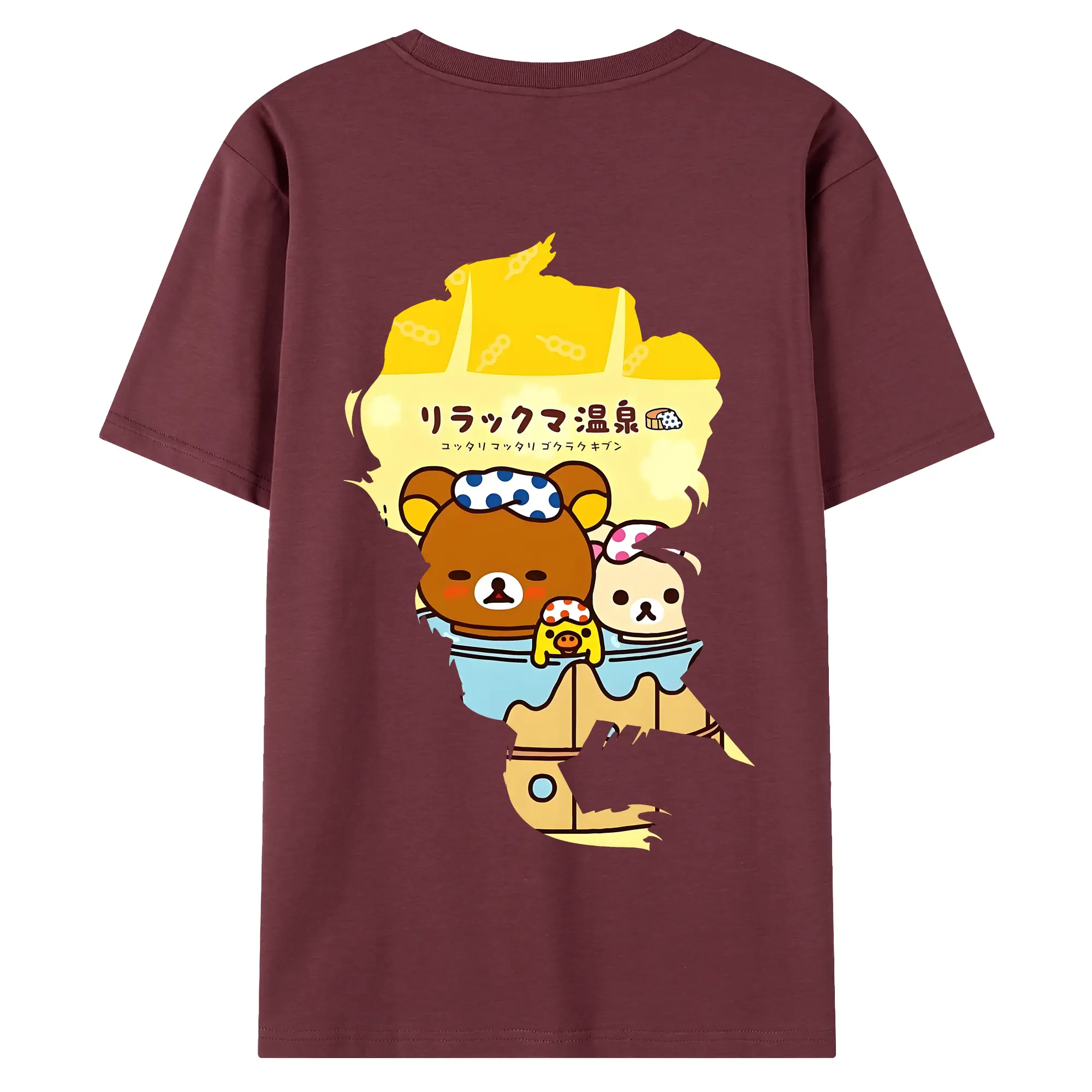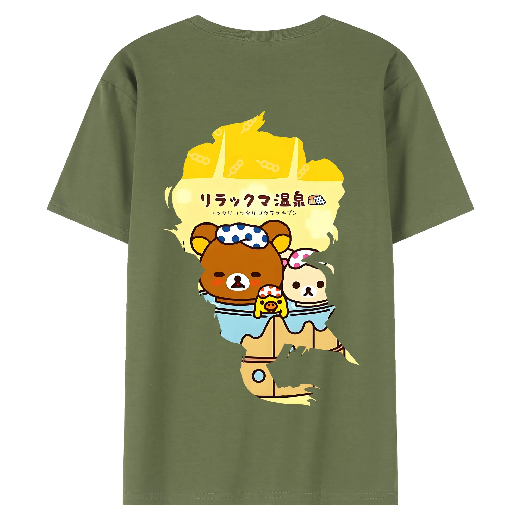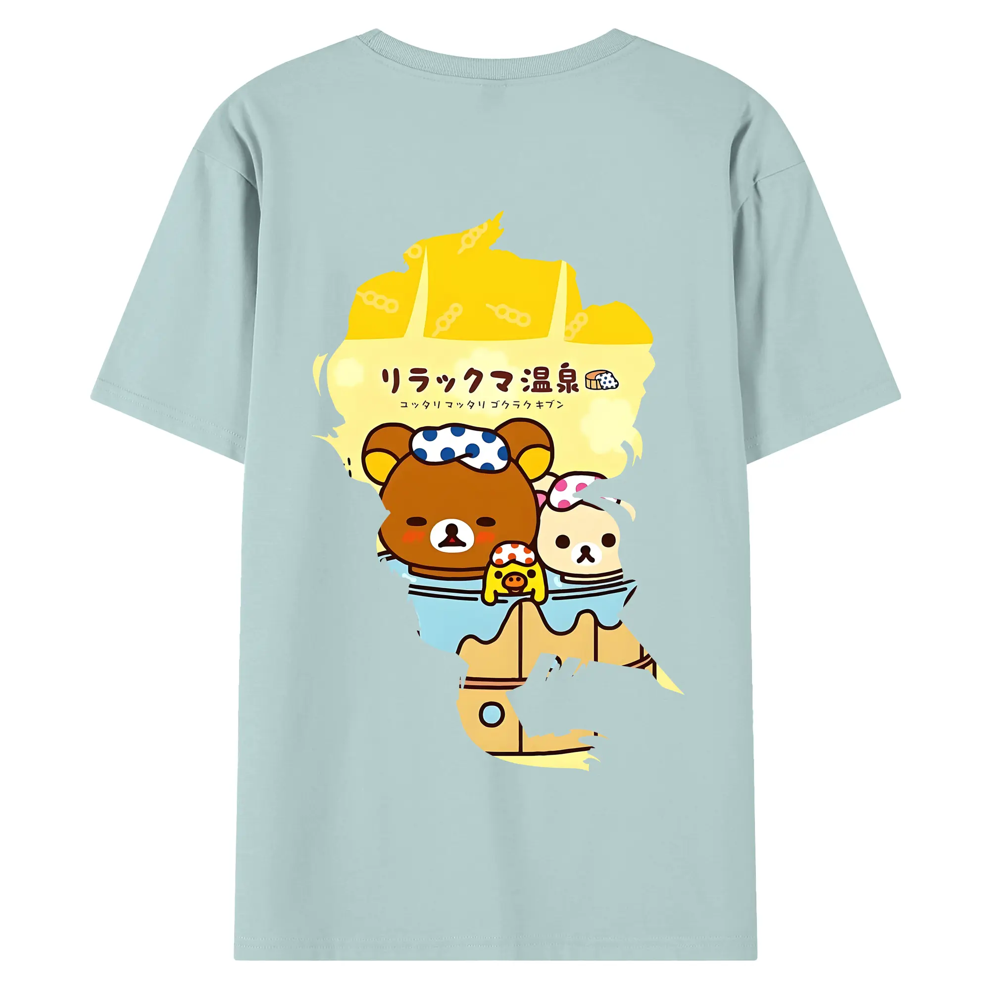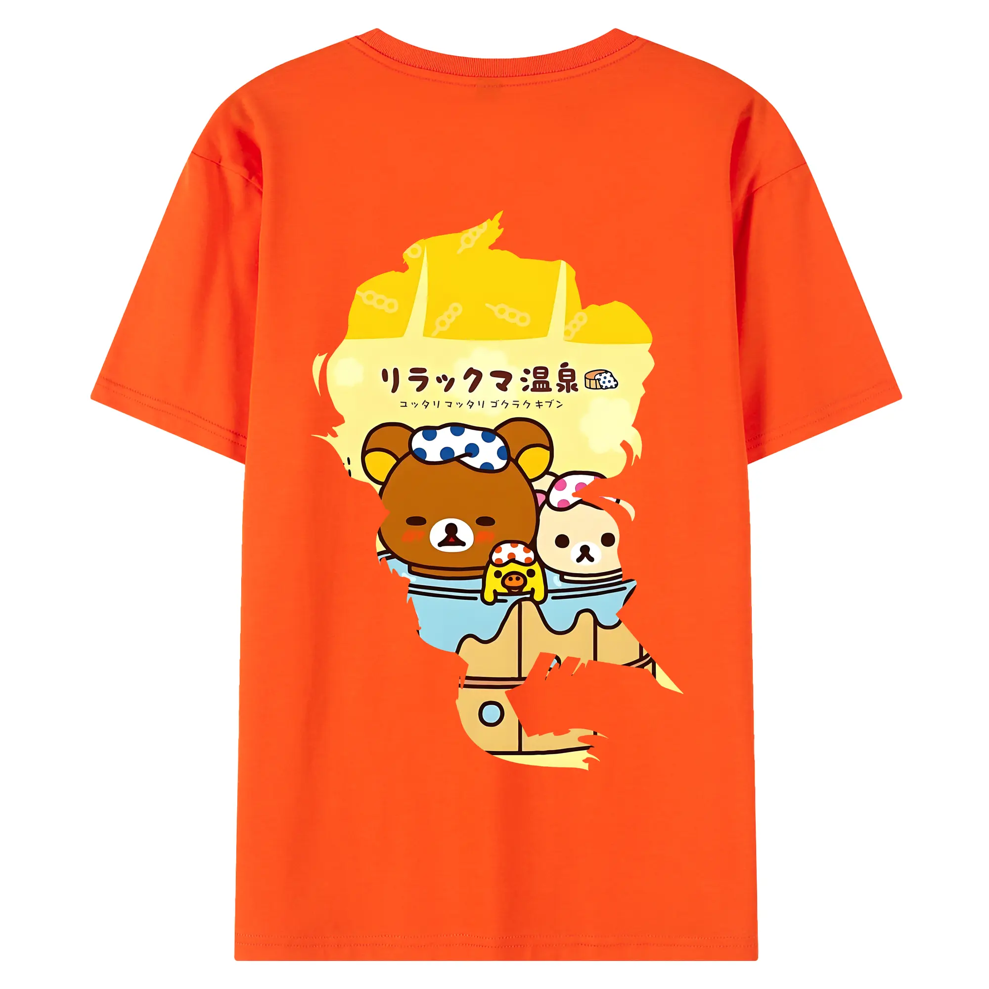 リラックマ (Rilakkuma) グッズ リラックマ (Rilakkuma) - 綿100% ヴィンテージ風 半袖Tシャツ ・ 背面プリント ・ 柔らか肌触り ・ 通気性 快適 ・ スポーツ カジュアル 外出用