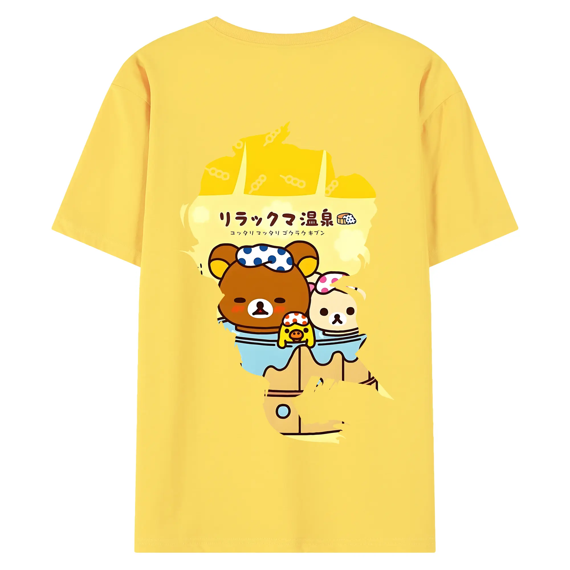 リラックマ (Rilakkuma) グッズ リラックマ (Rilakkuma) - 綿100% ヴィンテージ風 半袖Tシャツ ・ フロントプリント ・ 柔らか肌触り ・ 通気性 快適 ・ スポーツ カジュアル 外出用