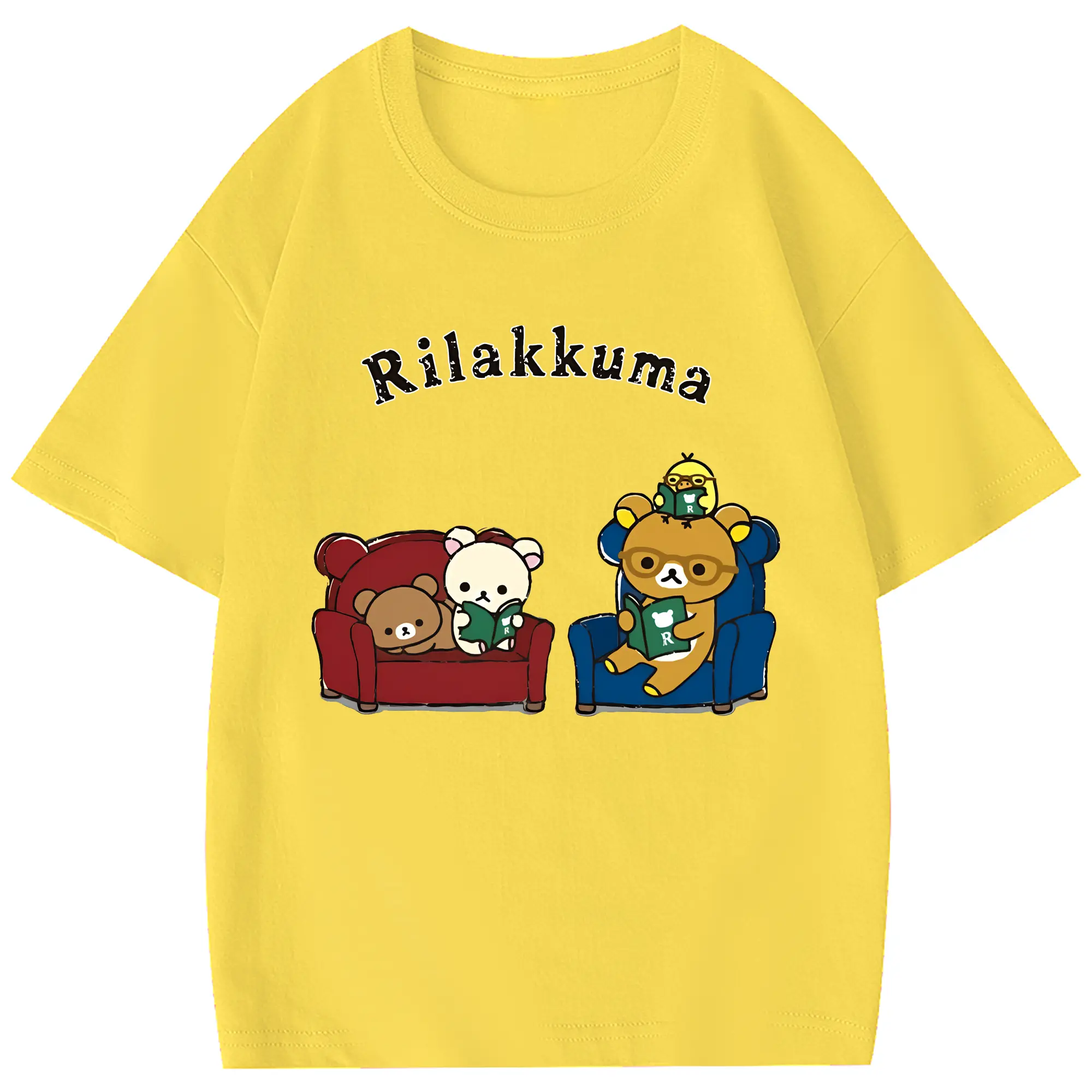 リラックマ (Rilakkuma) グッズ リラックマ (Rilakkuma) - 綿100% 半袖Tシャツ ・ フロントプリント ・ 快適 通気性 ・ 日常使い 散歩 スポーツ用