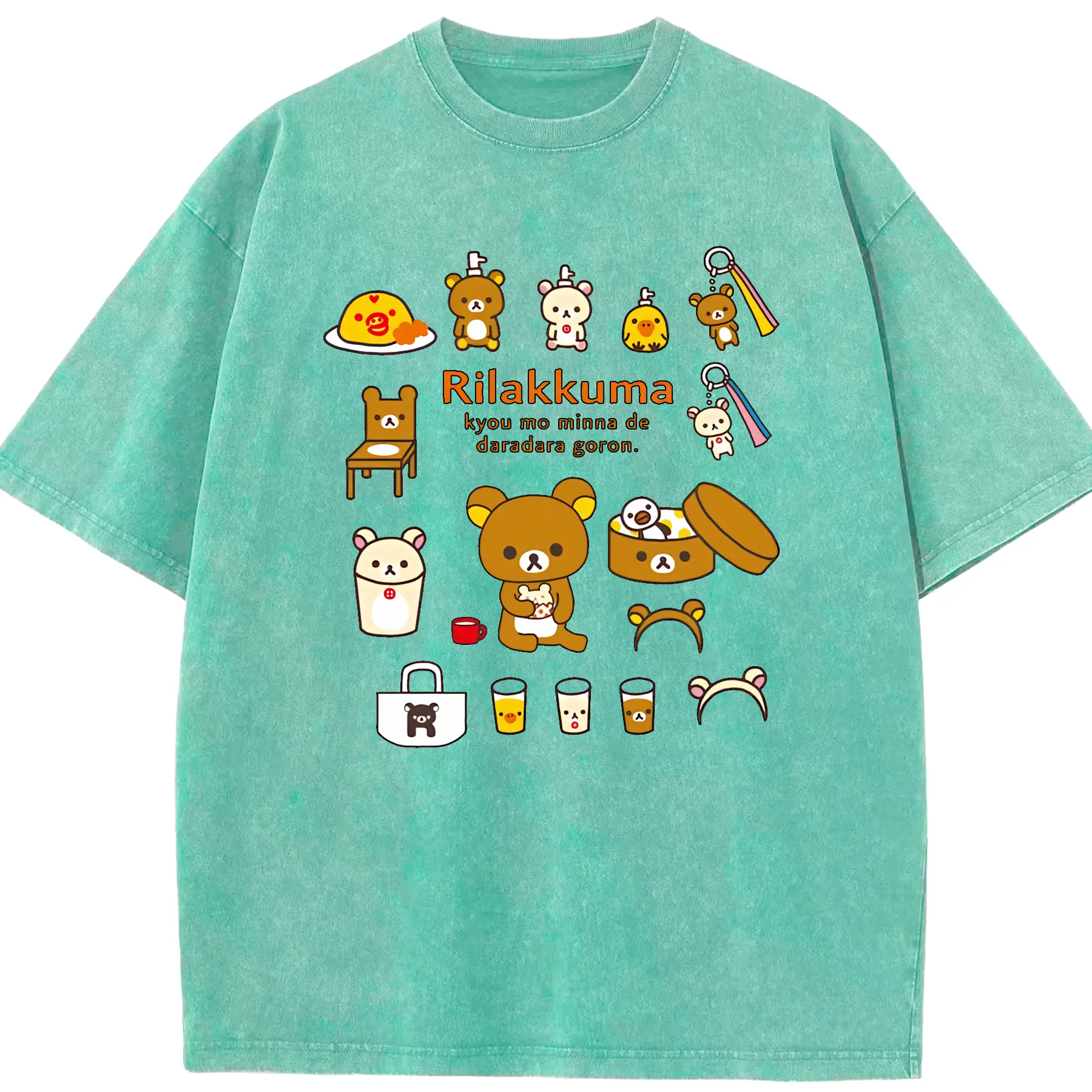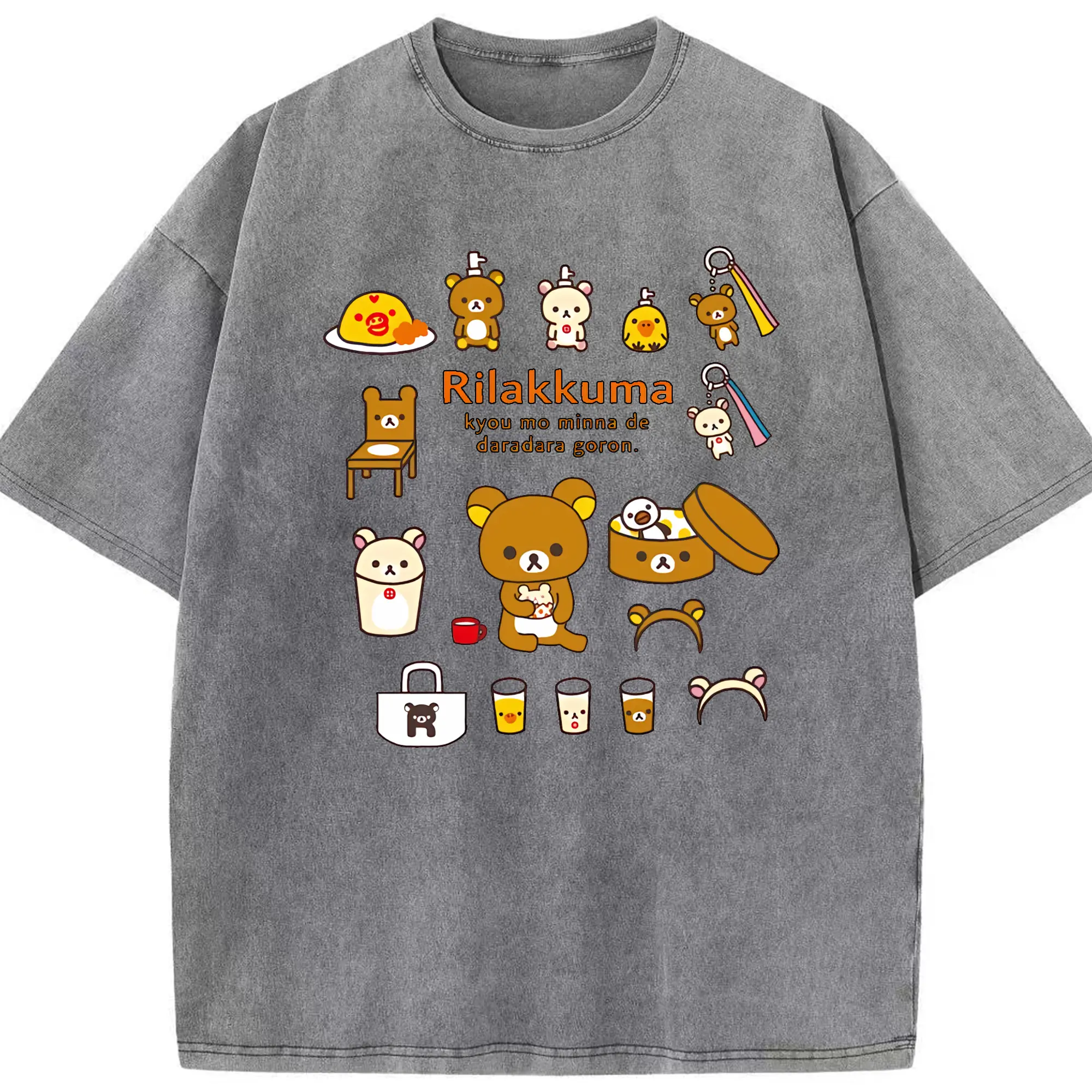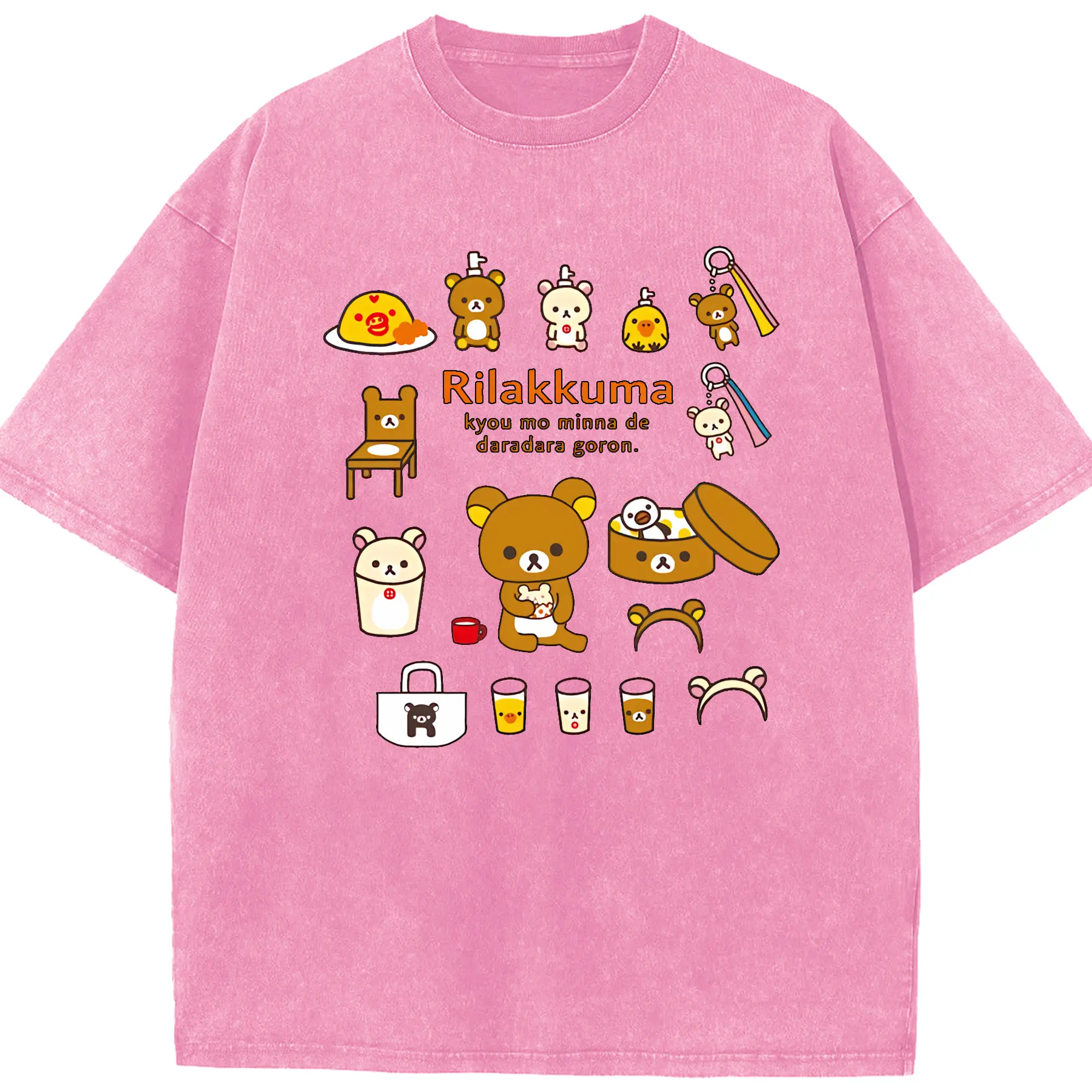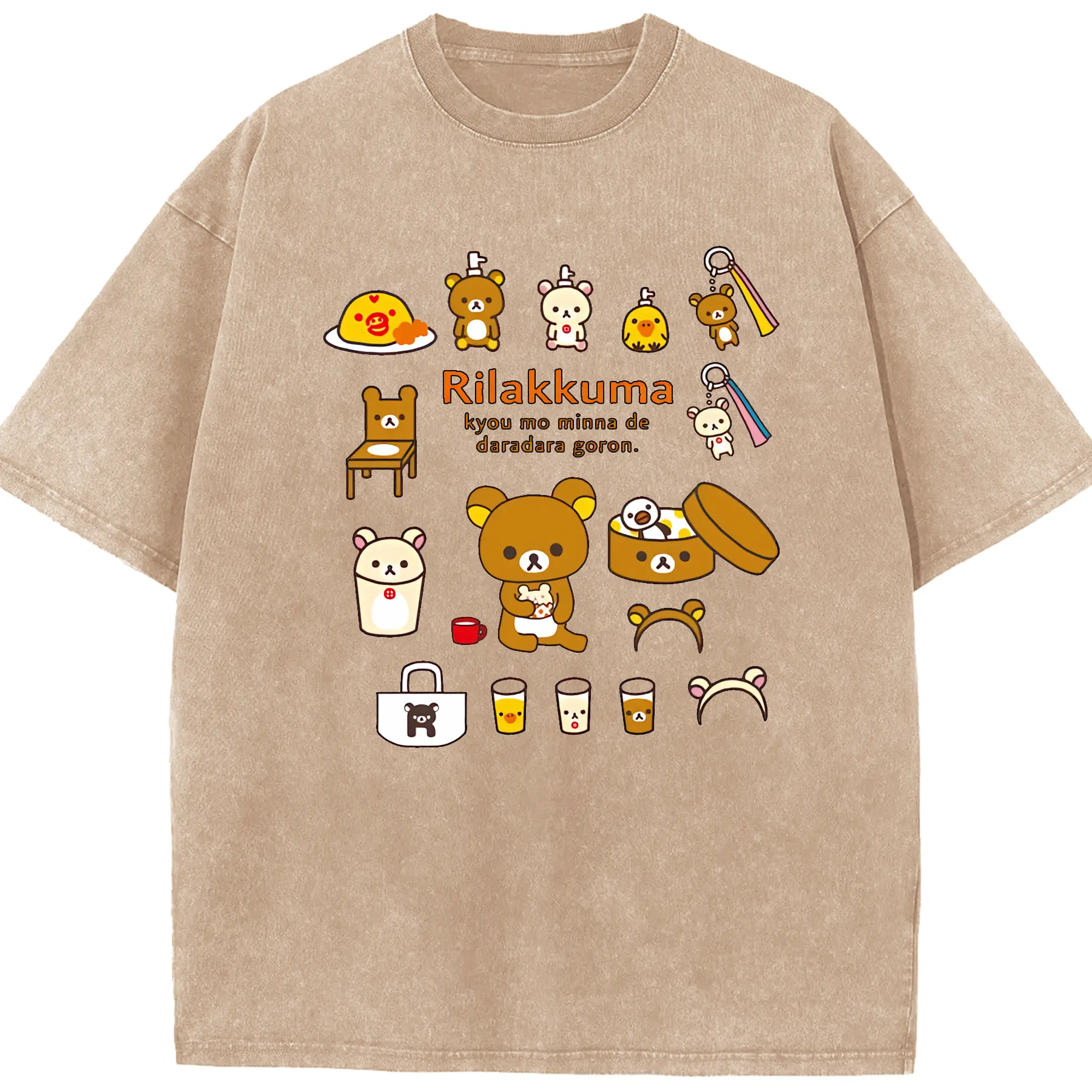 リラックマ (Rilakkuma) グッズ リラックマ (Rilakkuma) - 綿100% ヴィンテージ風 半袖Tシャツ ・ 背面プリント ・ 柔らか肌触り ・ 通気性 快適 ・ スポーツ カジュアル 外出用