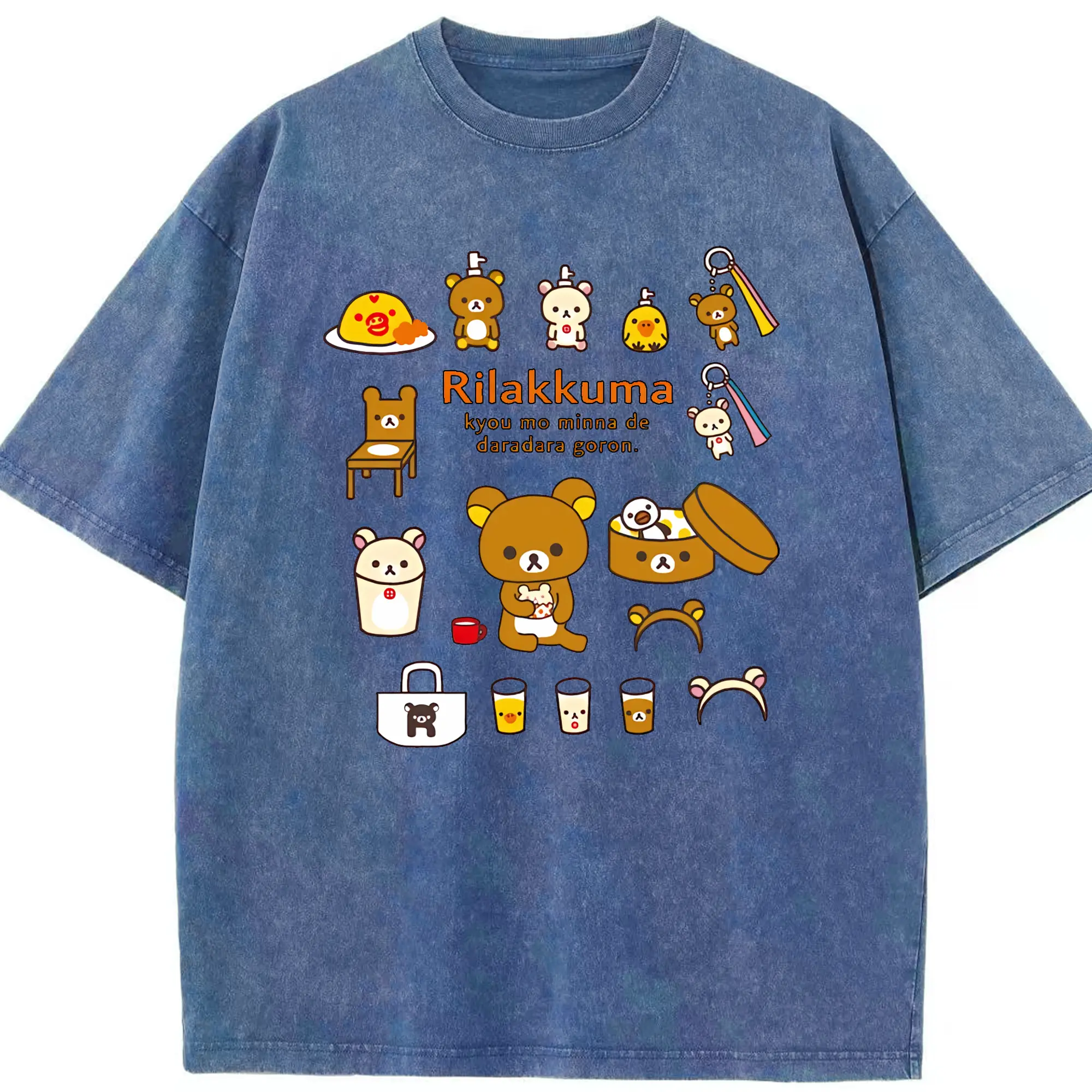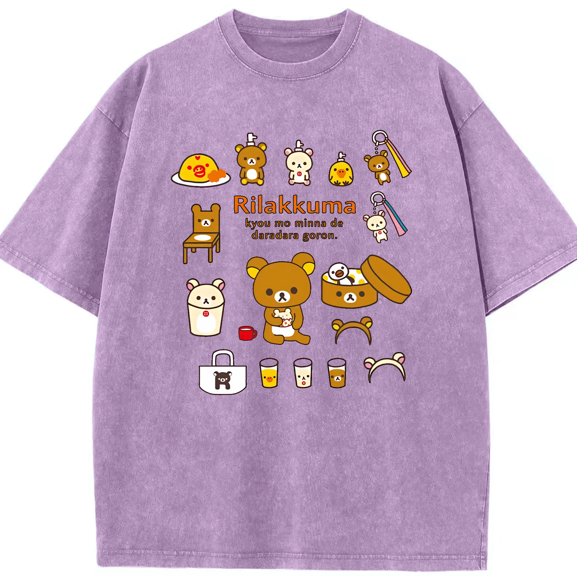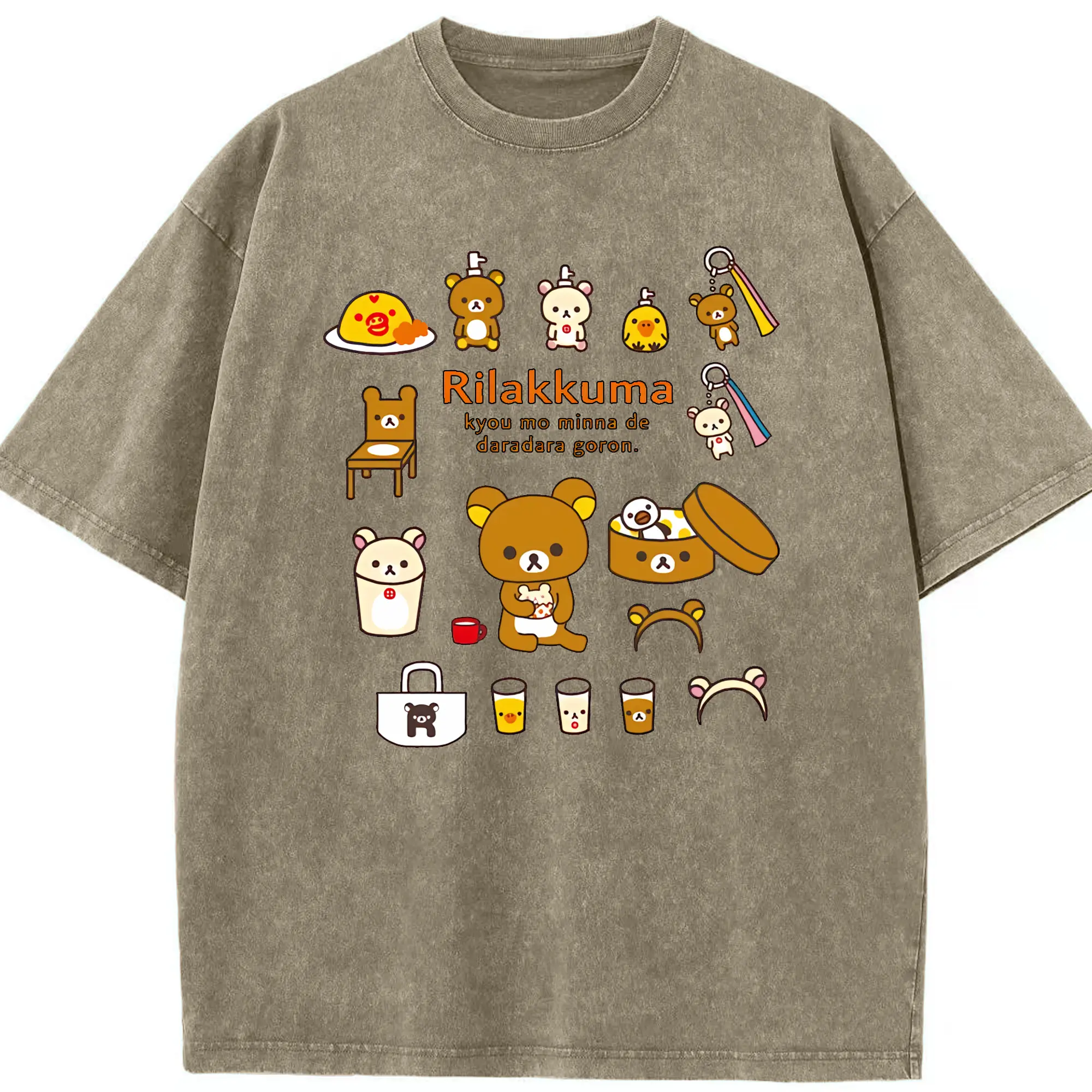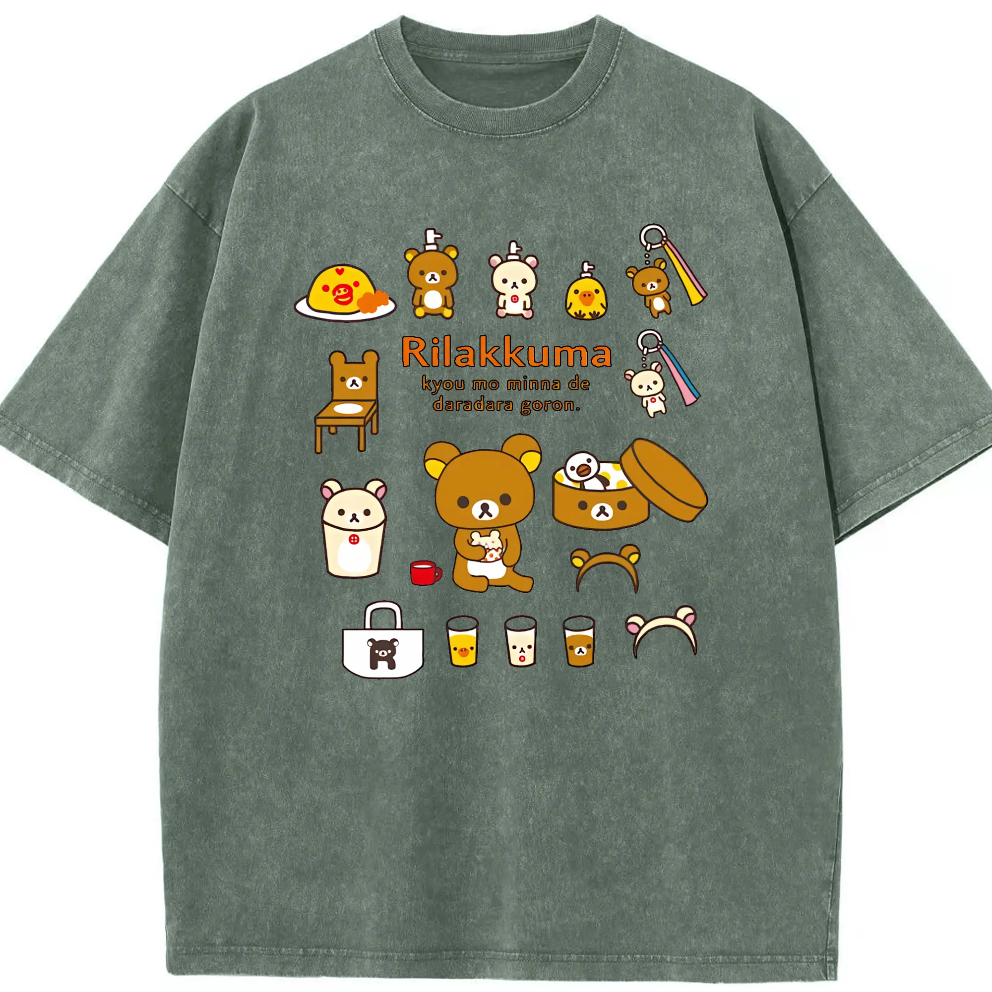 リラックマ (Rilakkuma) グッズ リラックマ (Rilakkuma) - 綿100% ヴィンテージ風 半袖Tシャツ ・ 背面プリント ・ 柔らか肌触り ・ 通気性 快適 ・ スポーツ カジュアル 外出用