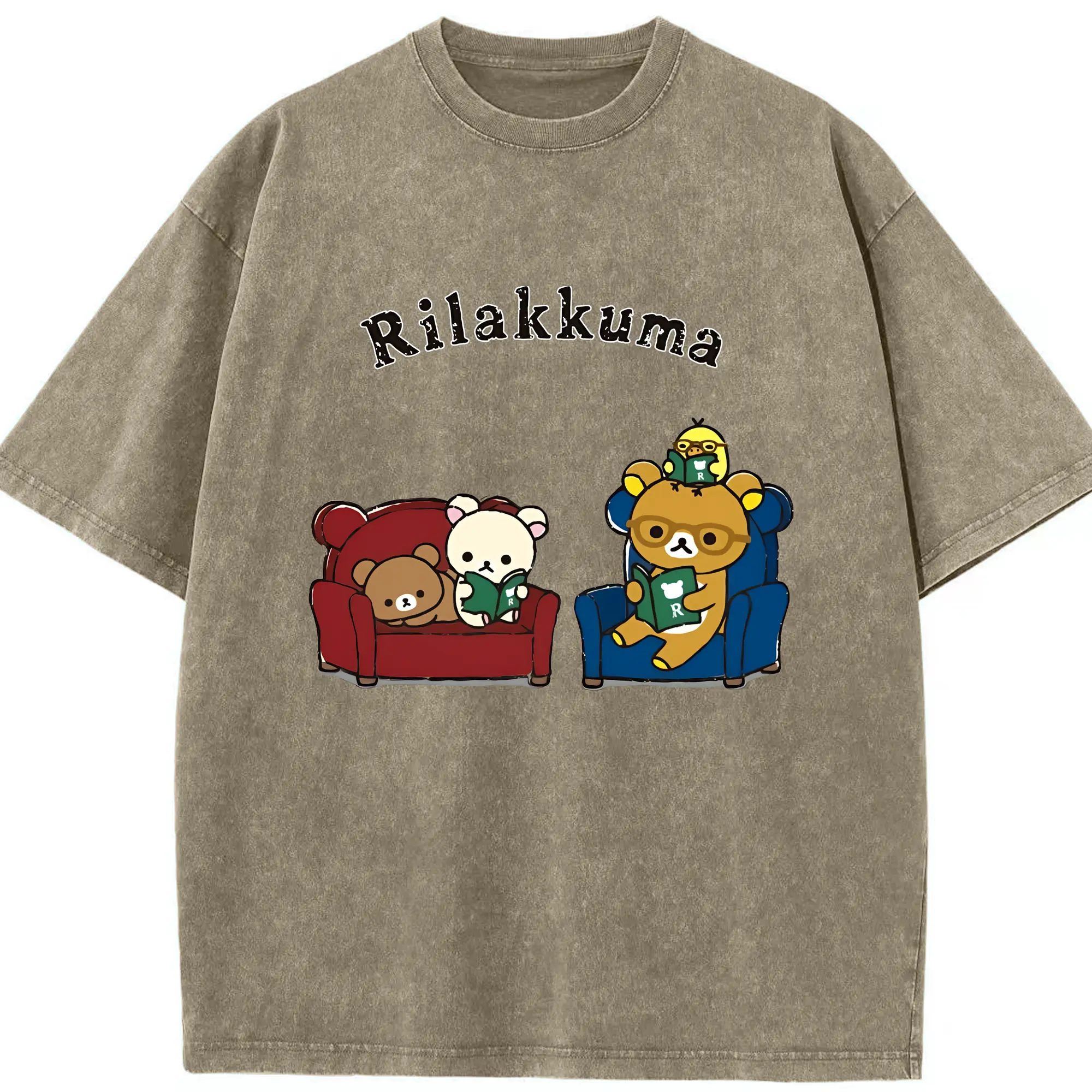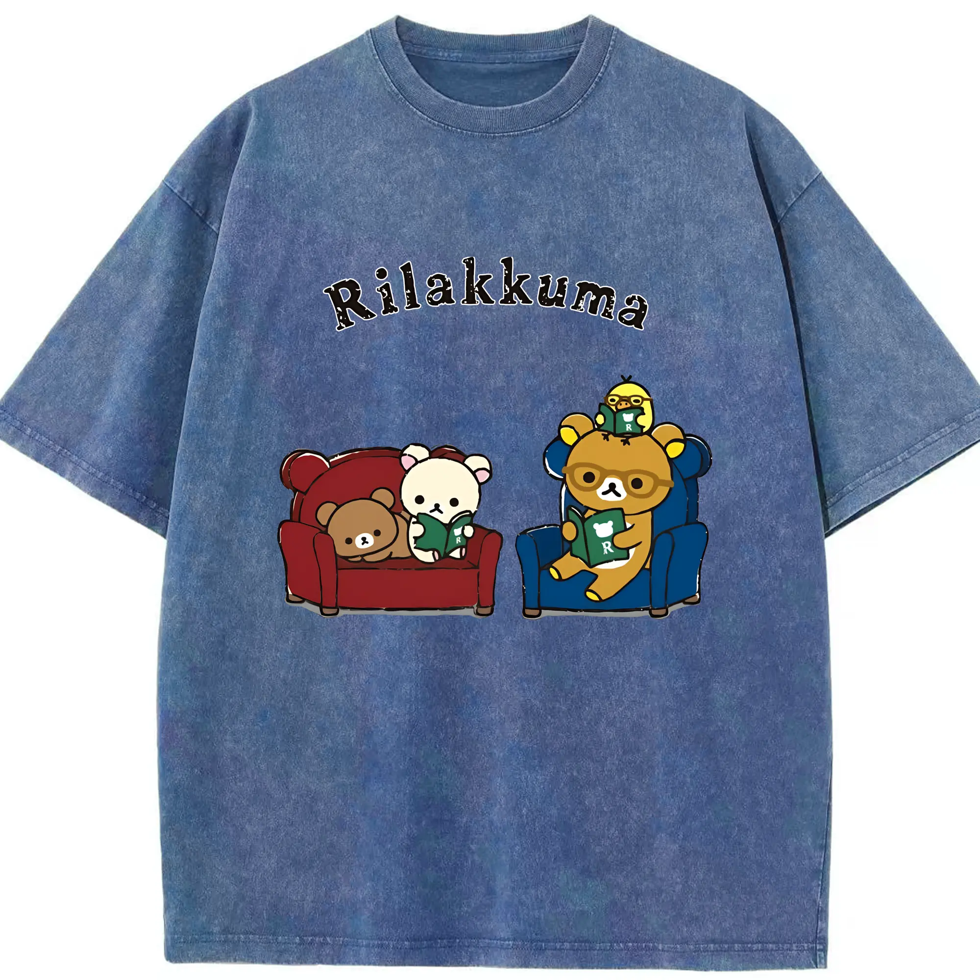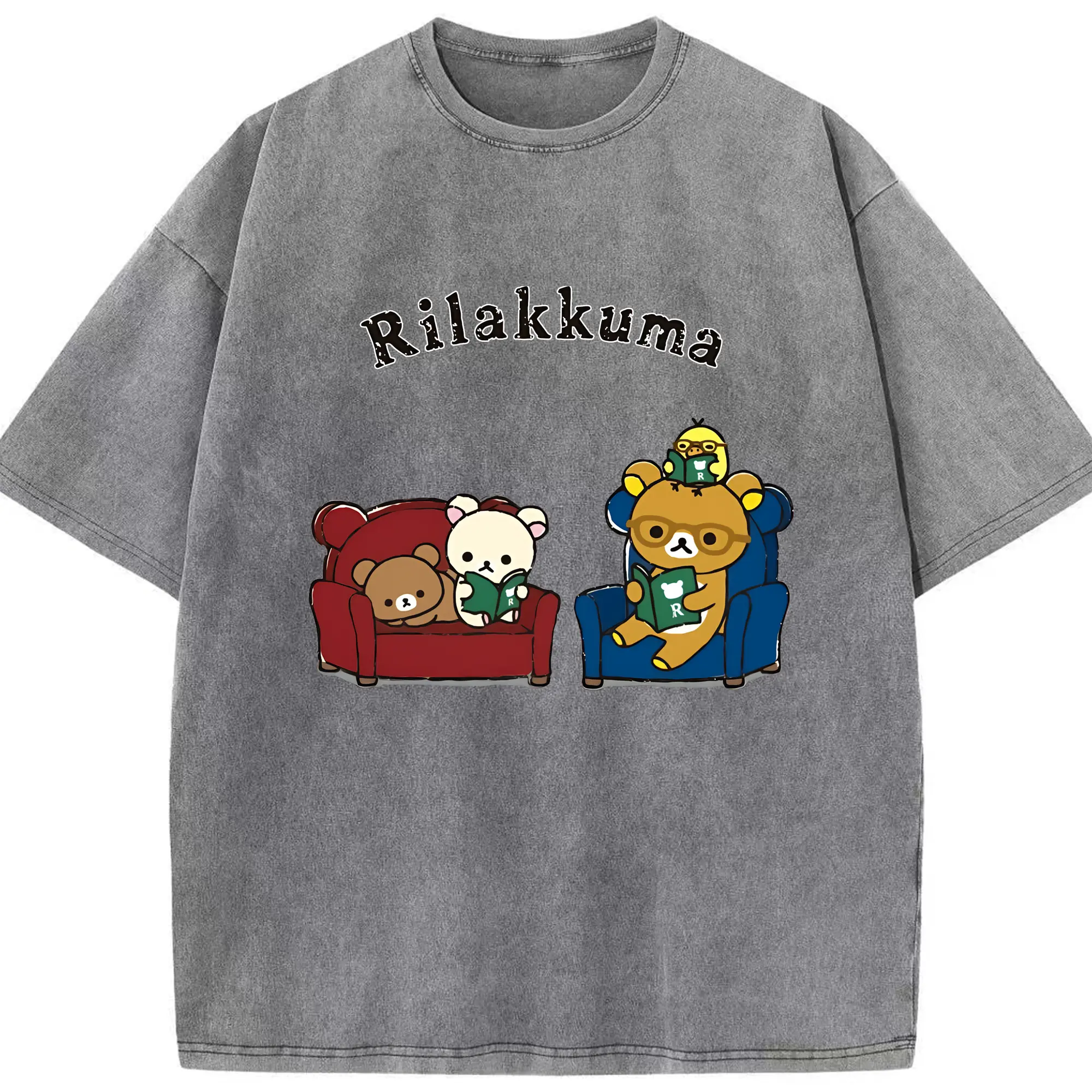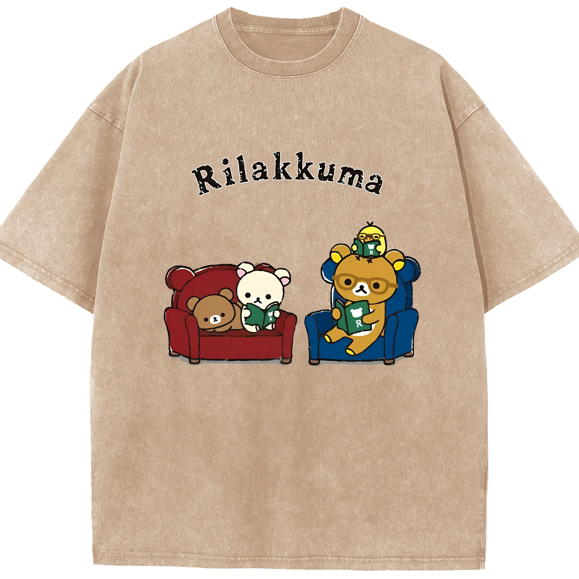 リラックマ (Rilakkuma) グッズ リラックマ (Rilakkuma) - 綿100% ヴィンテージ風 半袖Tシャツ ・ 背面プリント ・ 柔らか肌触り ・ 通気性 快適 ・ スポーツ カジュアル 外出用