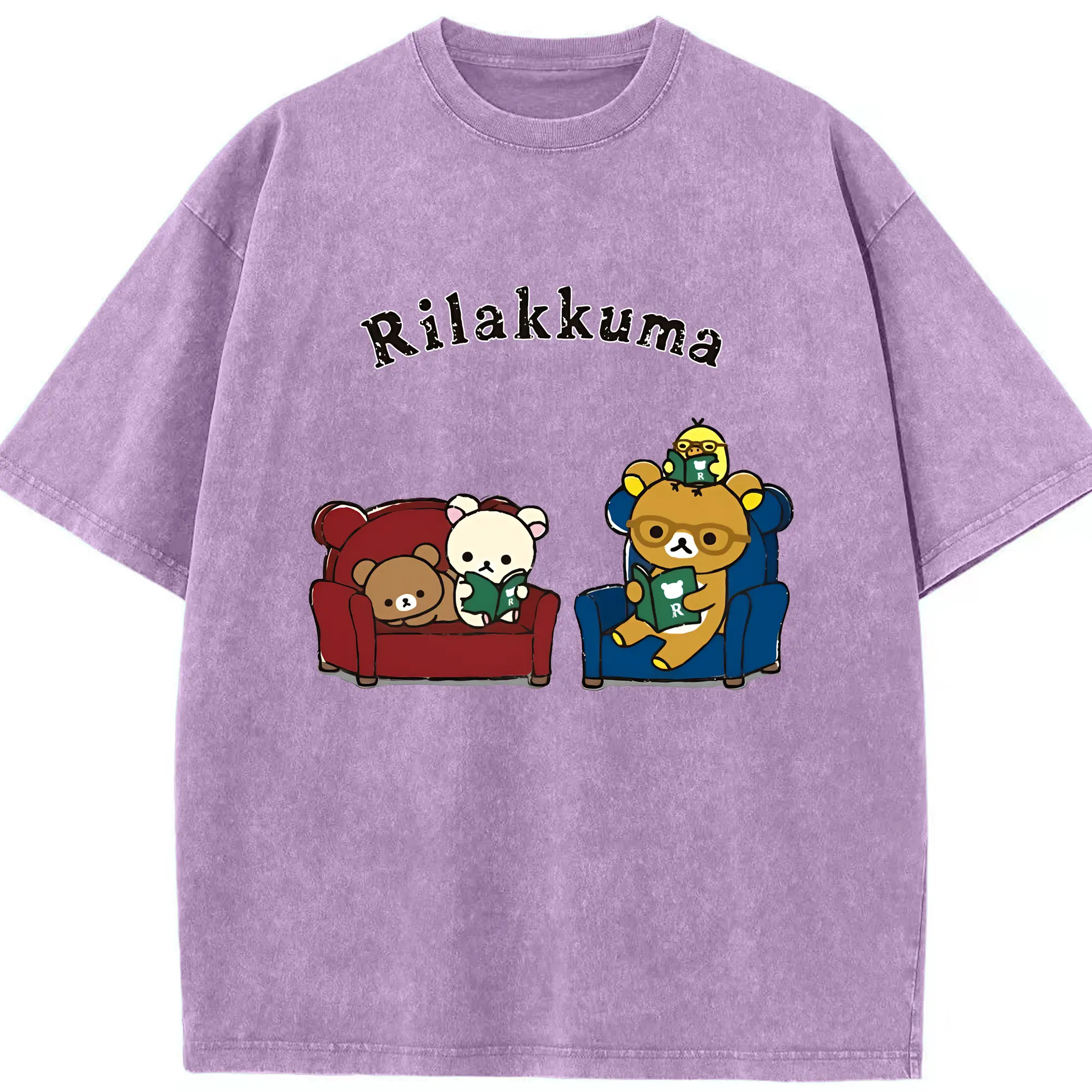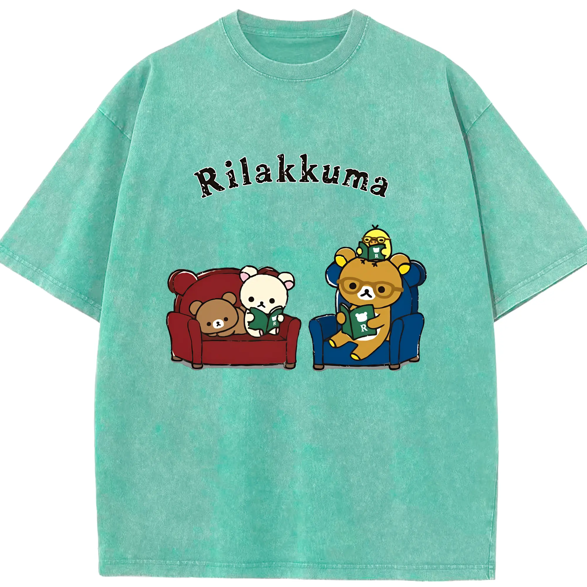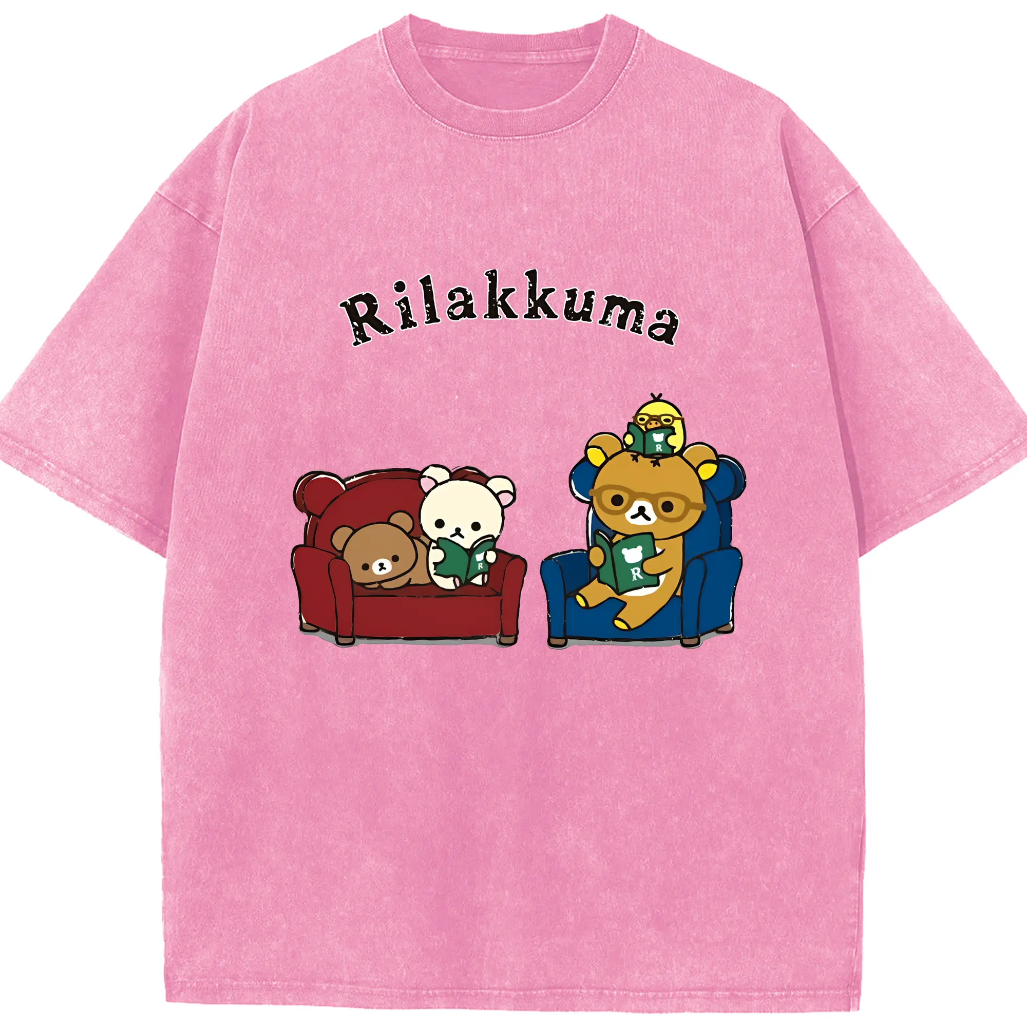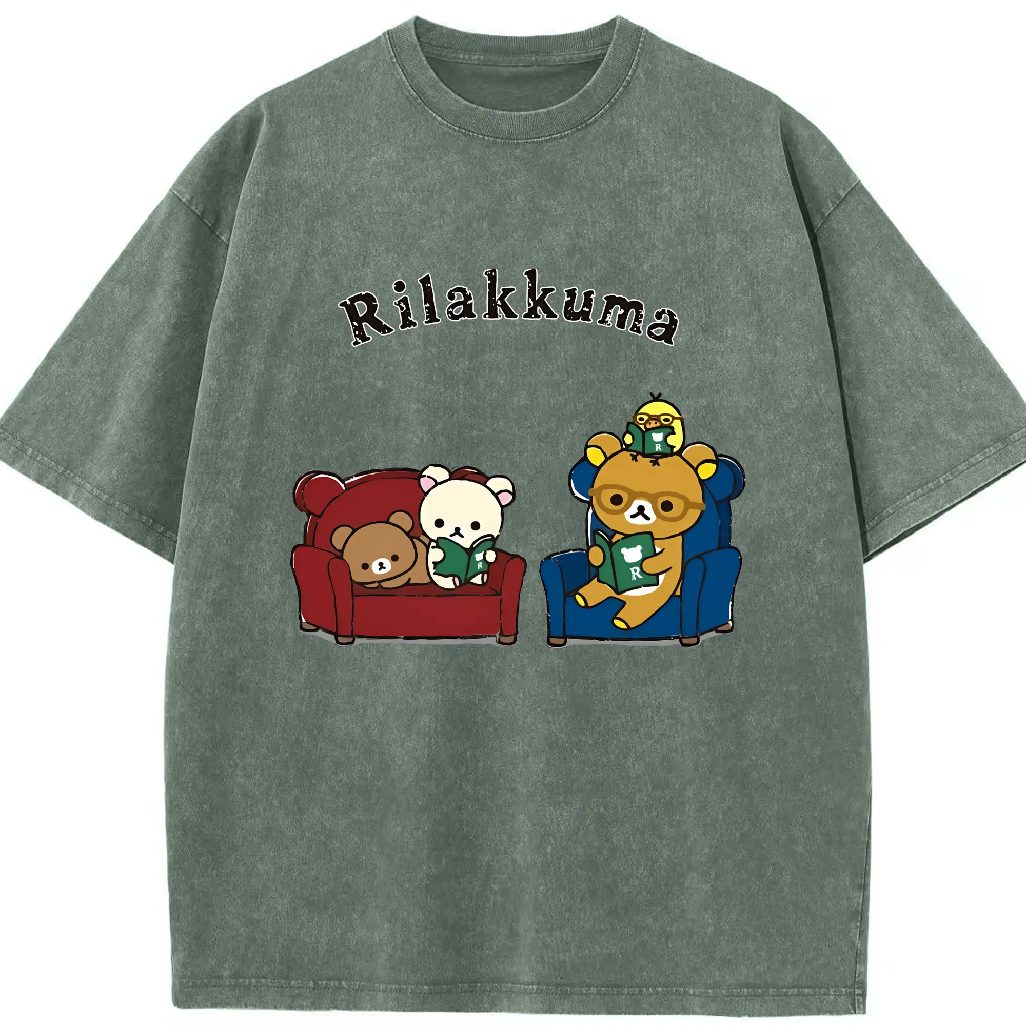 リラックマ (Rilakkuma) グッズ リラックマ (Rilakkuma) - 綿100% ヴィンテージ風 半袖Tシャツ ・ 背面プリント ・ 柔らか肌触り ・ 通気性 快適 ・ スポーツ カジュアル 外出用