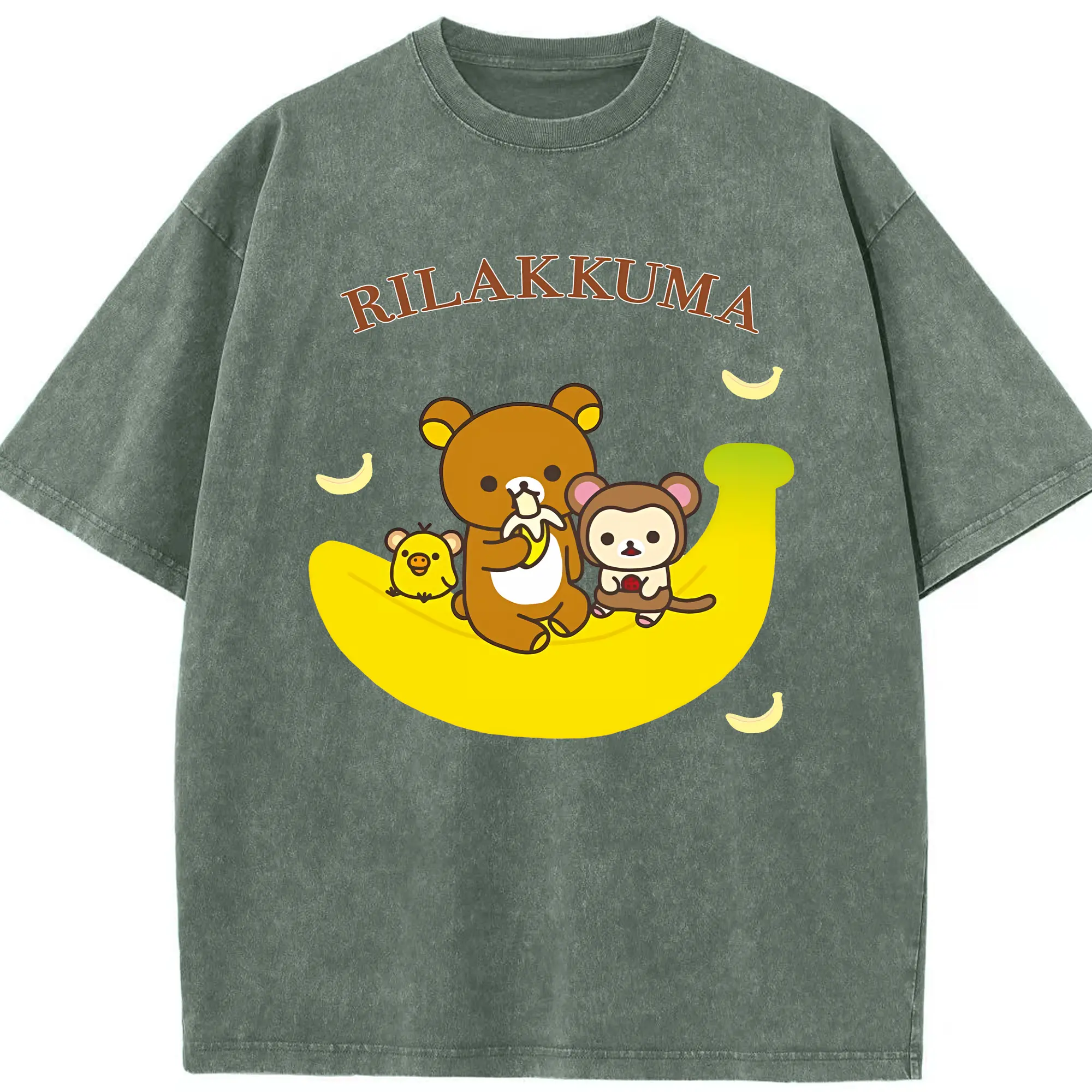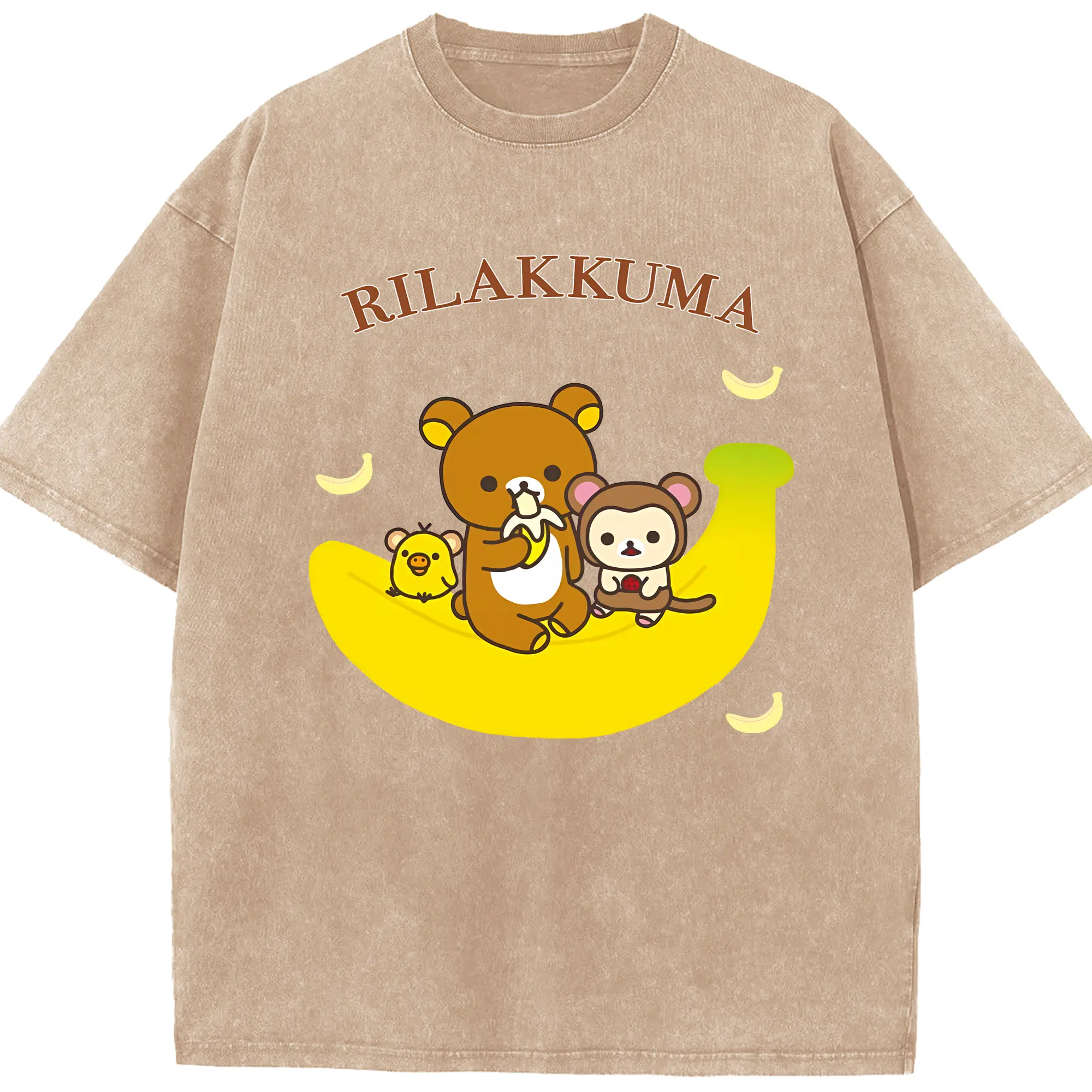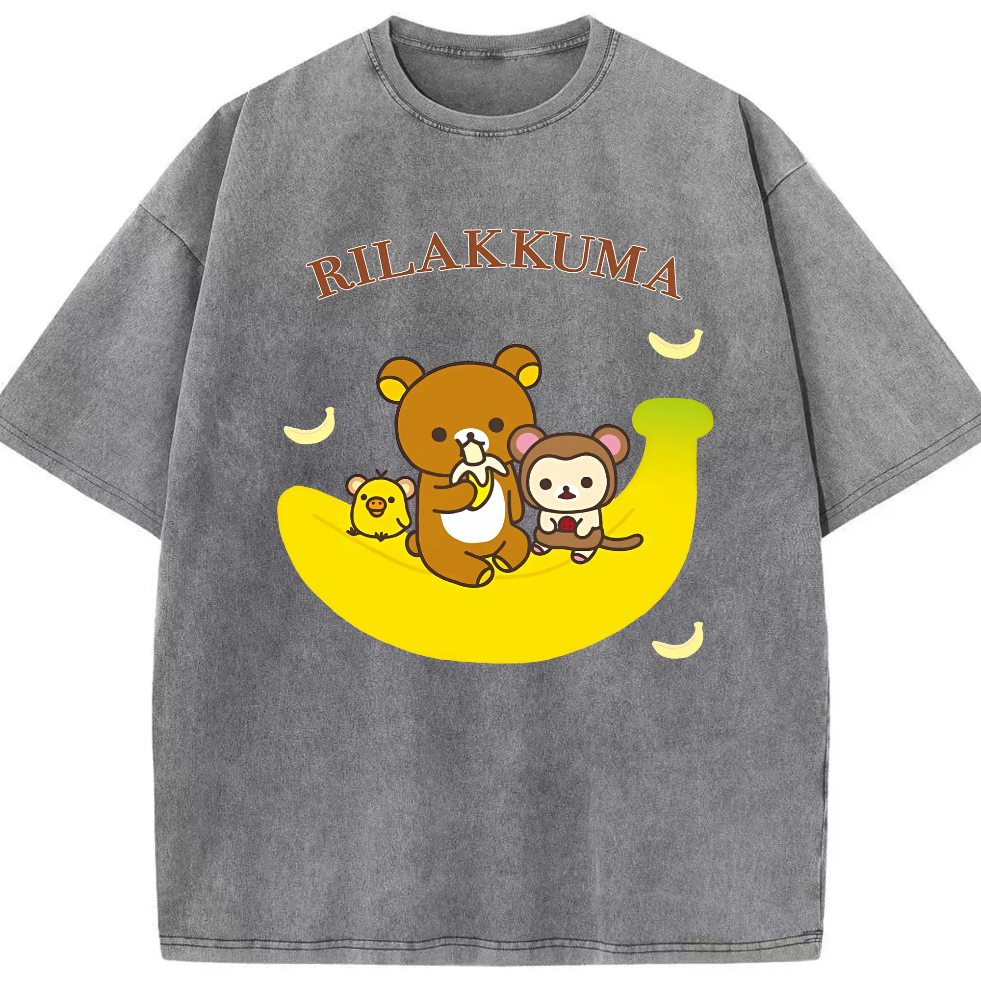 リラックマ (Rilakkuma) グッズ リラックマ (Rilakkuma) - 綿100% ヴィンテージ風 半袖Tシャツ ・ 背面プリント ・ 柔らか肌触り ・ 通気性 快適 ・ スポーツ カジュアル 外出用