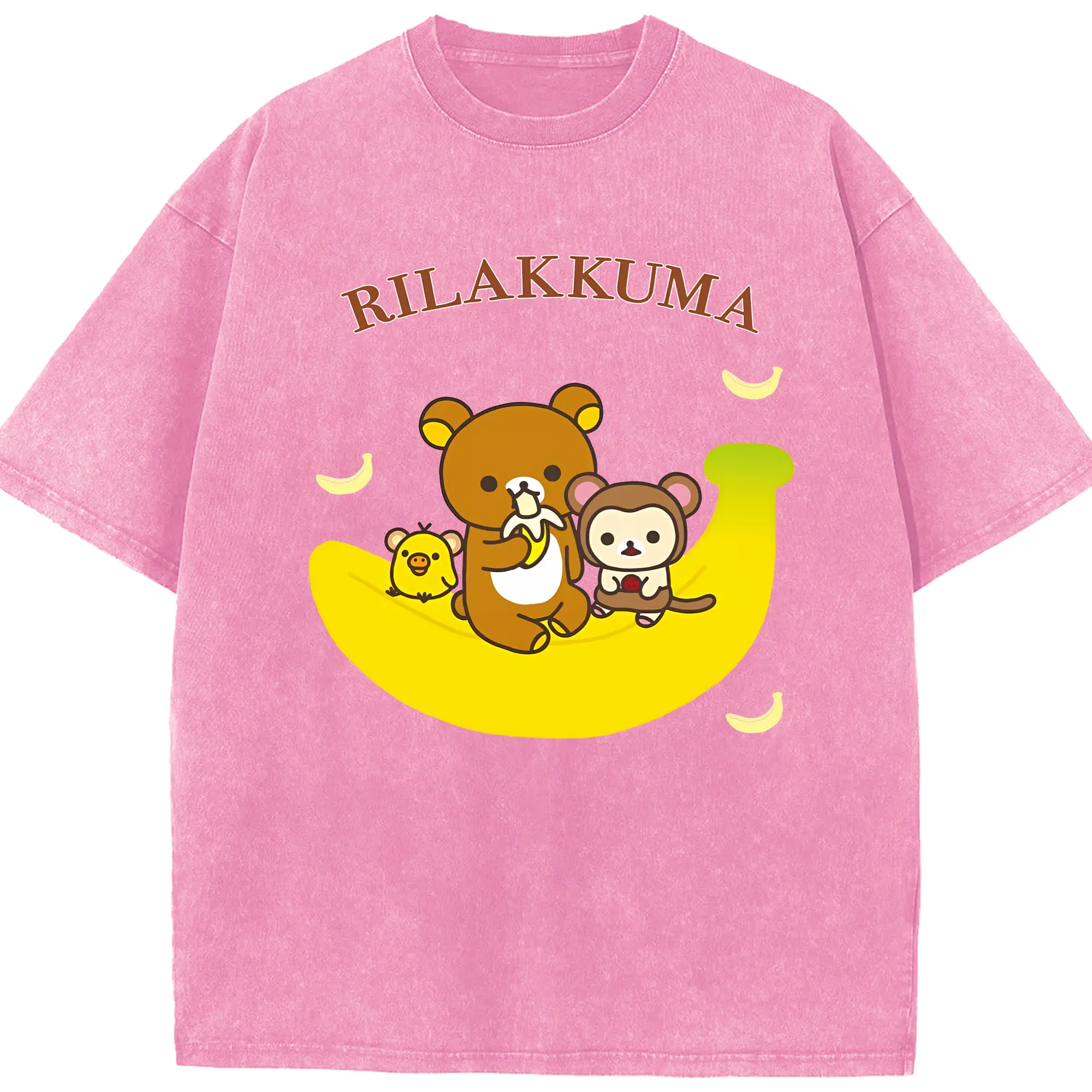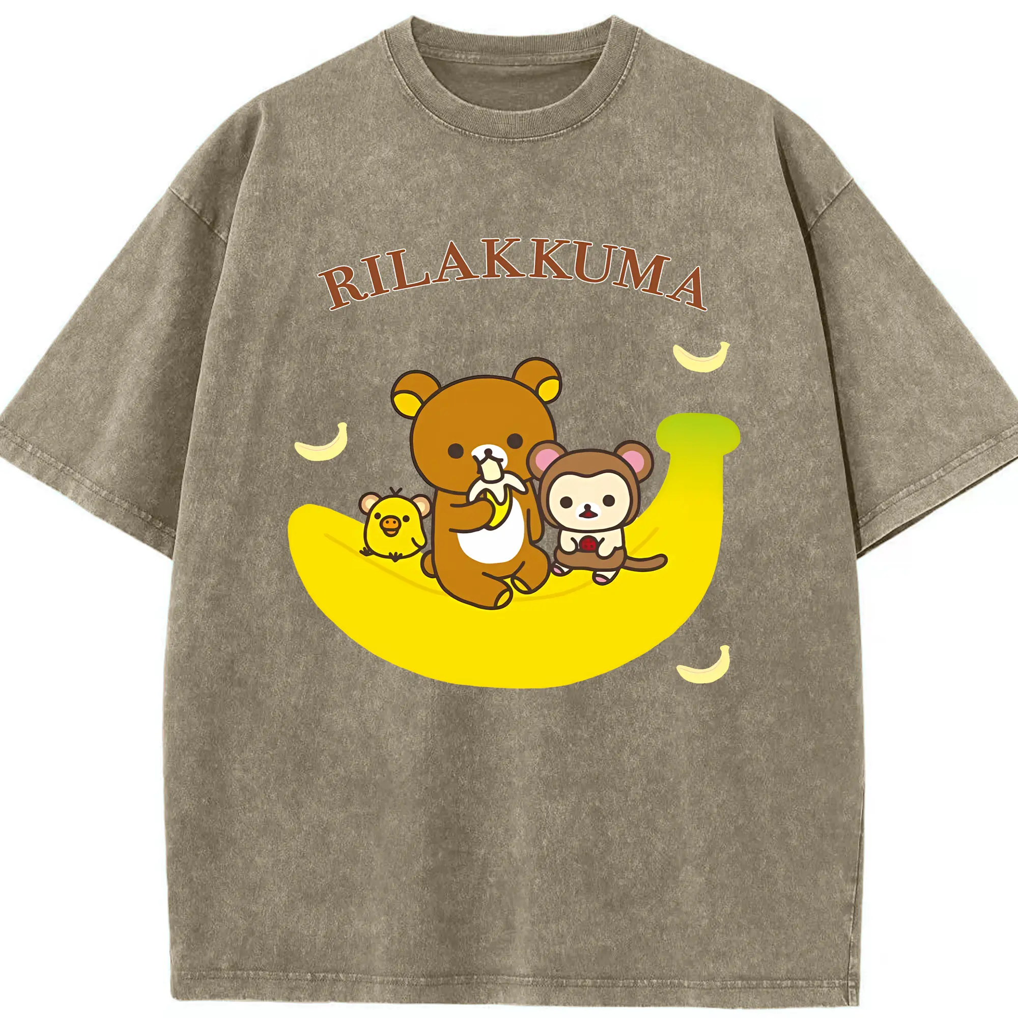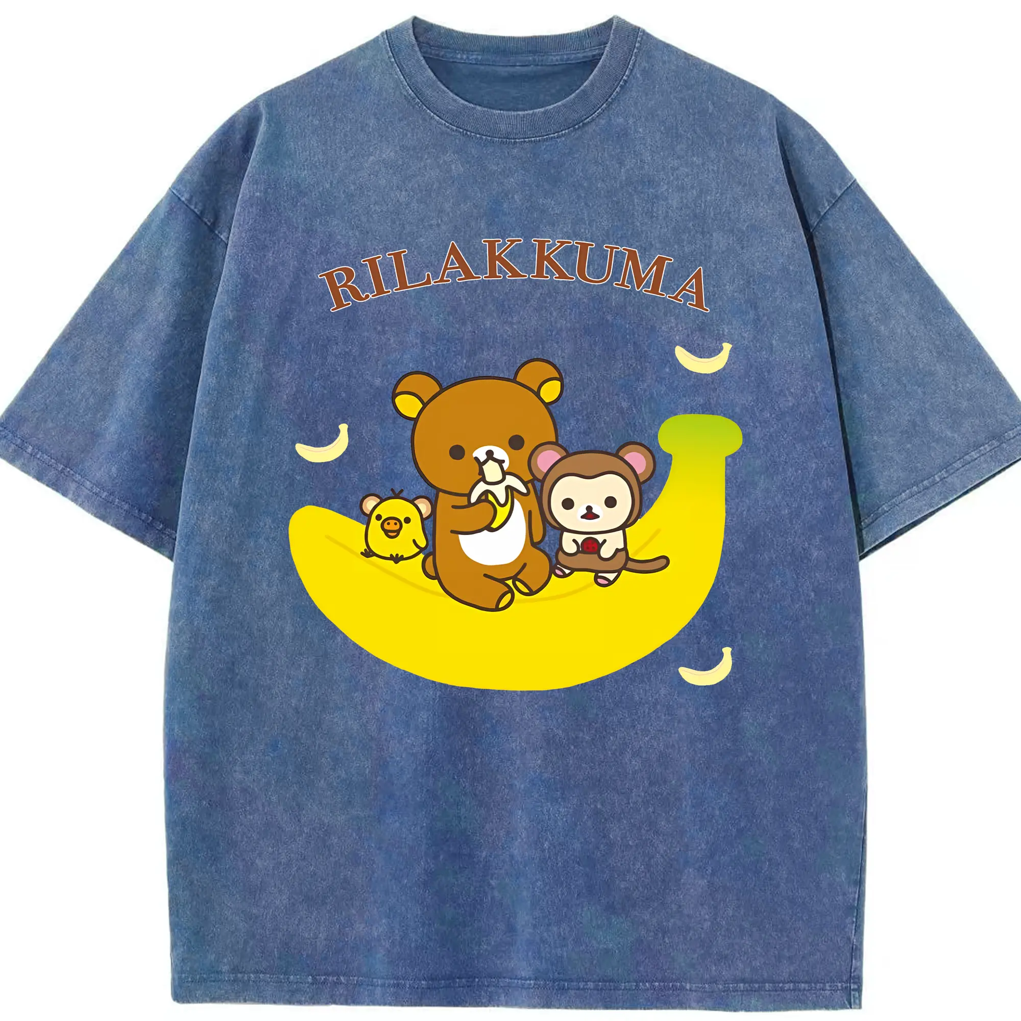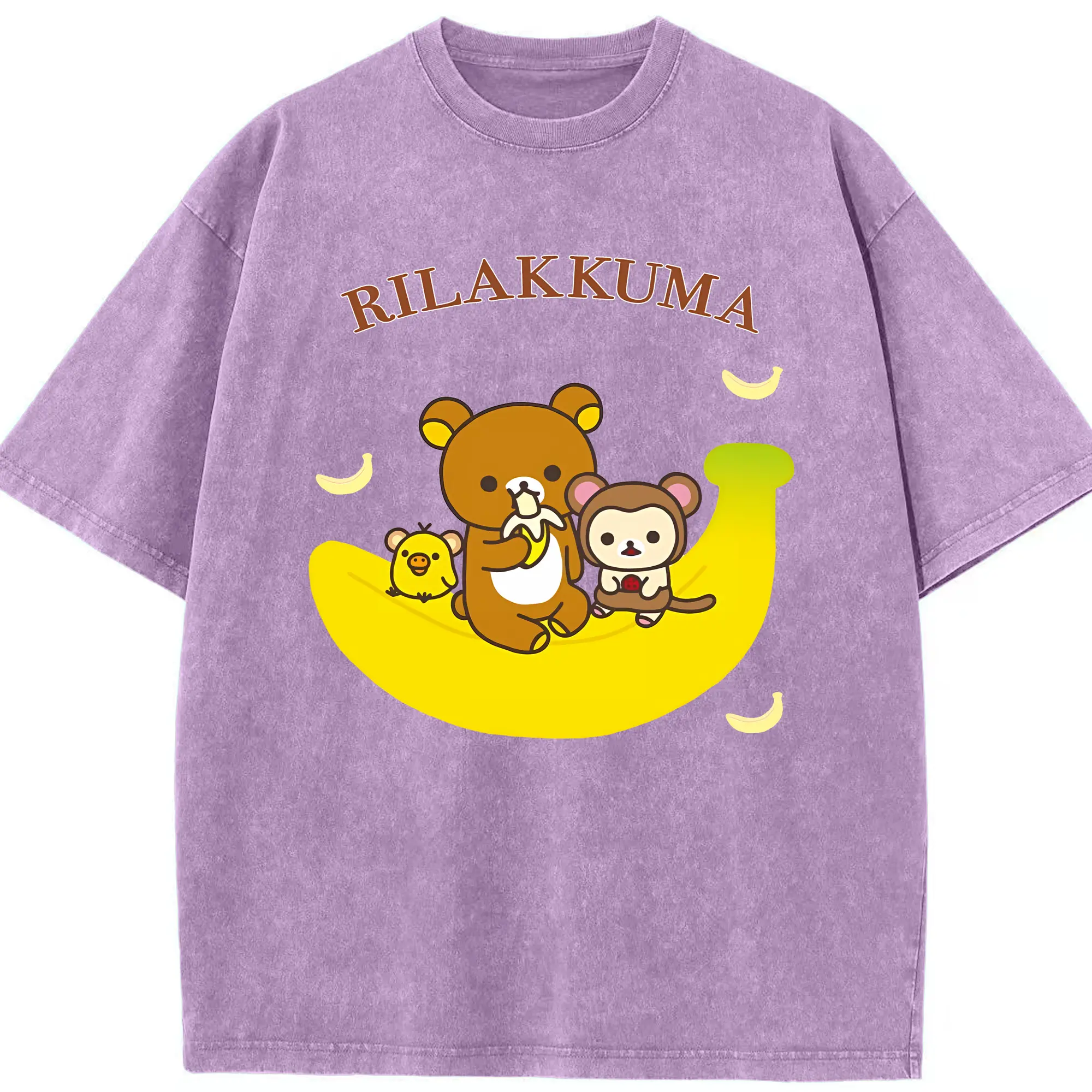 リラックマ (Rilakkuma) グッズ リラックマ (Rilakkuma) - 綿100% ヴィンテージ風 半袖Tシャツ ・ 背面プリント ・ 柔らか肌触り ・ 通気性 快適 ・ スポーツ カジュアル 外出用